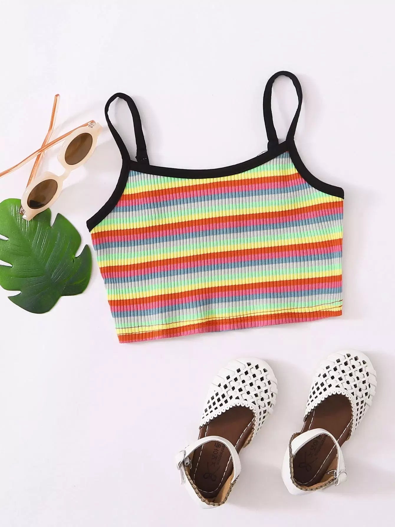 Kids - Girls Rib-knit Rainbow Striped Ringer Cami Top