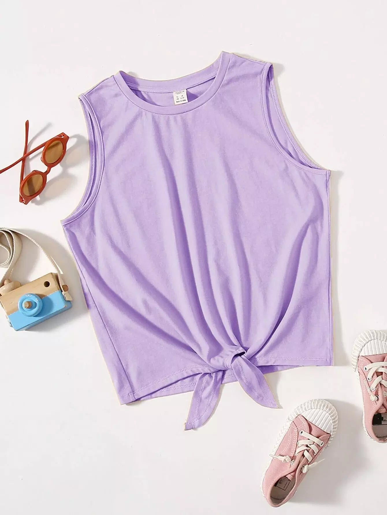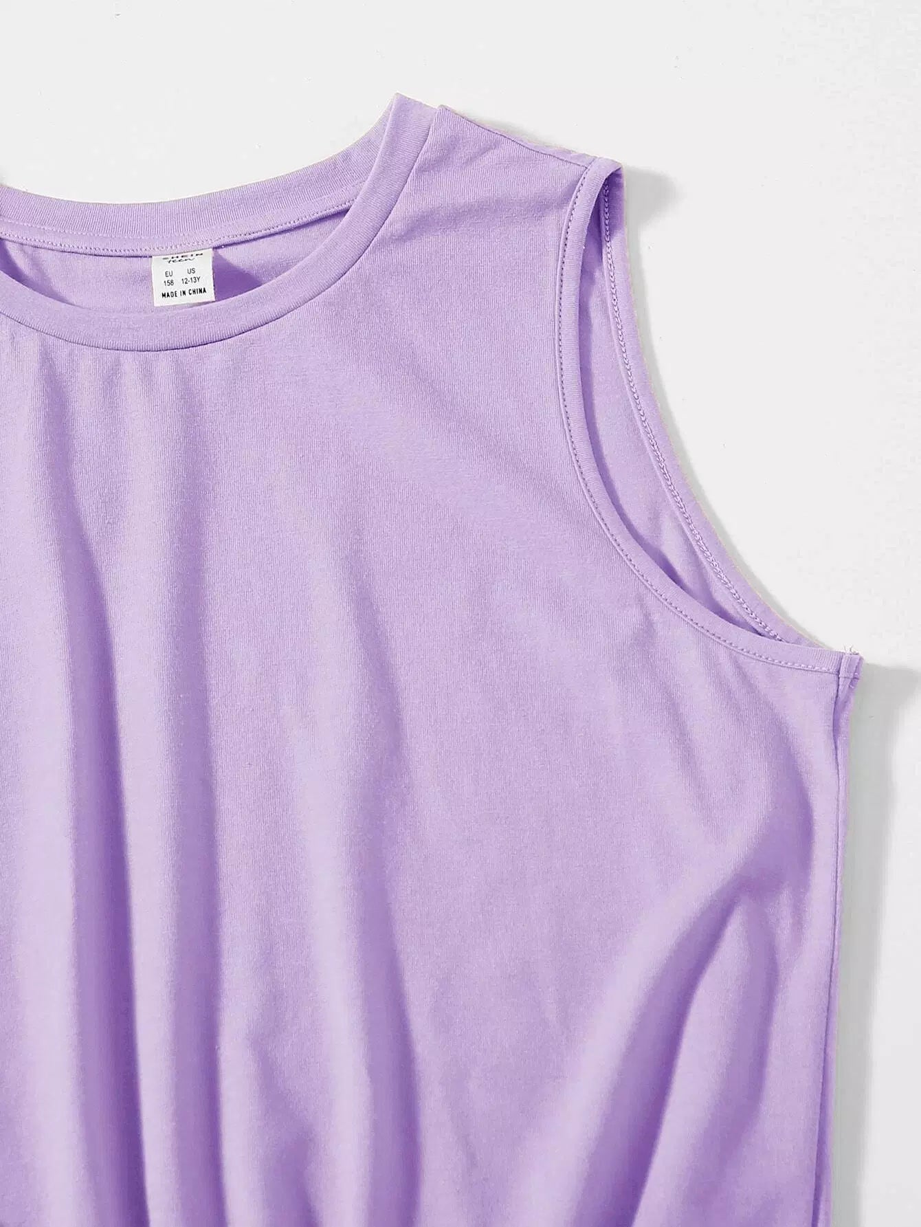Teen Girls Knot Hem Solid Tank Top