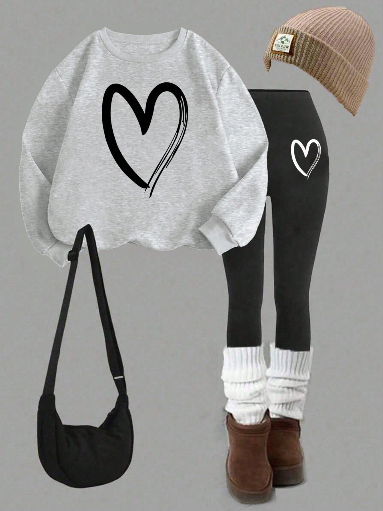 2pcs Tween Girl Casual Long Sleeve Hoodie And Sweatpants Set, Thickened For Autumn/Winter