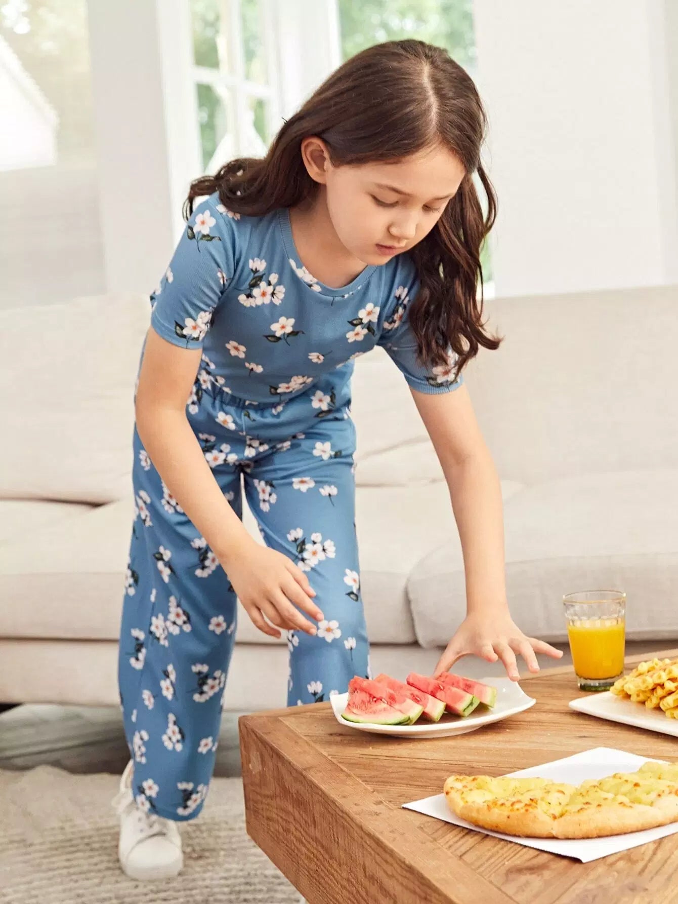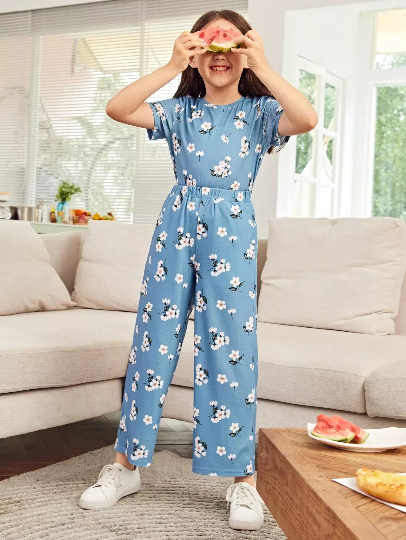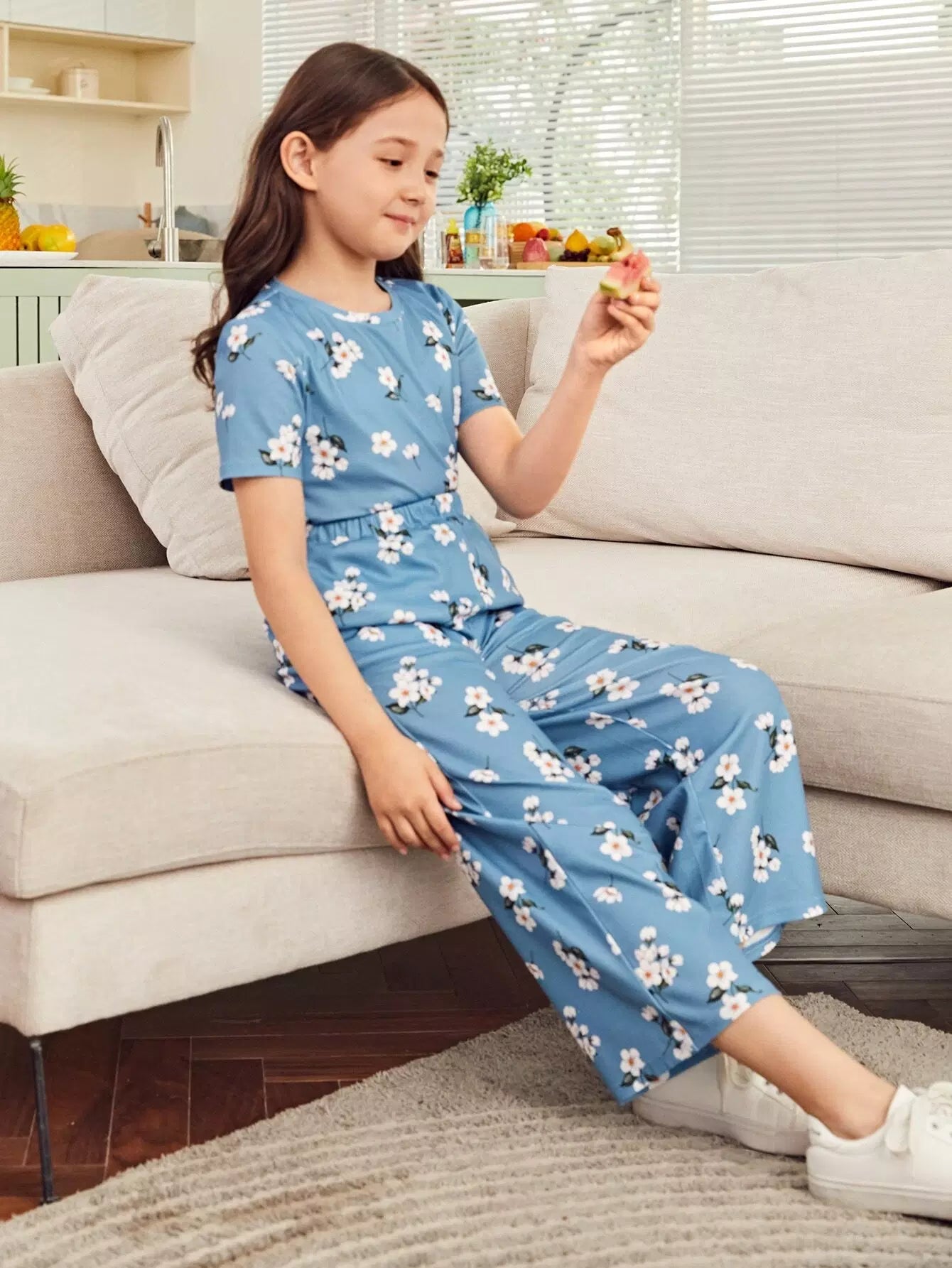 Girls 1PC Floral Print Top & Palazzo Pants Set