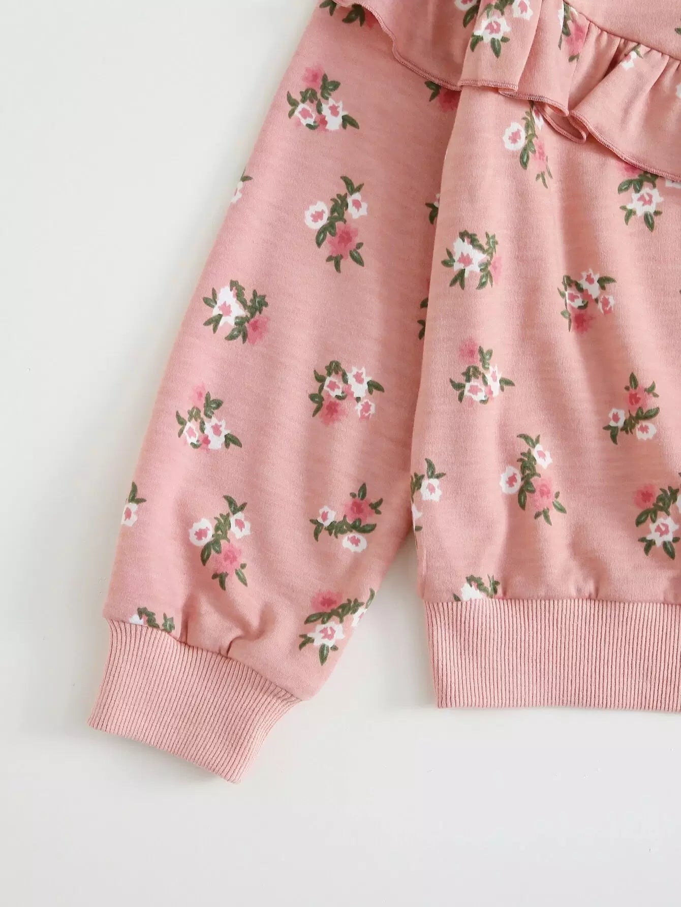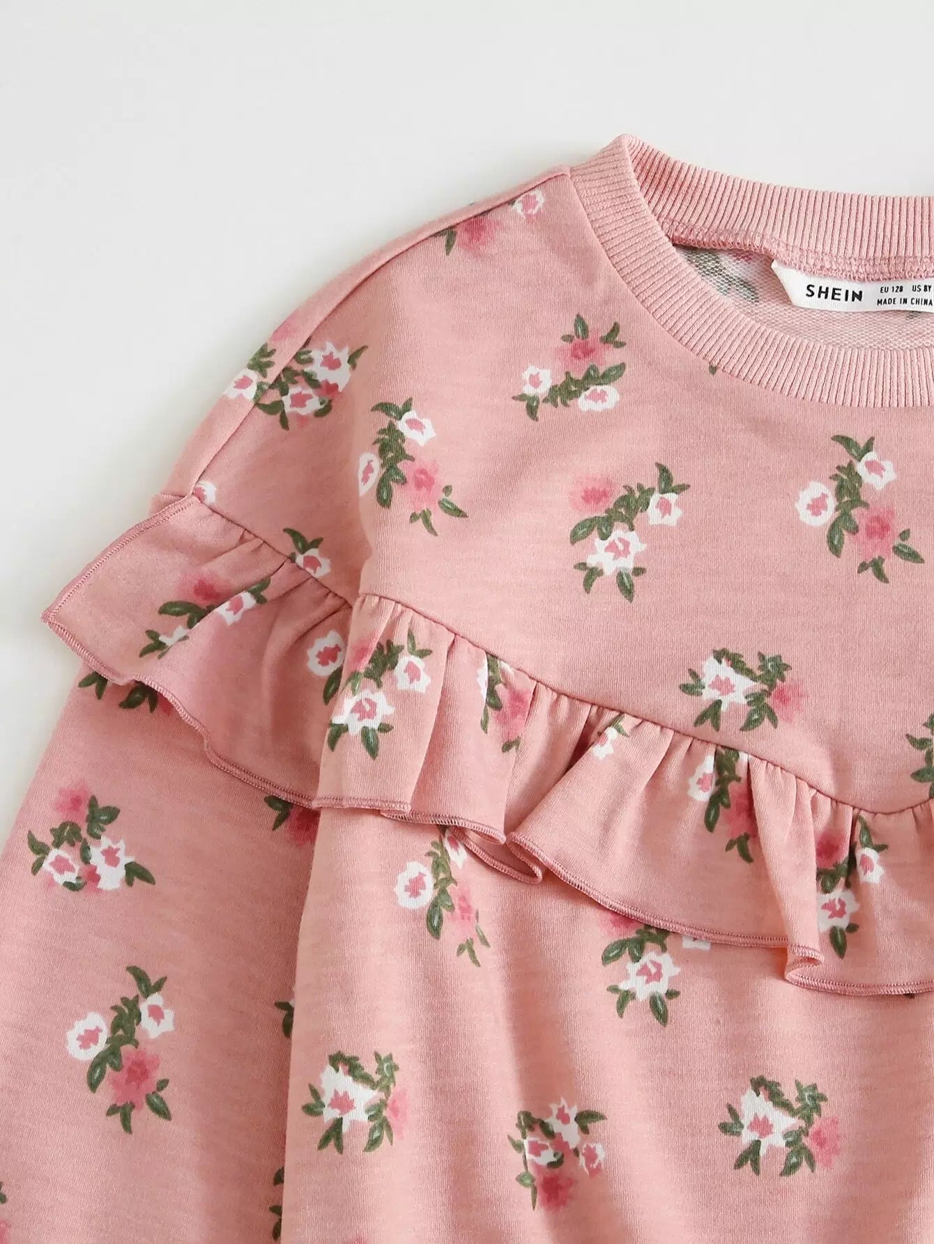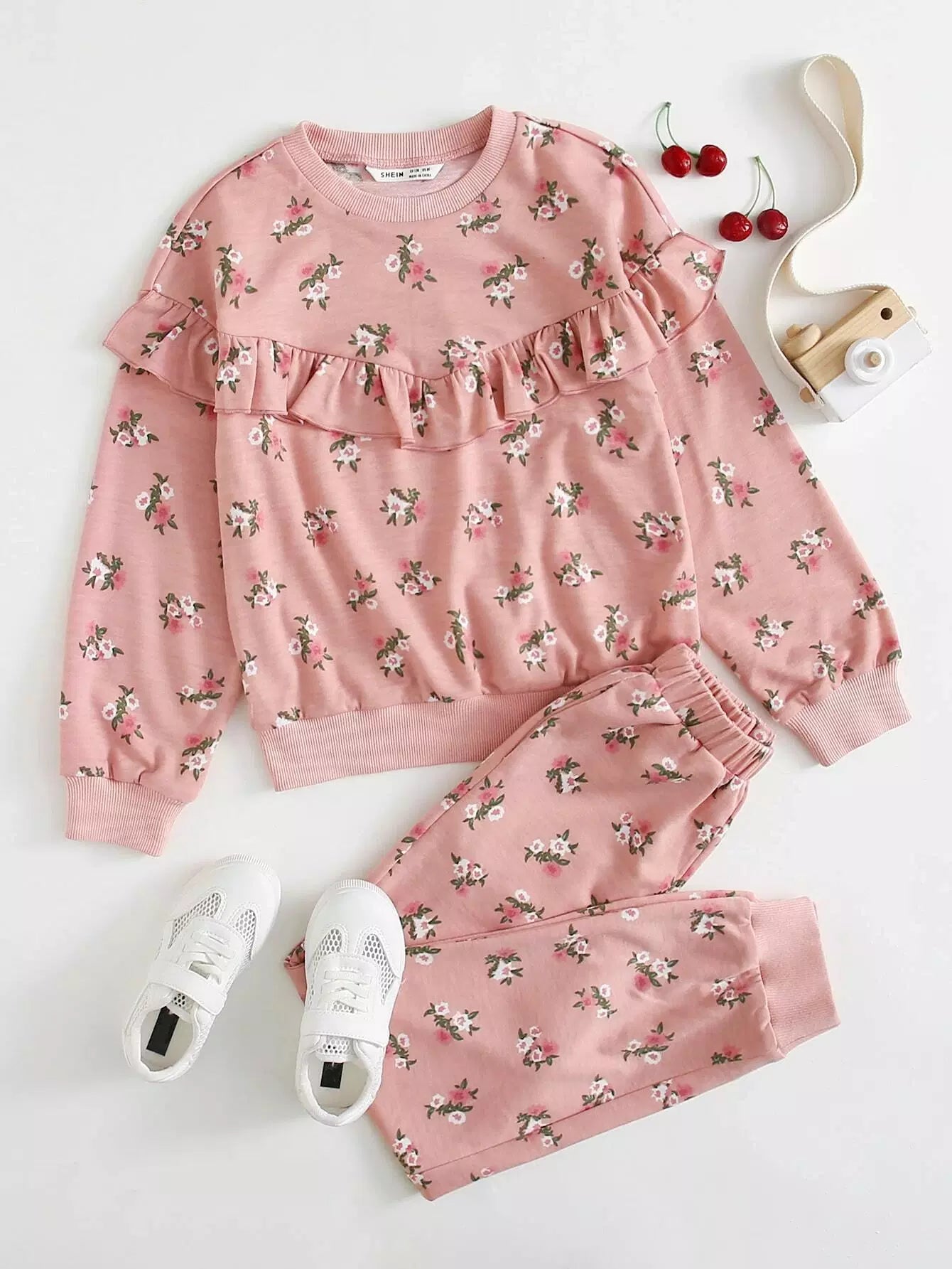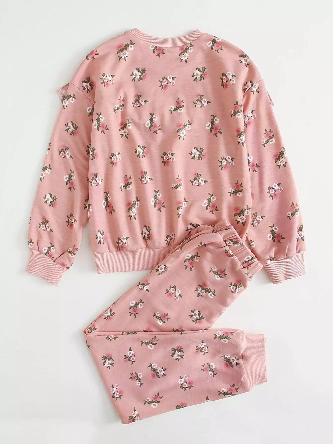 Girls Allover Floral Ruffle Trim Pullover & Joggers Set