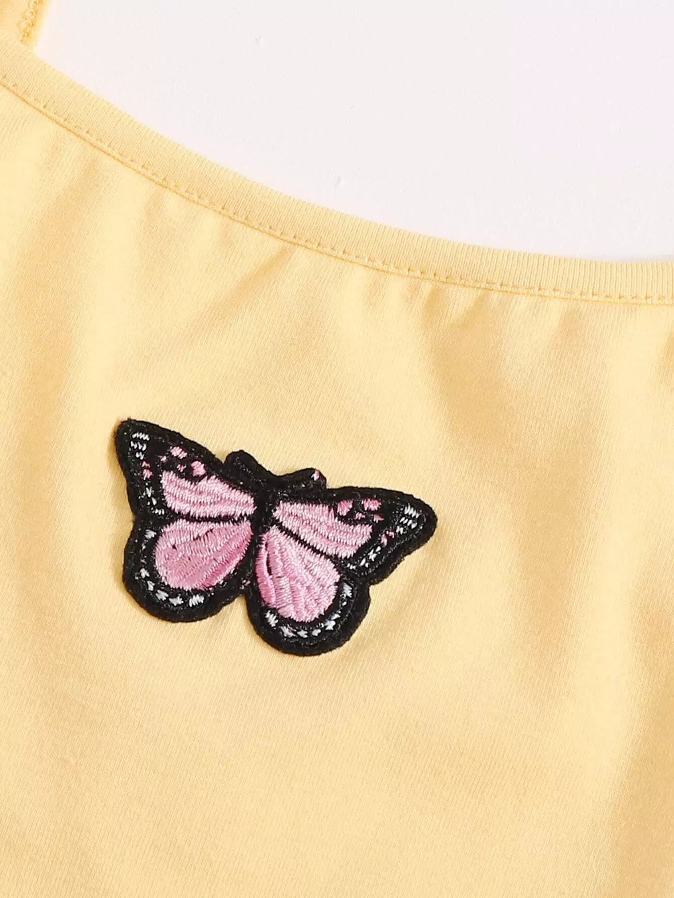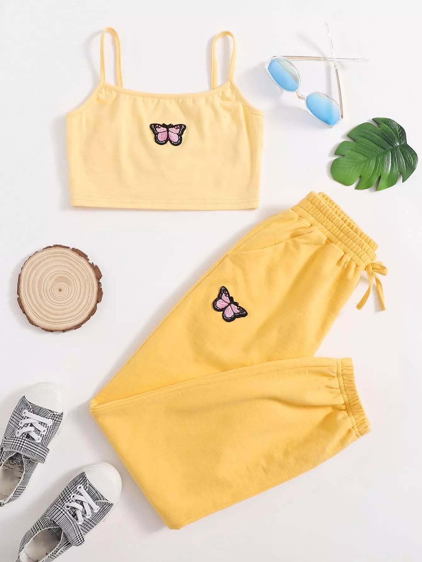 Girls Butterfly Embroidered Cami Top and Sweatpants Set