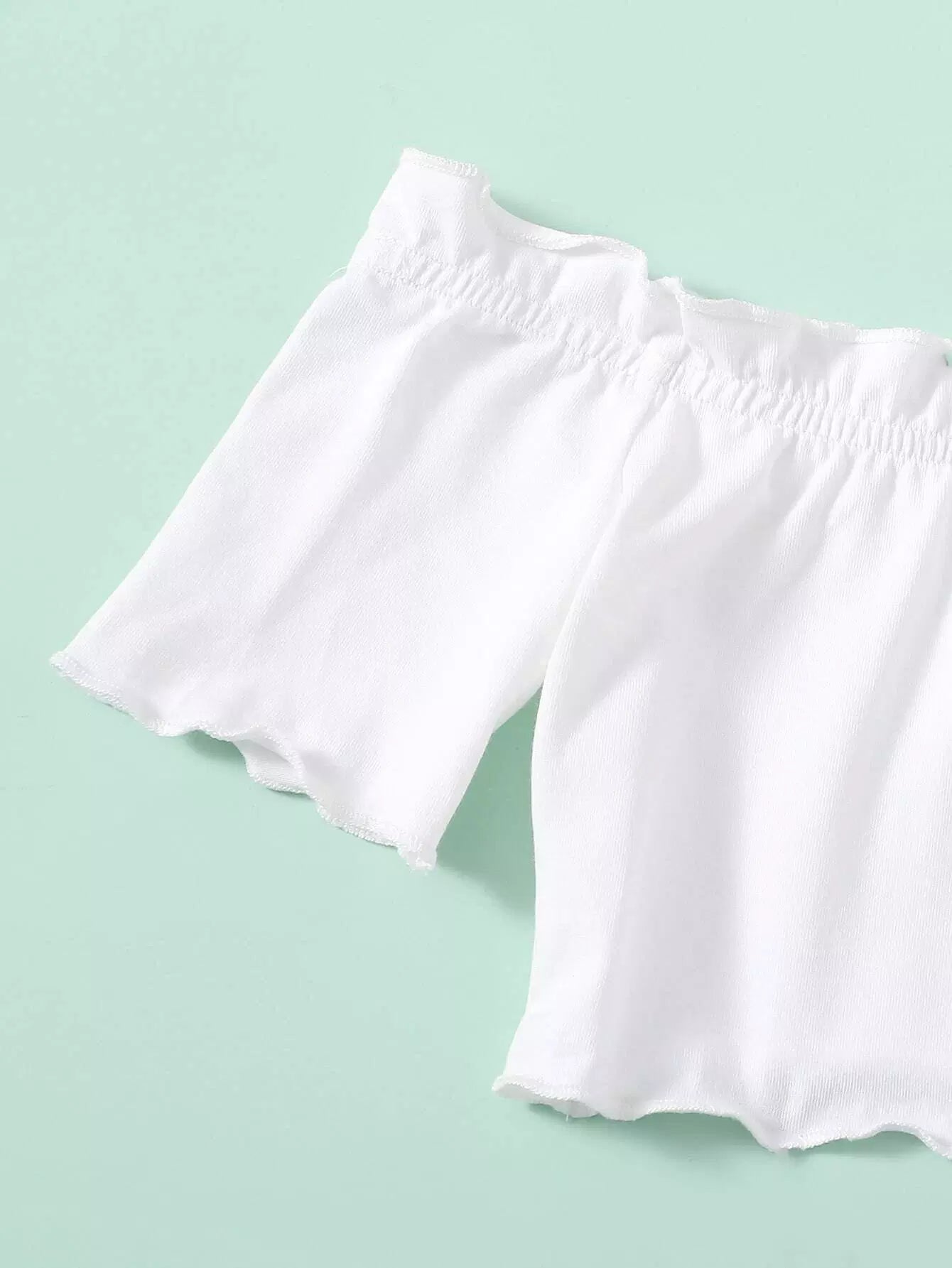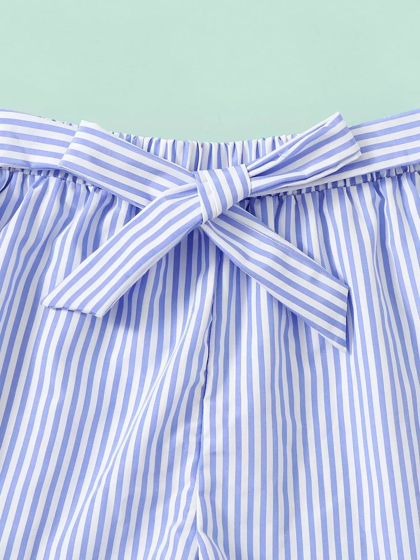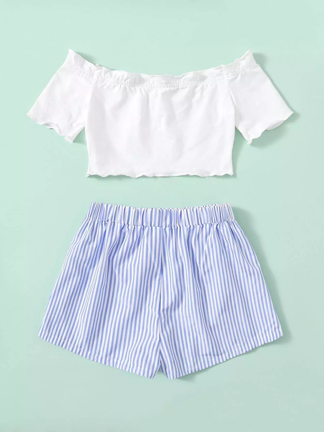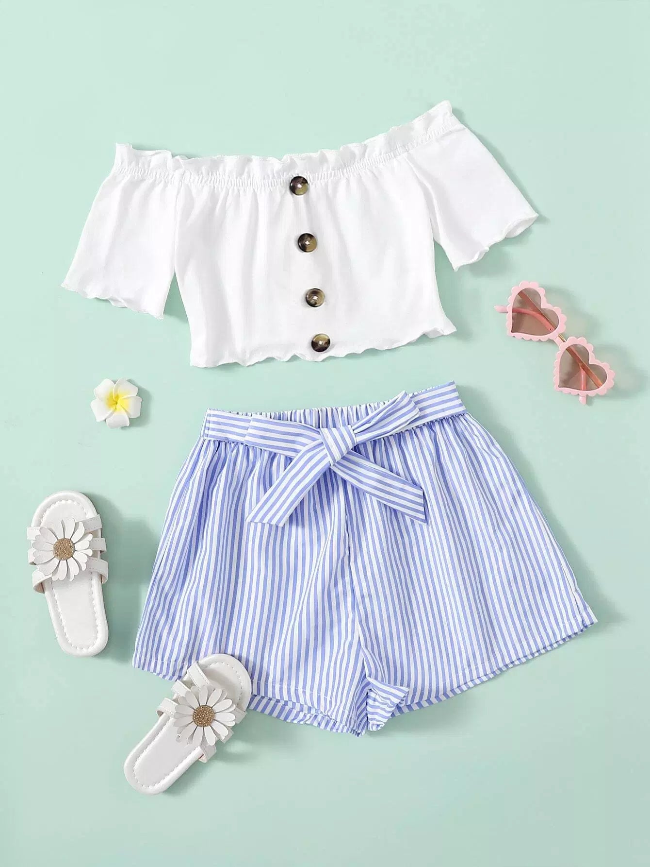 Girls Button Front Lettuce Edge Top and Striped Shorts Set