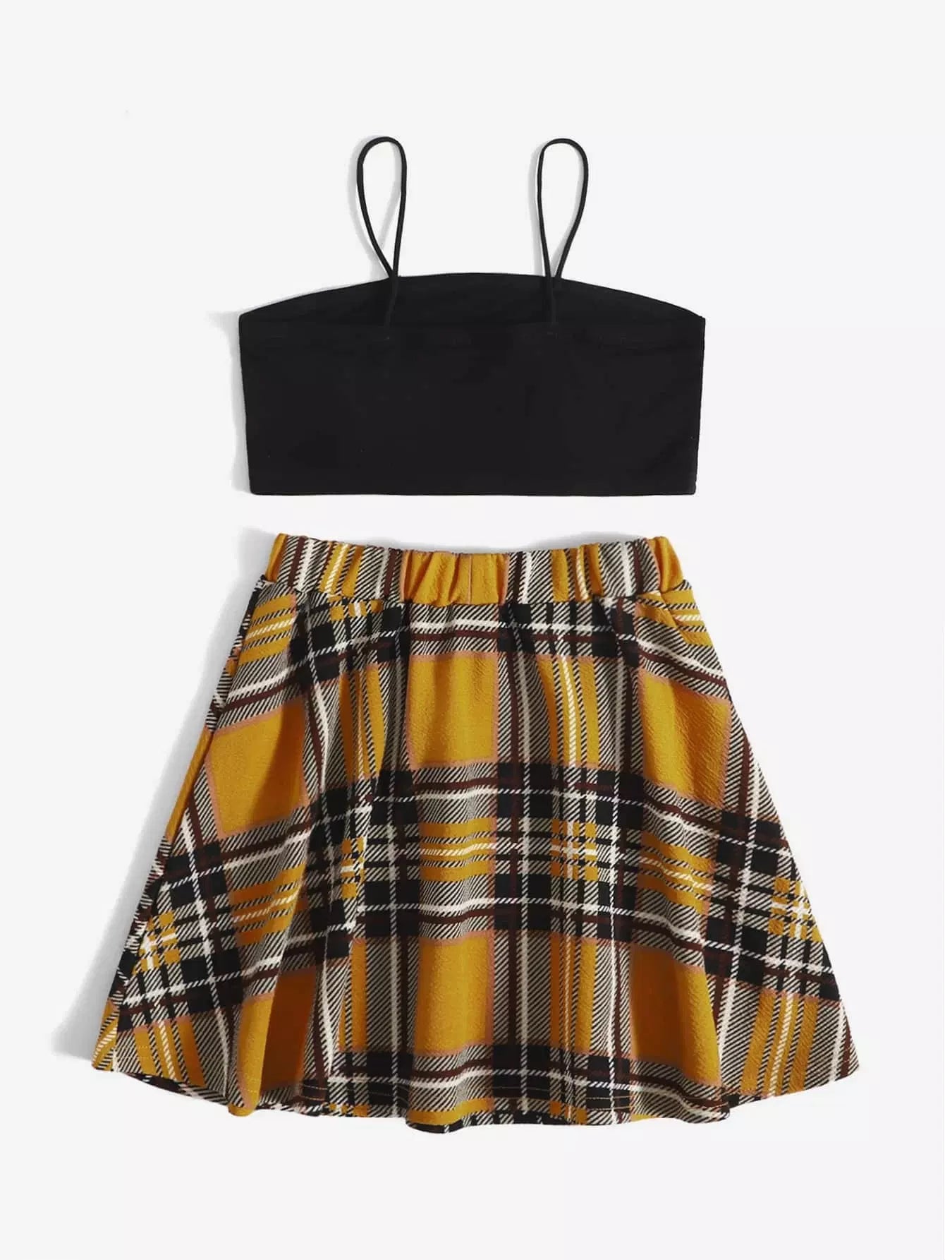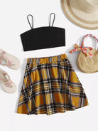 Girls Crop Cami Top and Tartan Flare Skirt Set
