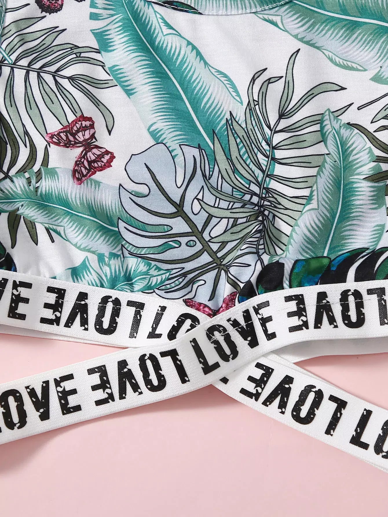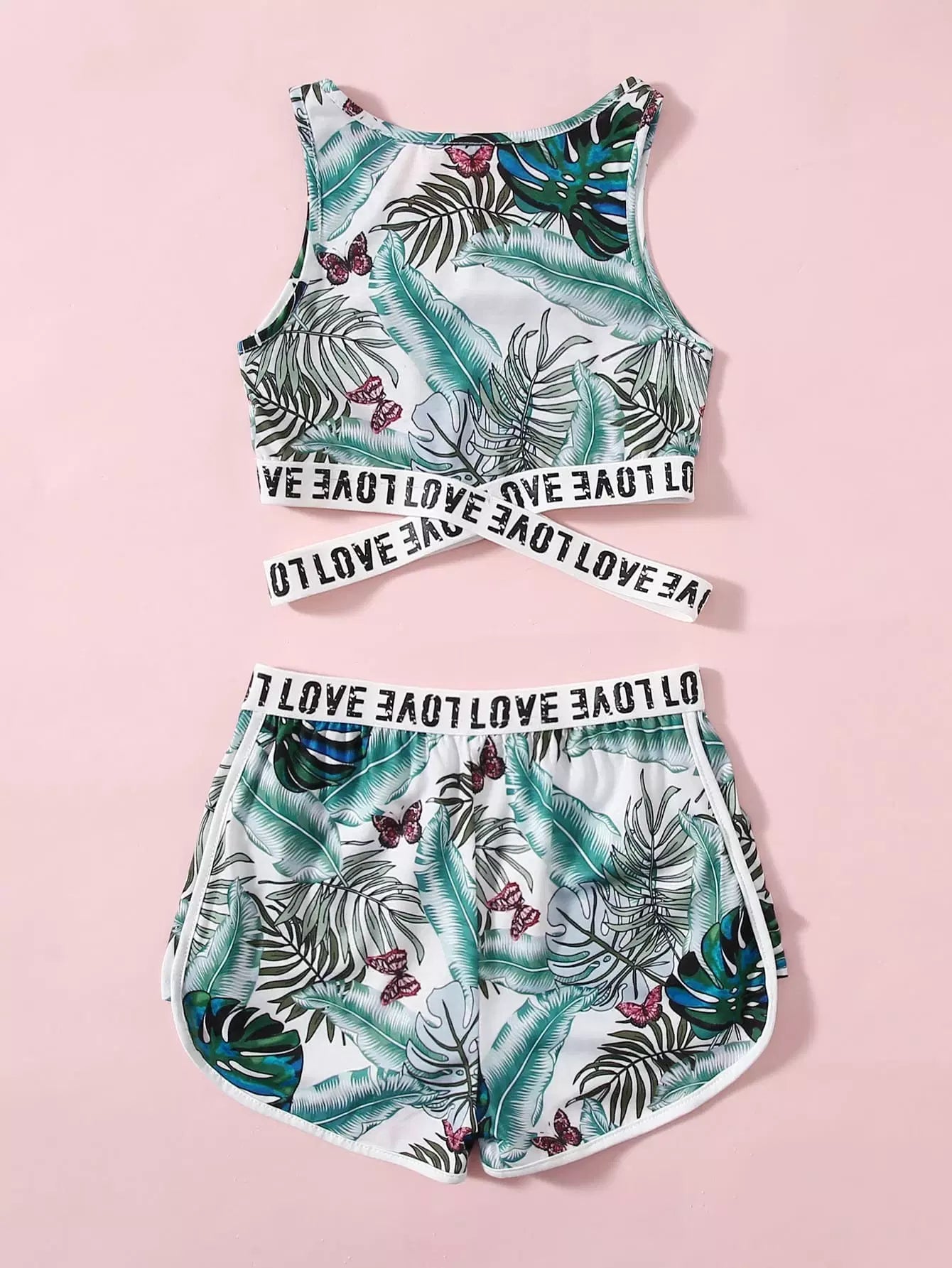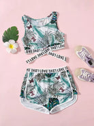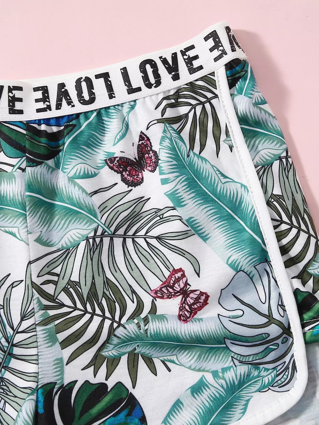 Girls Cutout Hem Tank Top & Tropical Print Shorts Set
