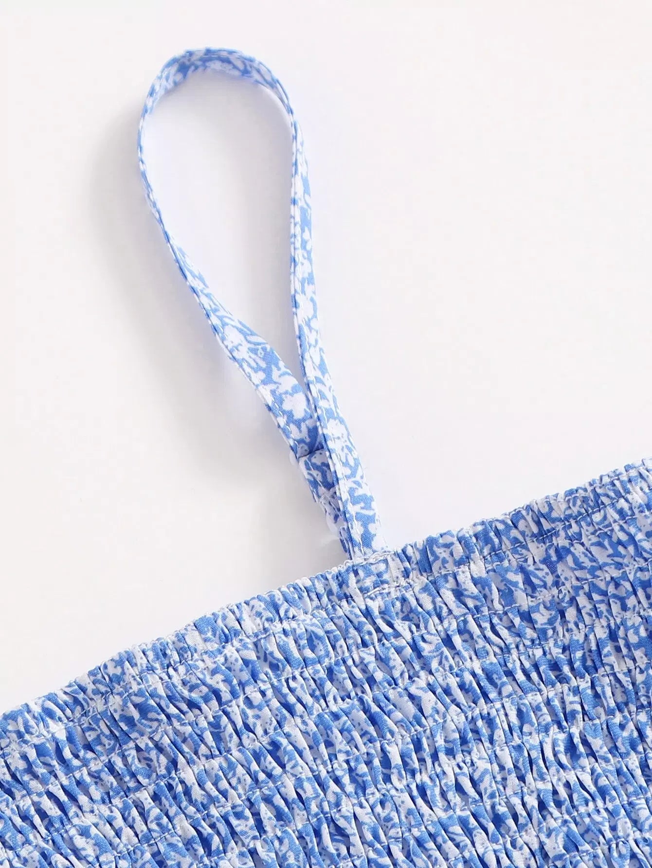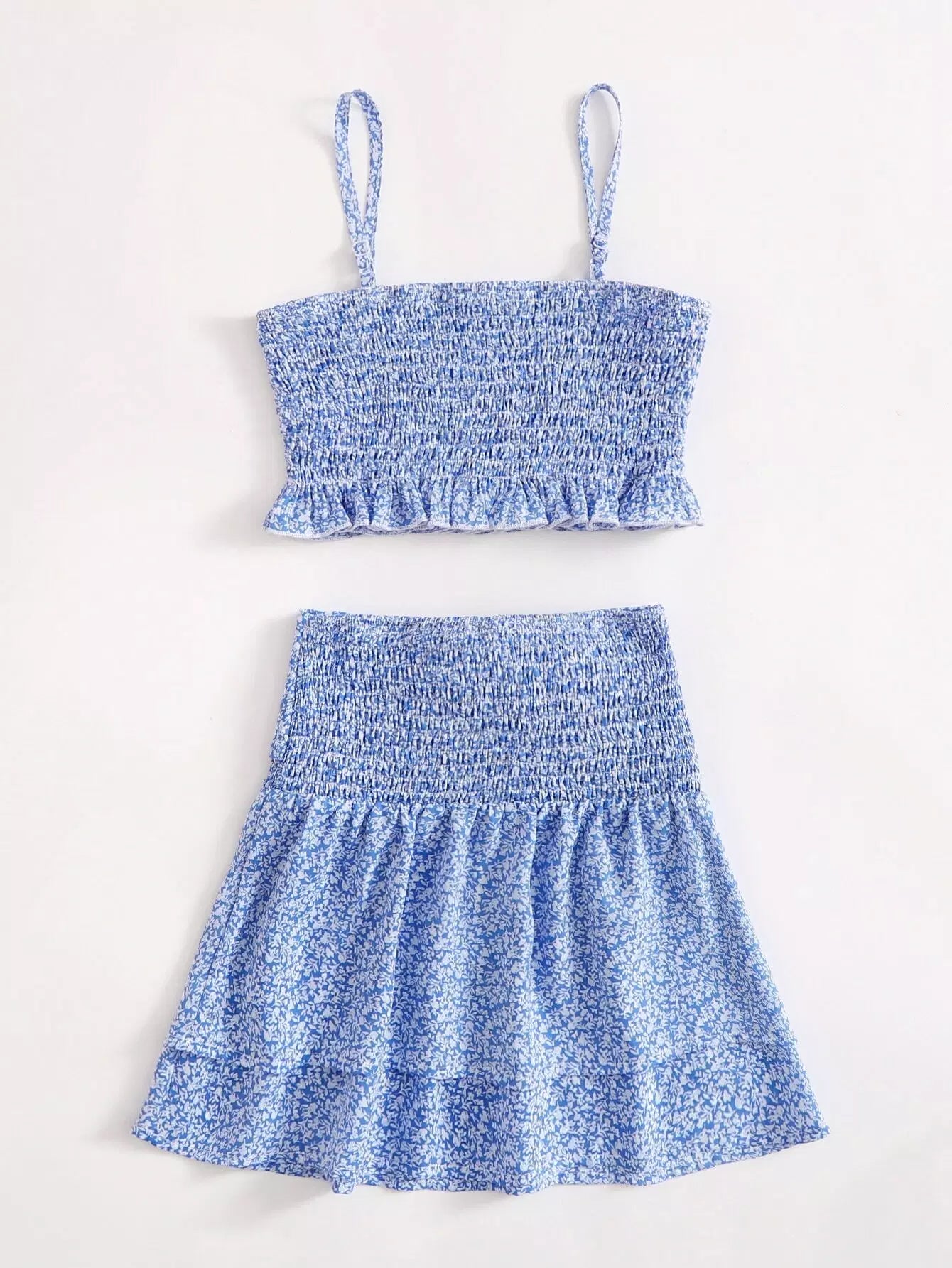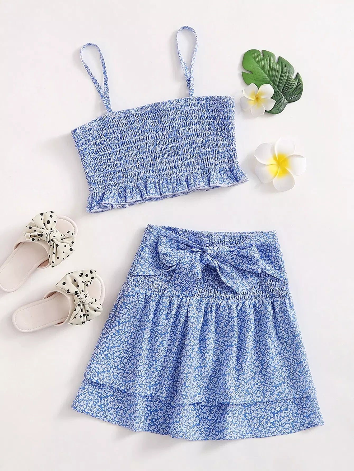 Girls Ditsy Floral Shirred Crop Cami Top & Tie Front Skirt Set