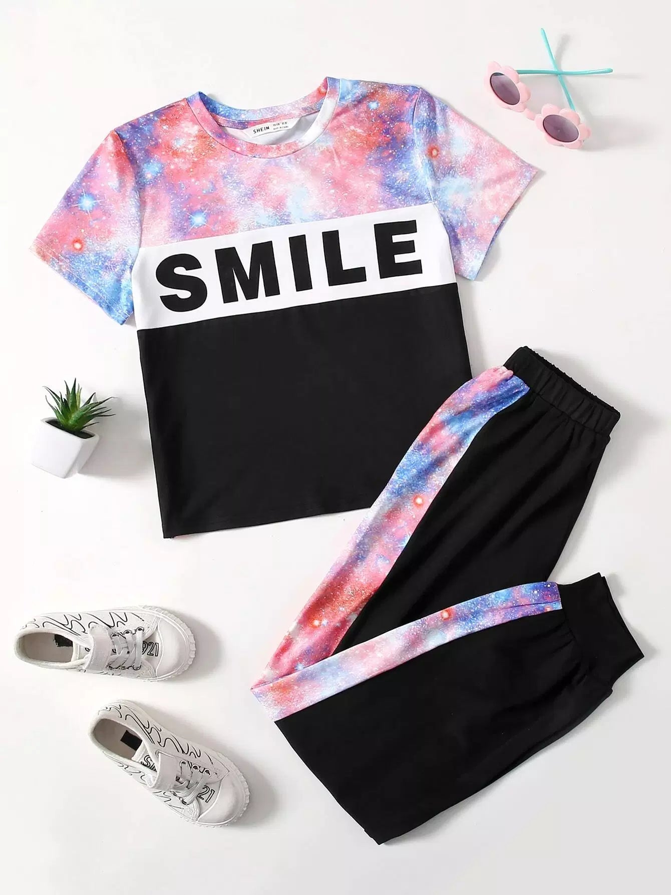 Girls Galaxy Letter Graphic Tee & Sweatpants Set