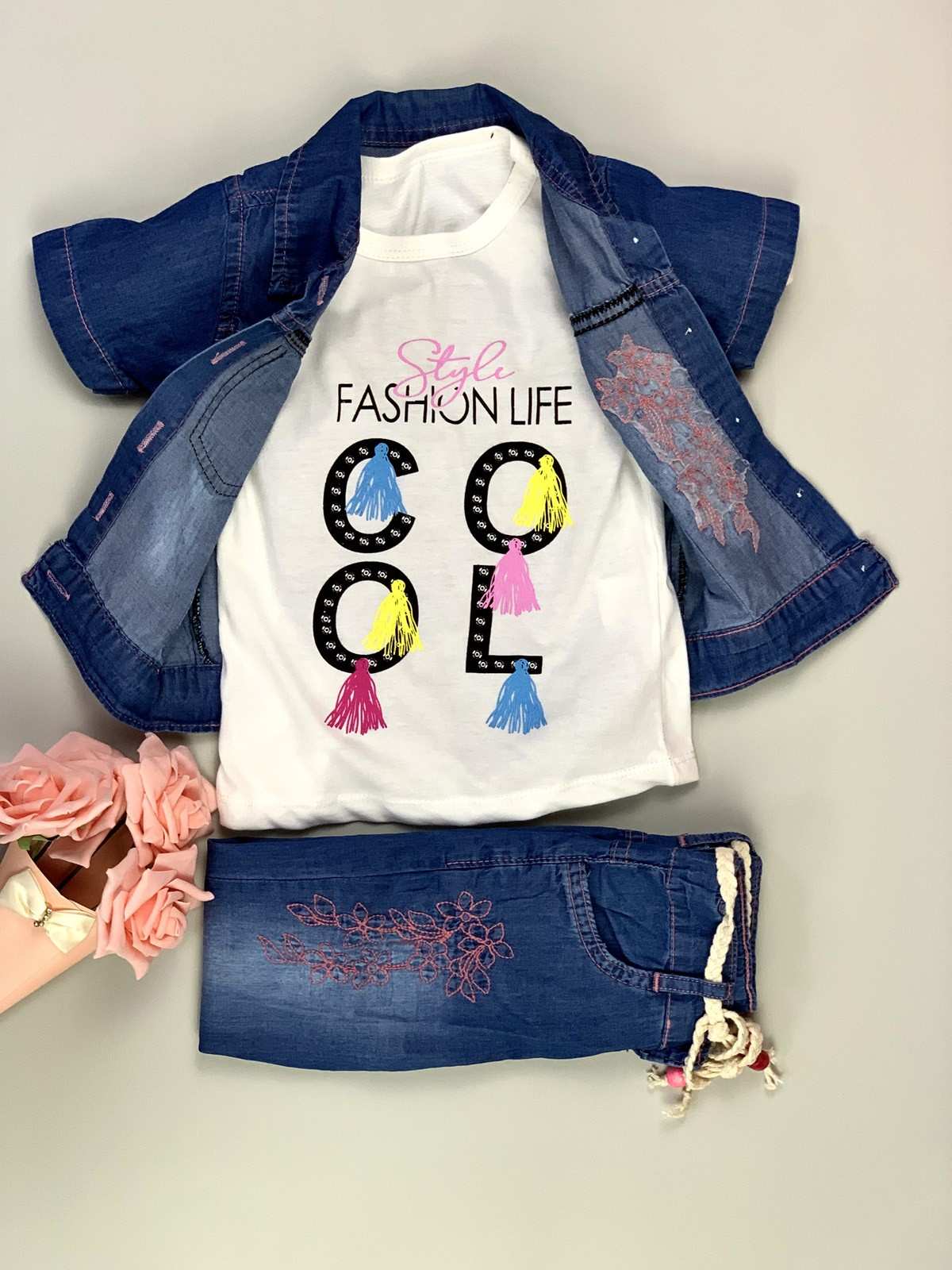 Girls jeans set with cool T-shirt