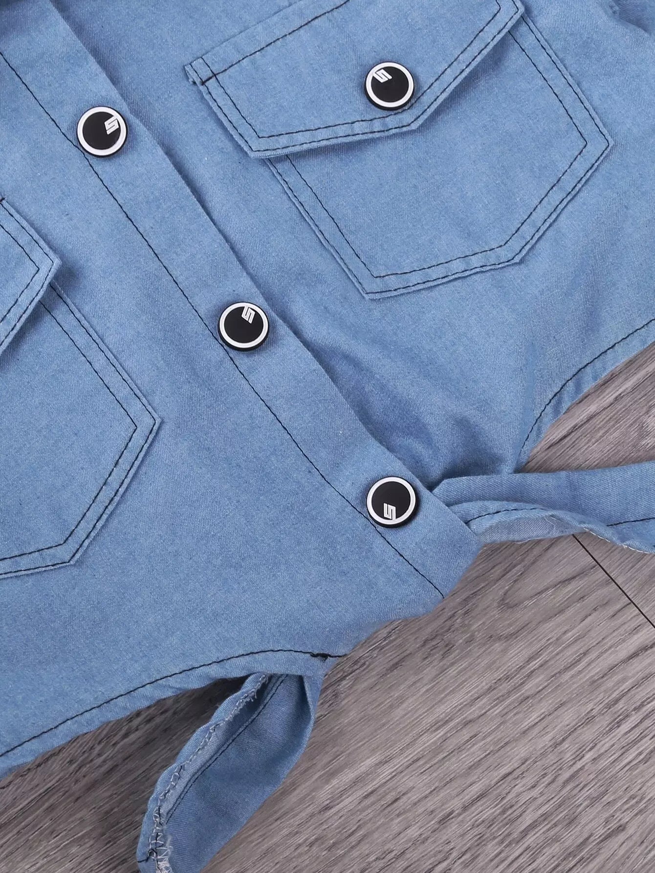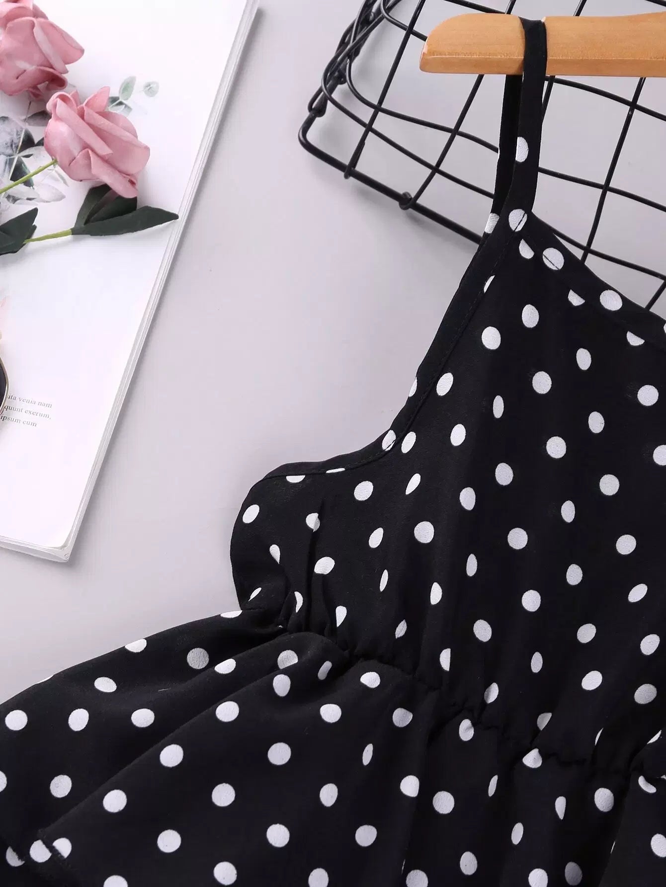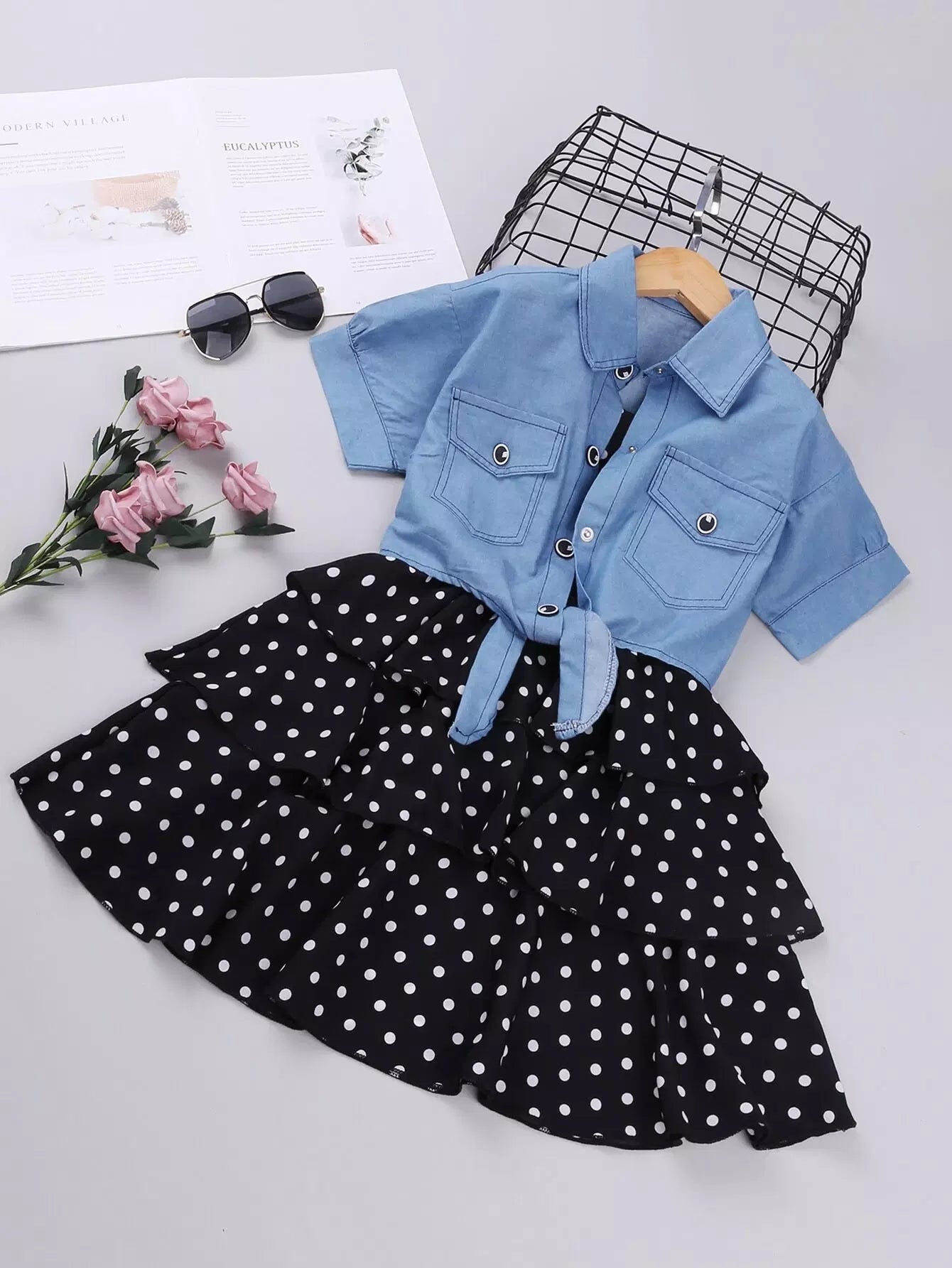 Girls Knot Hem Blouse With Polka Dot Cami Dress