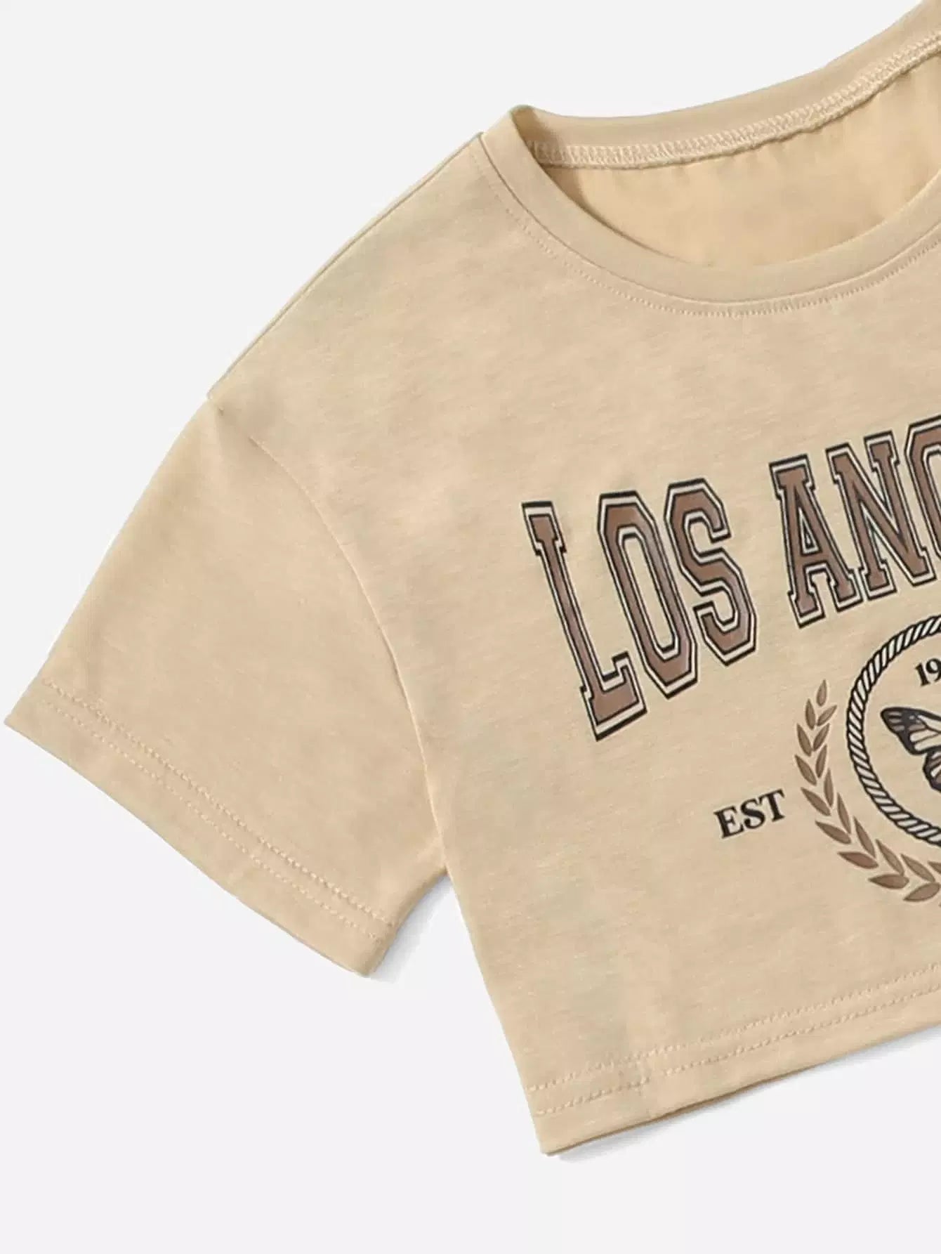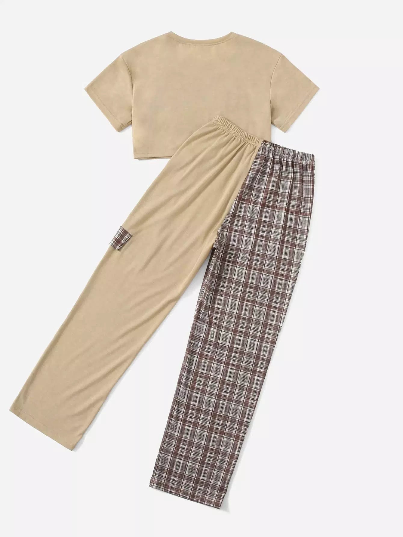 Girls Letter & Butterfly Print Tee & Plaid Pants