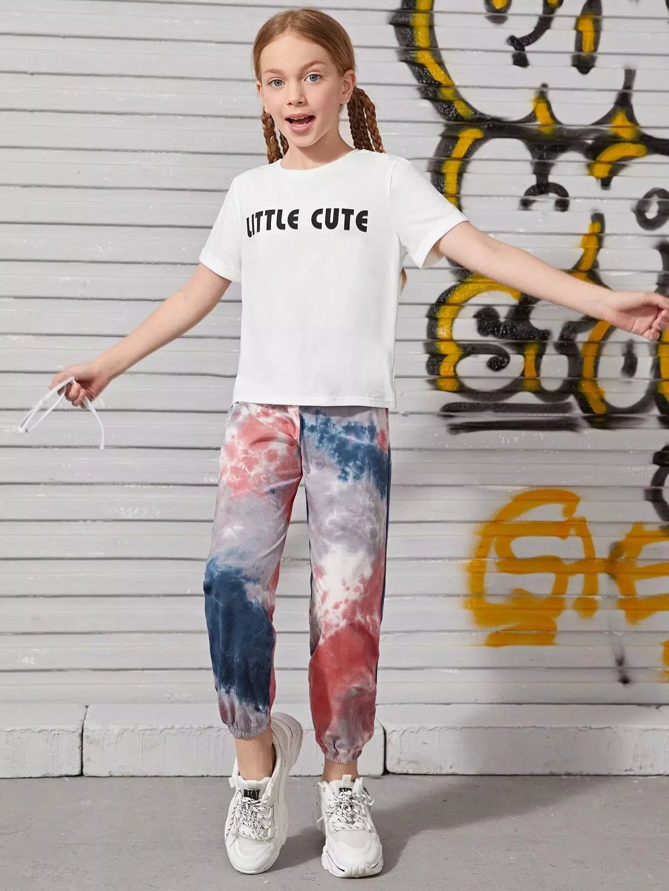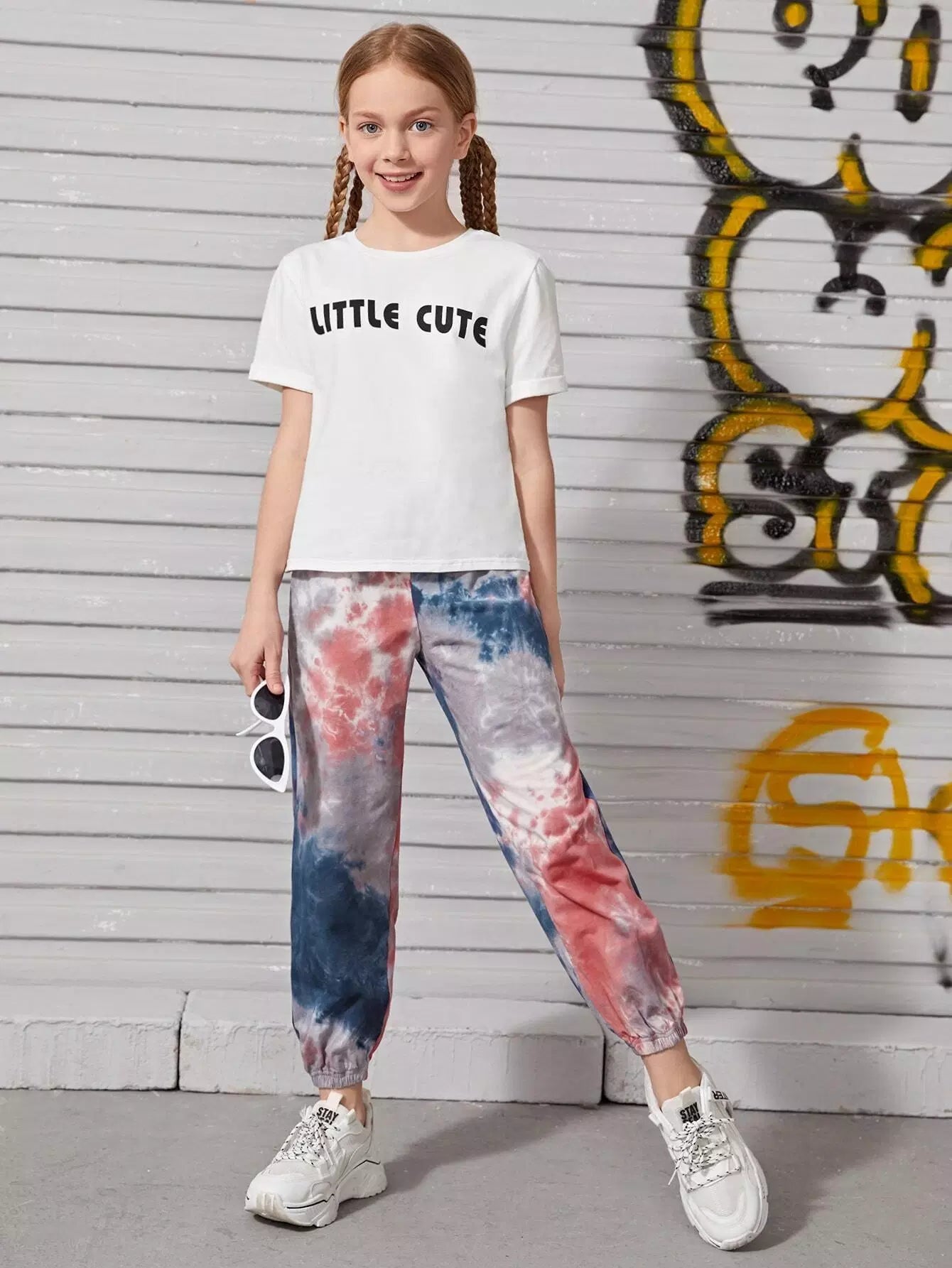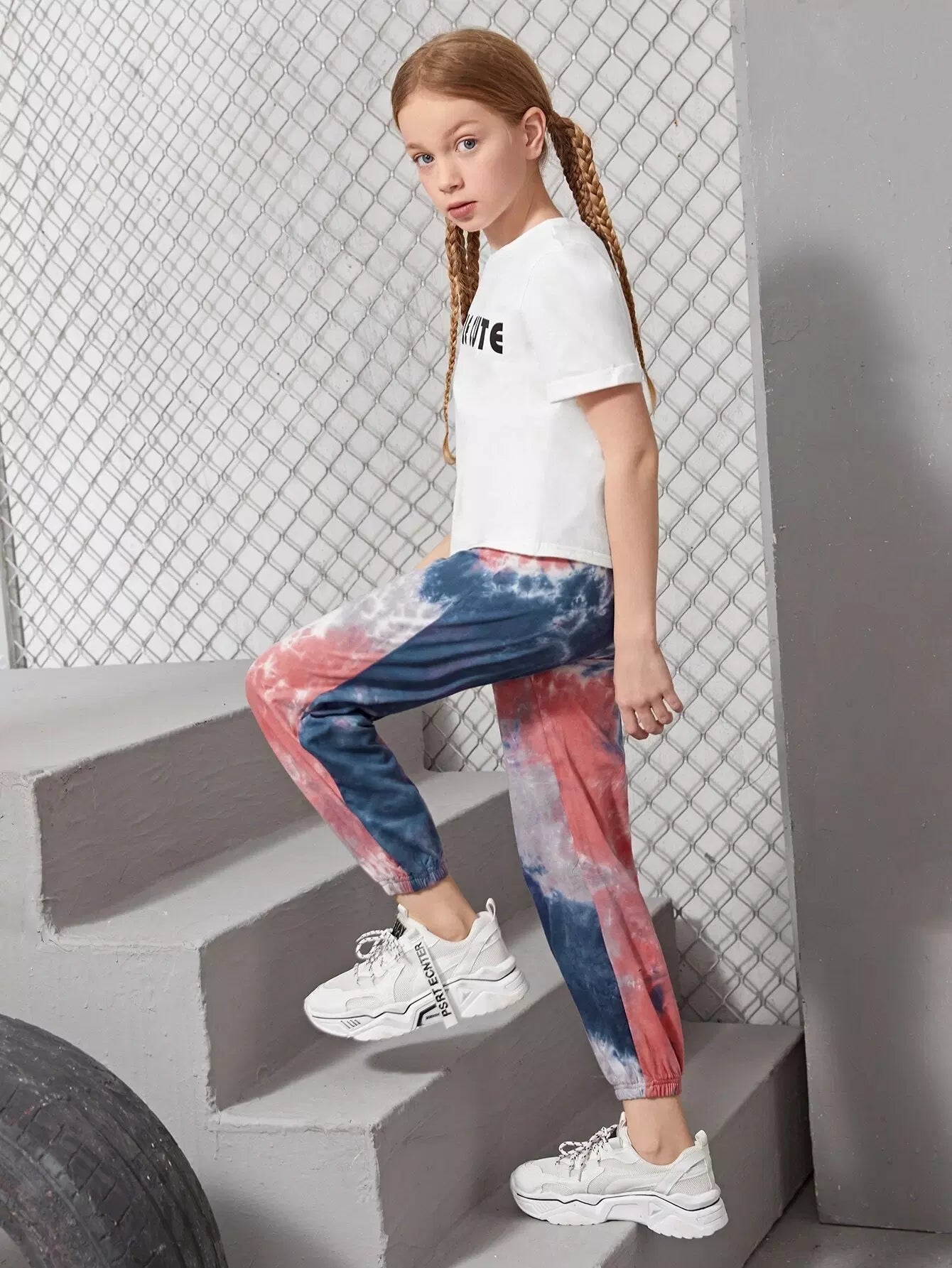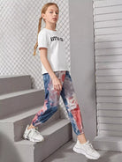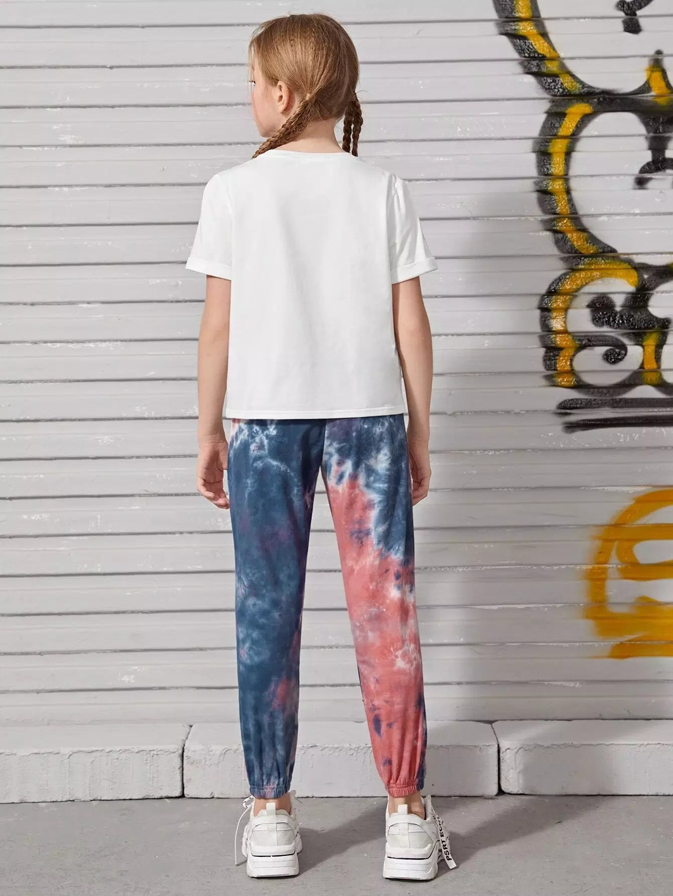 Girls Letter Graphic Tee & Tie Dye Sweatpants Set