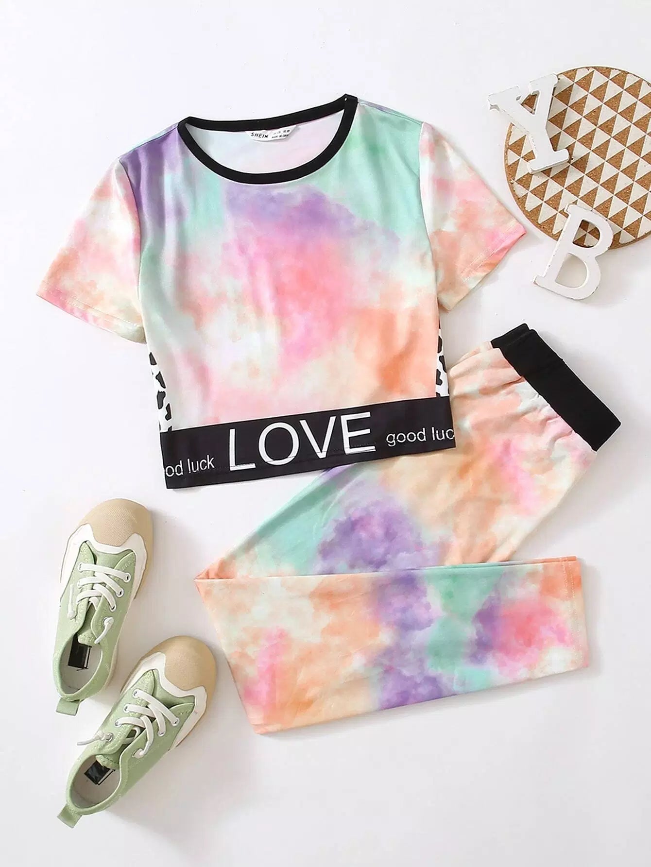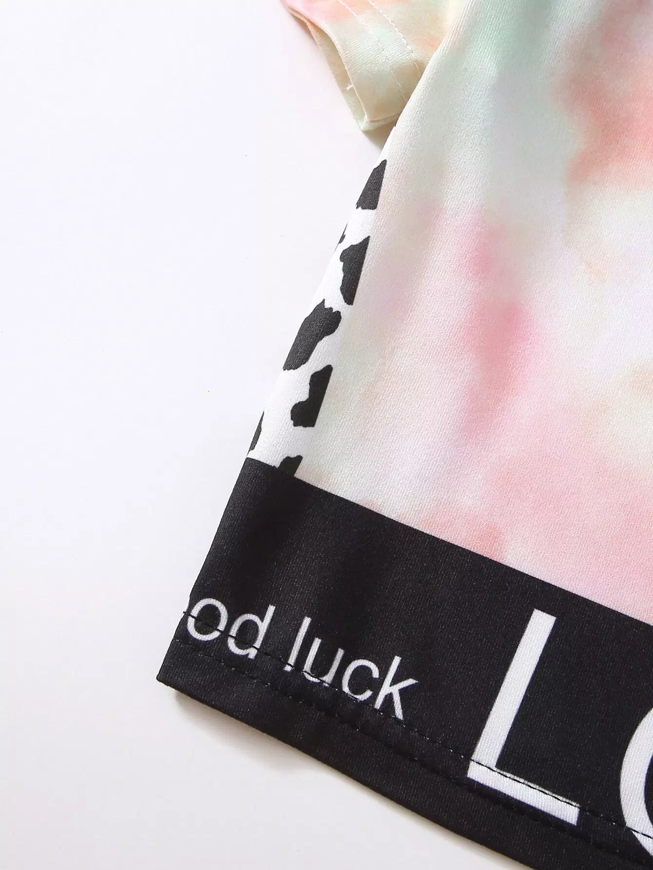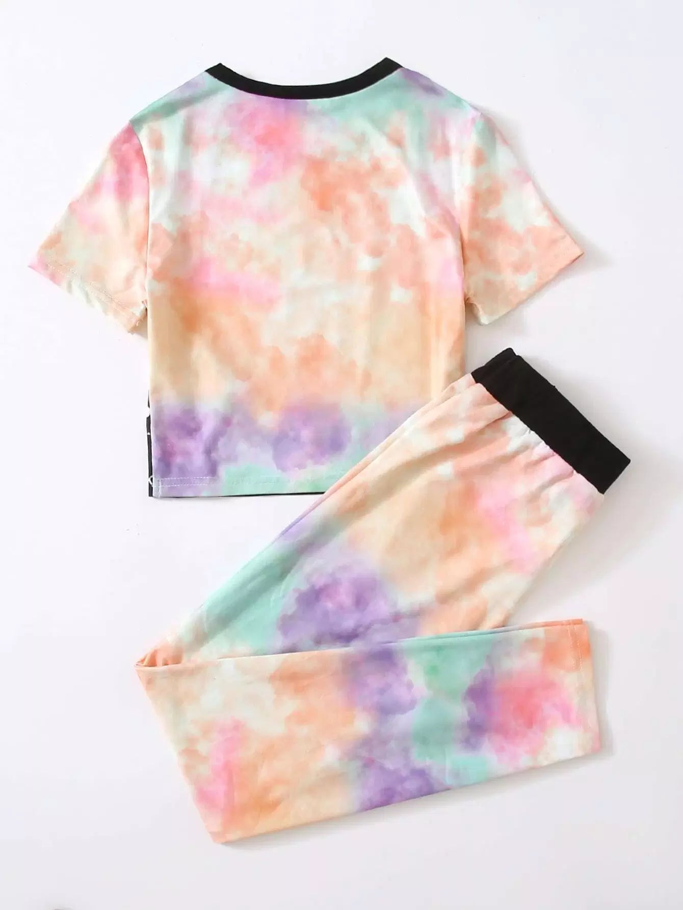 Girls Letter Graphic Tie Dye Tee & Leggings Set