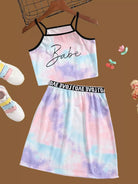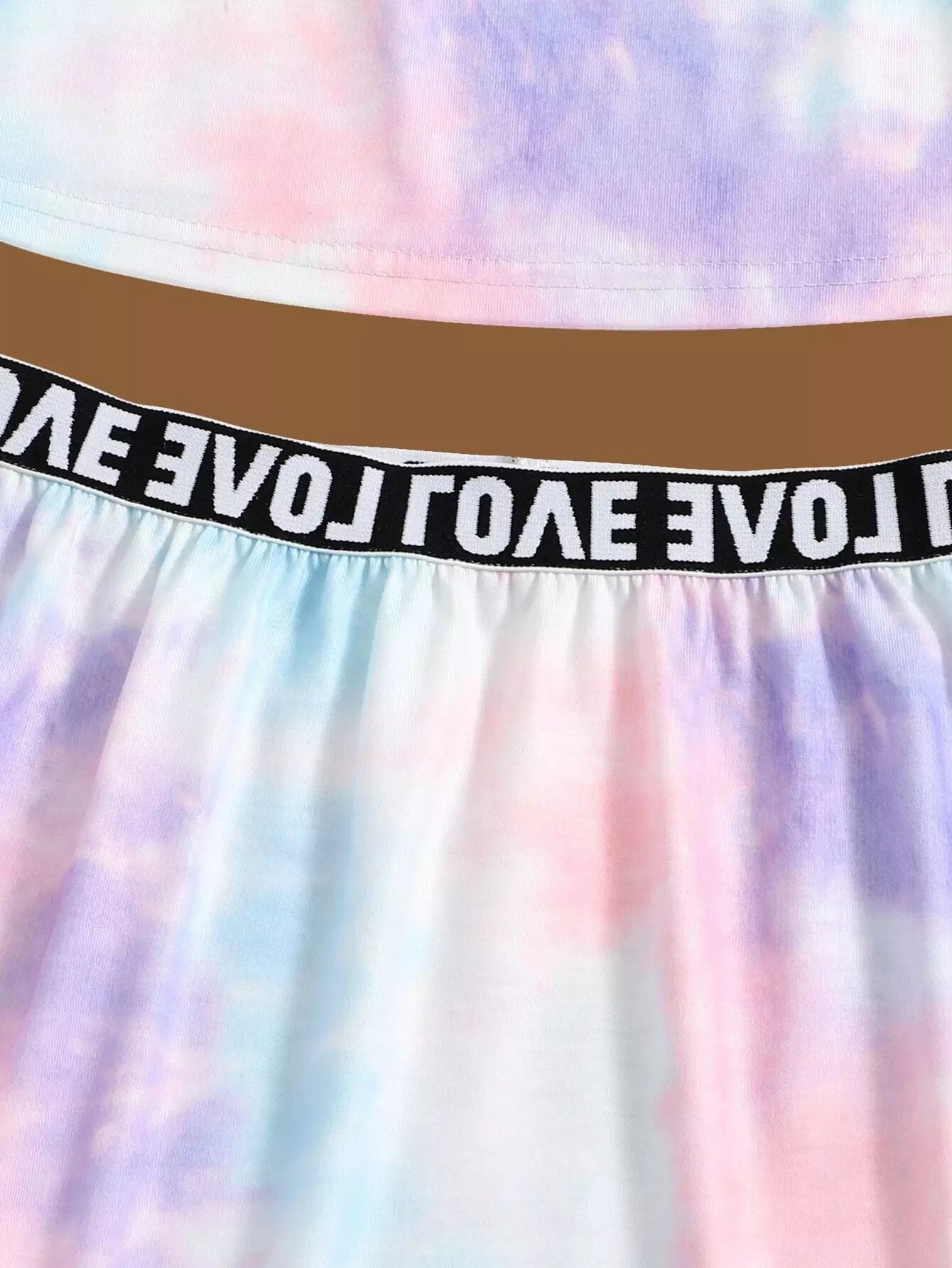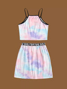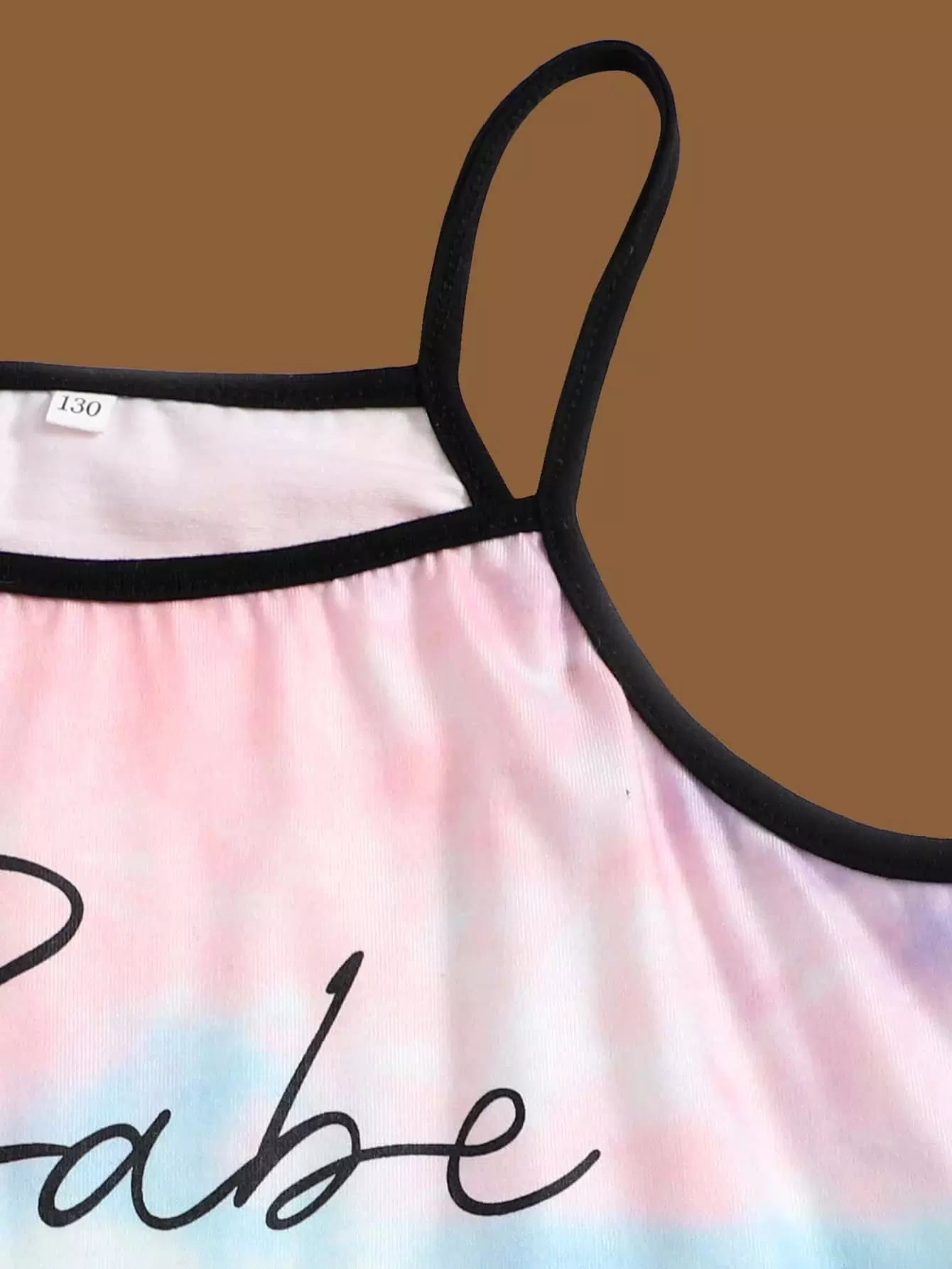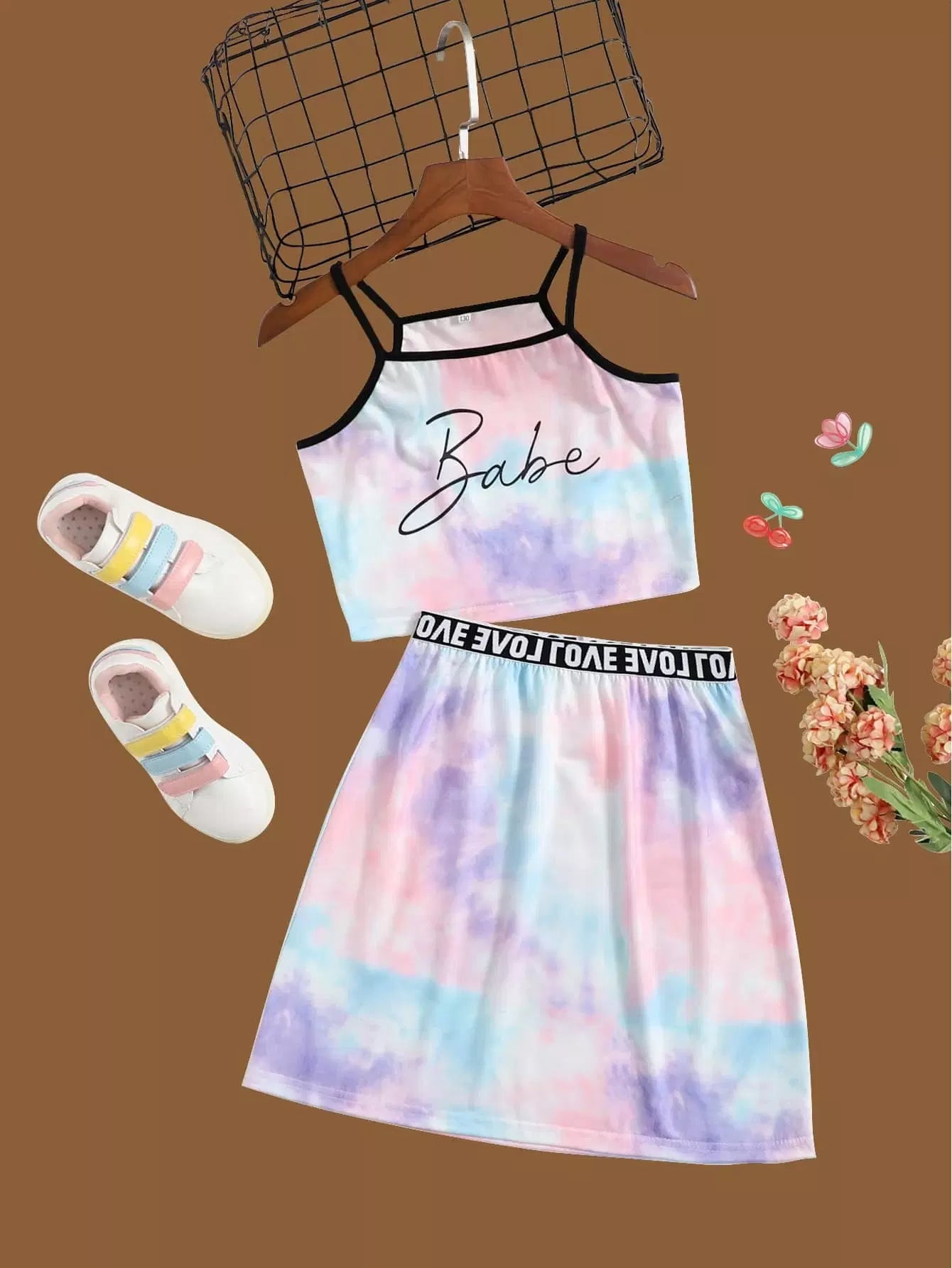 Kids - Girls Letter Print Contrast Binding Cami Top & Tie Dye Letter Tape Skirt