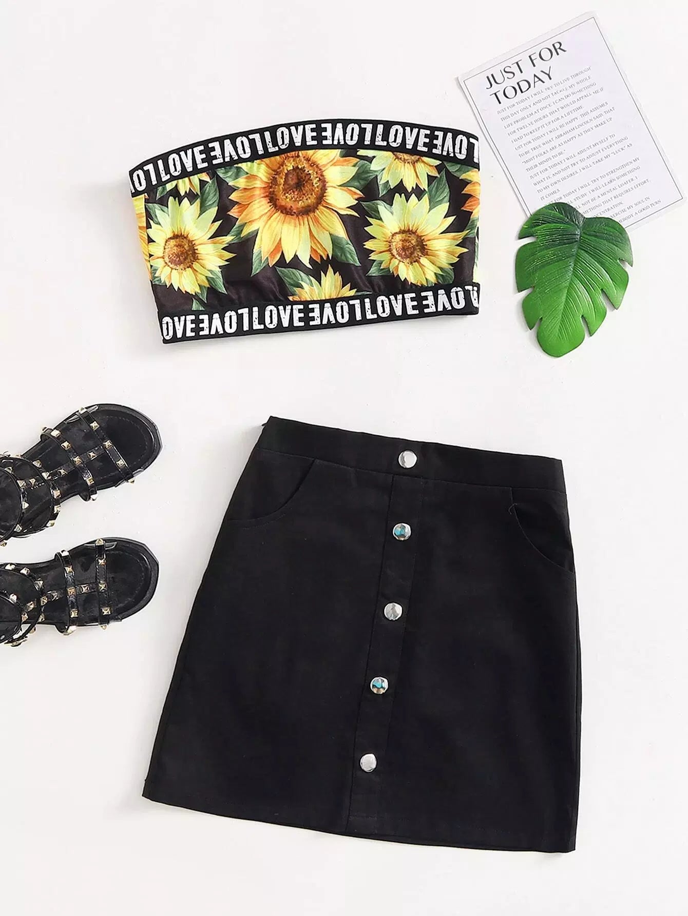 Girls Letter & Sunflower Print Tube Top and Skirt Set