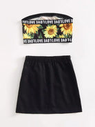 Kids - Girls Letter & Sunflower Print Tube Top and Skirt Set