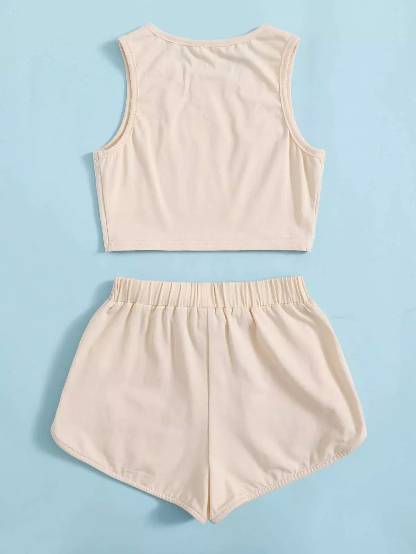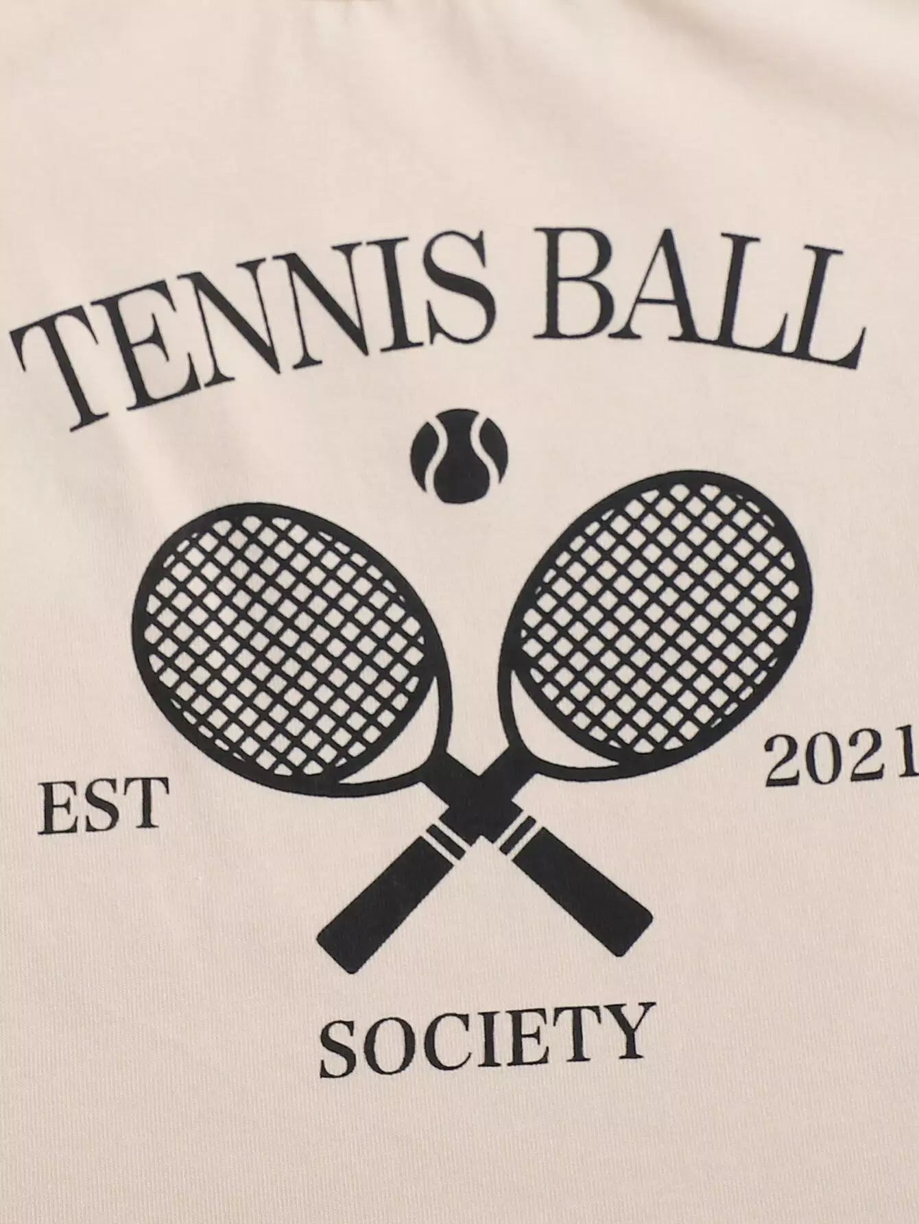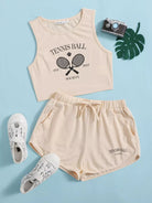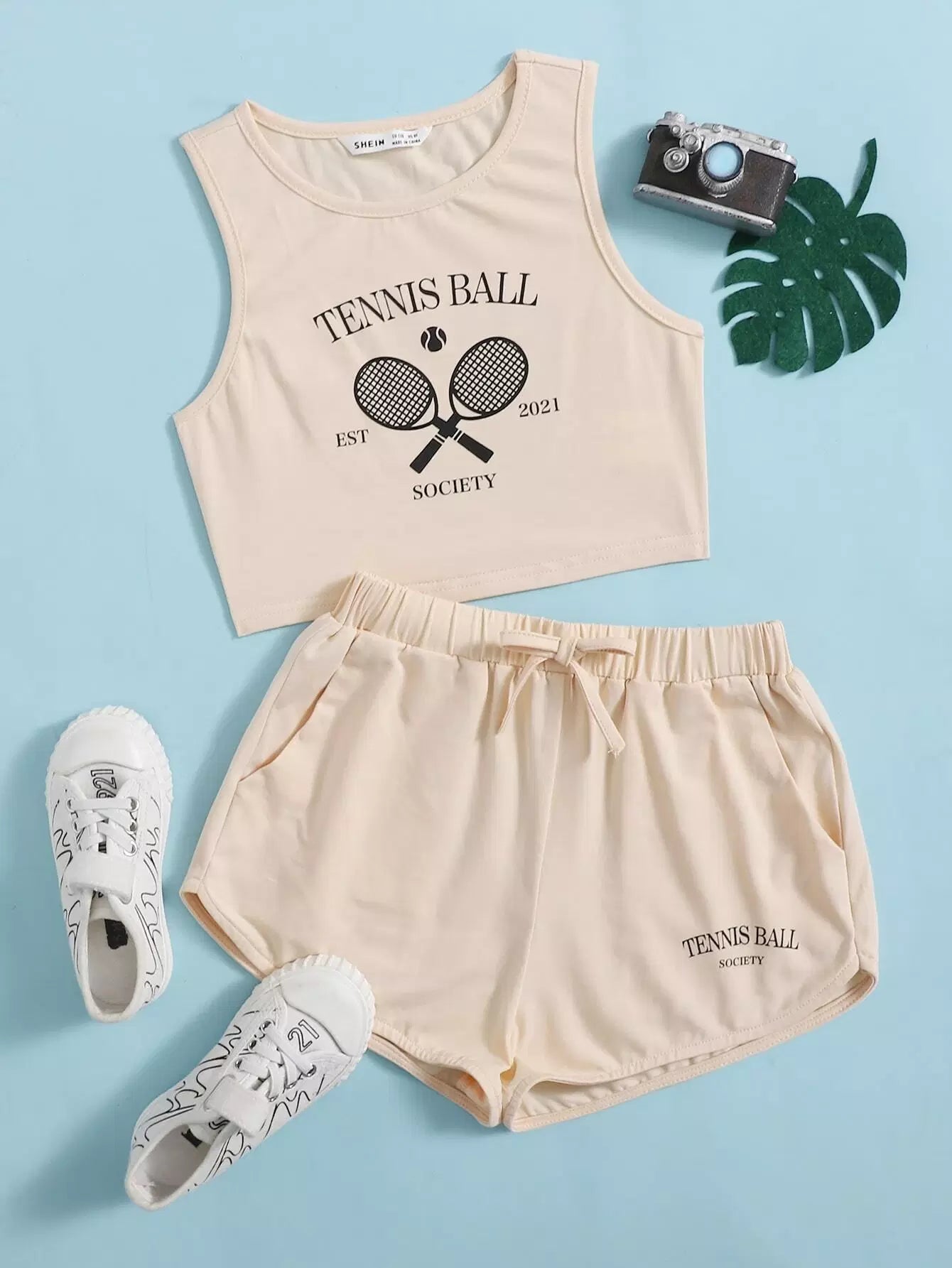 Girls Letter & Tennis Print Tank Top and Shorts Set