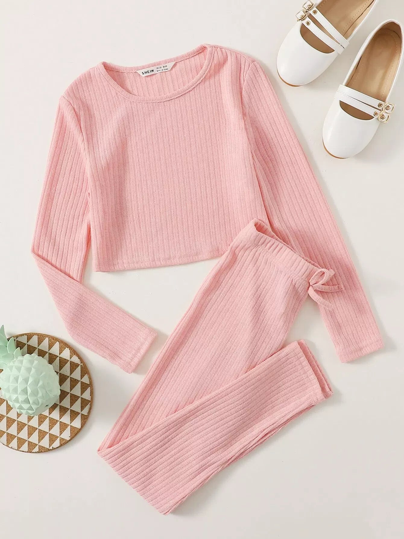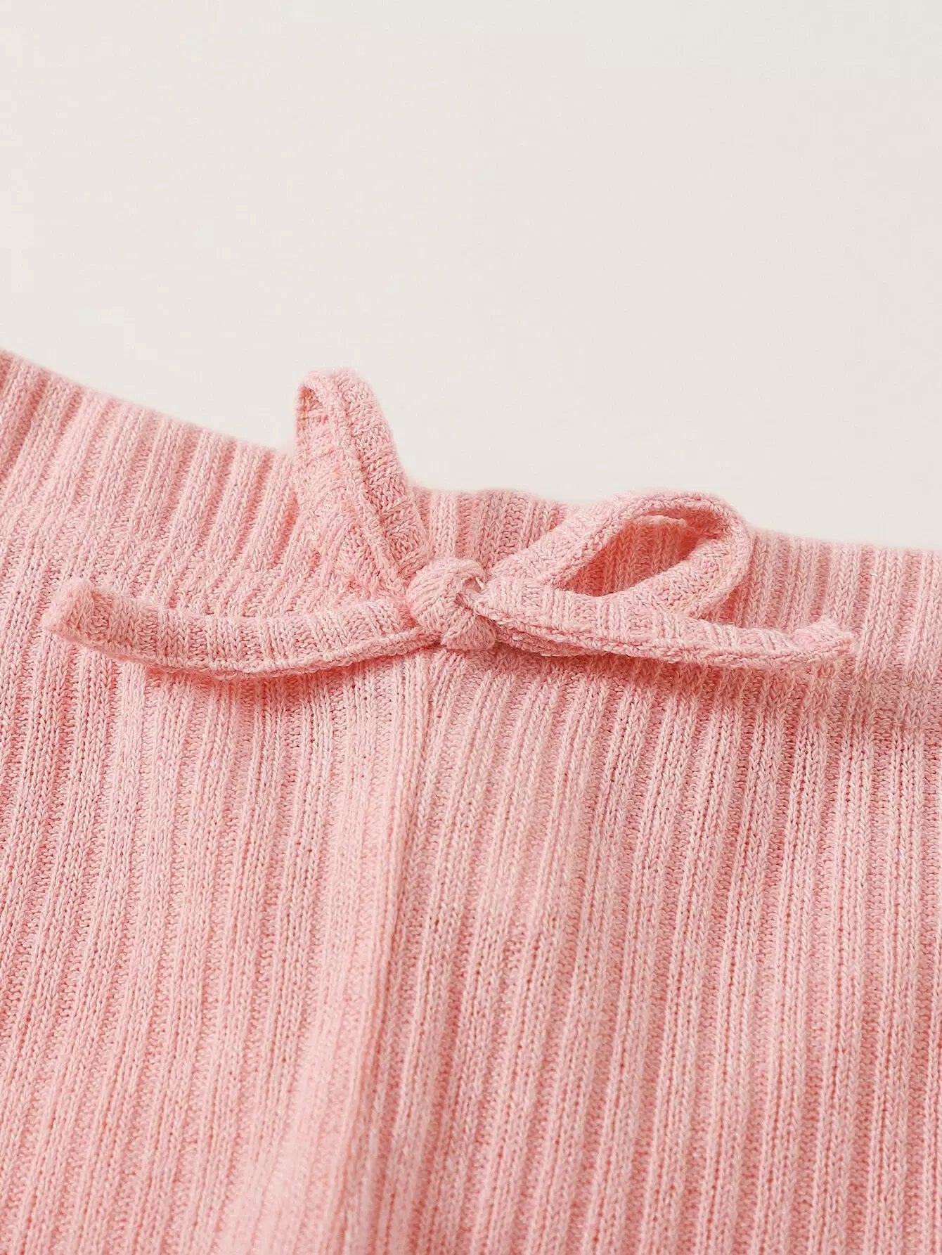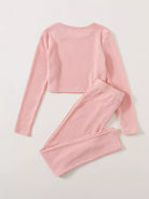 Girls Rib-knit Crop Top & Knot Waist Leggings Set