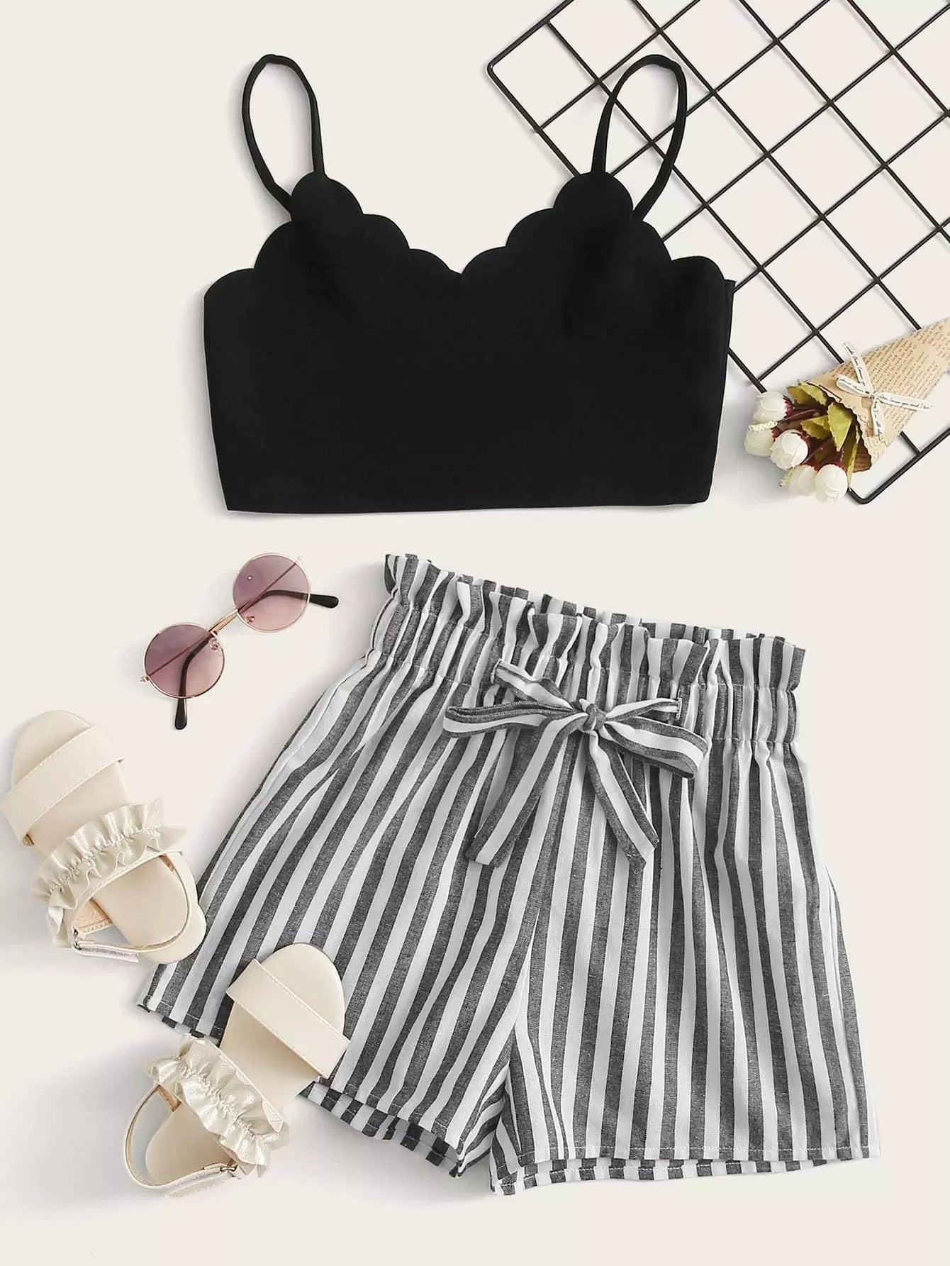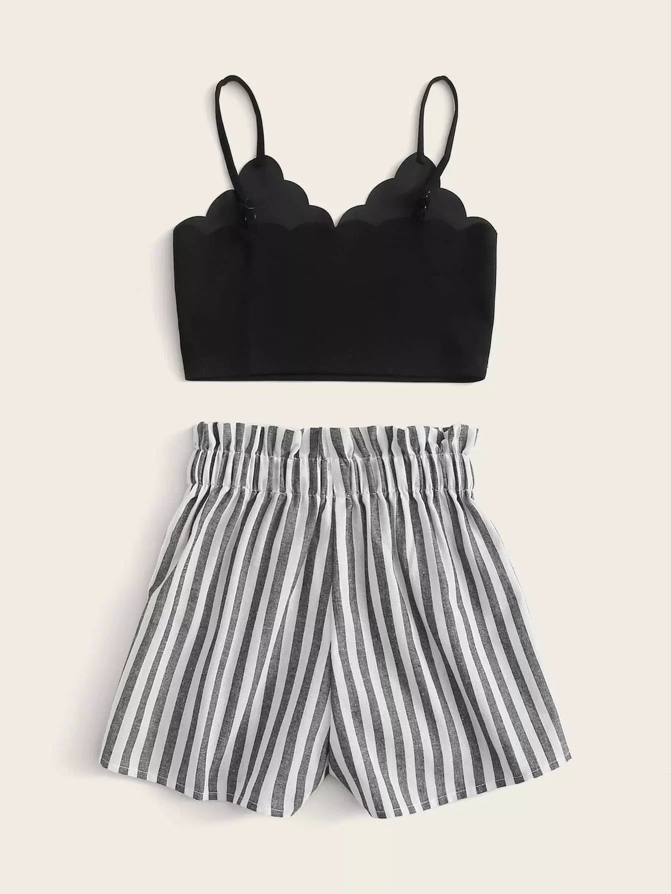 Girls Scallop Edge Cami Top and Tied Paperbag Waist Pants Set