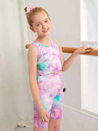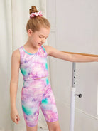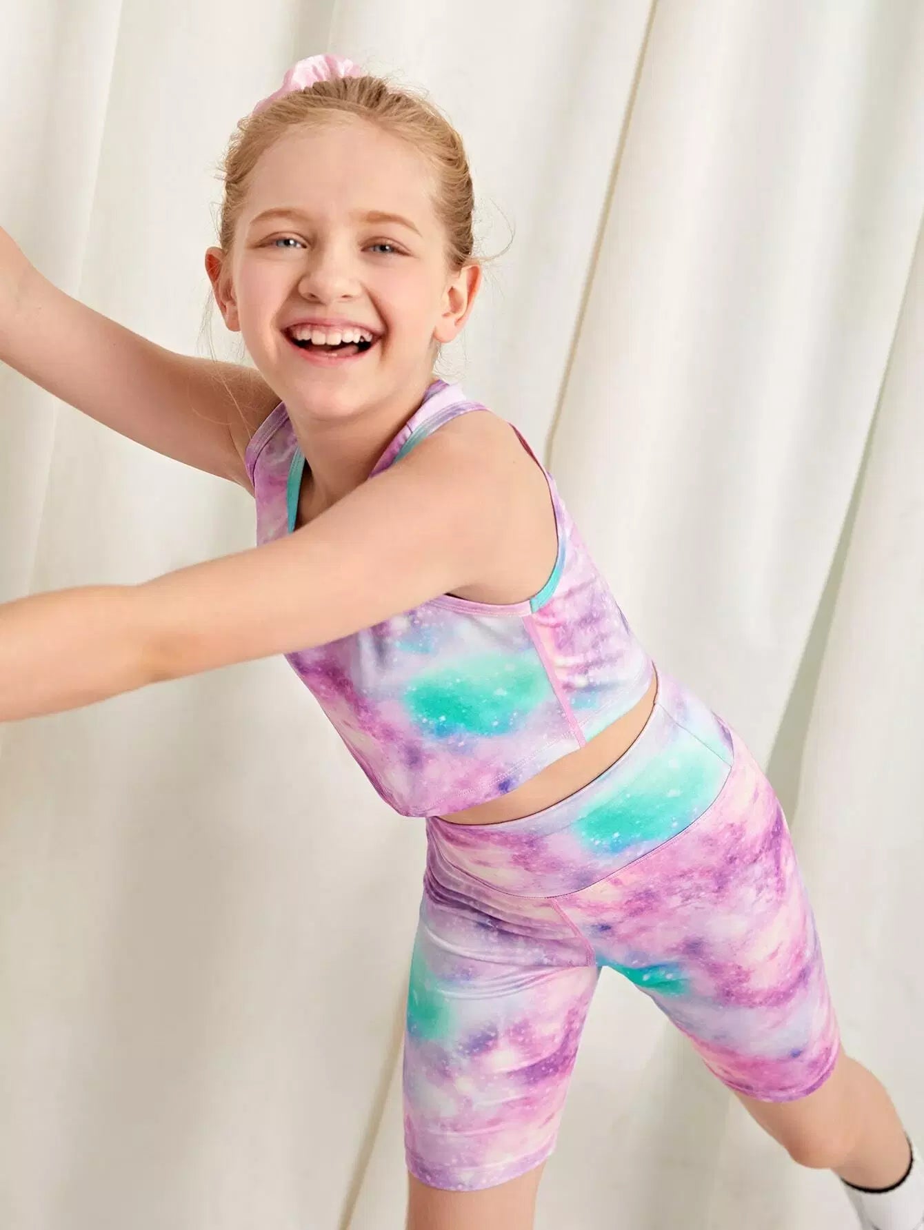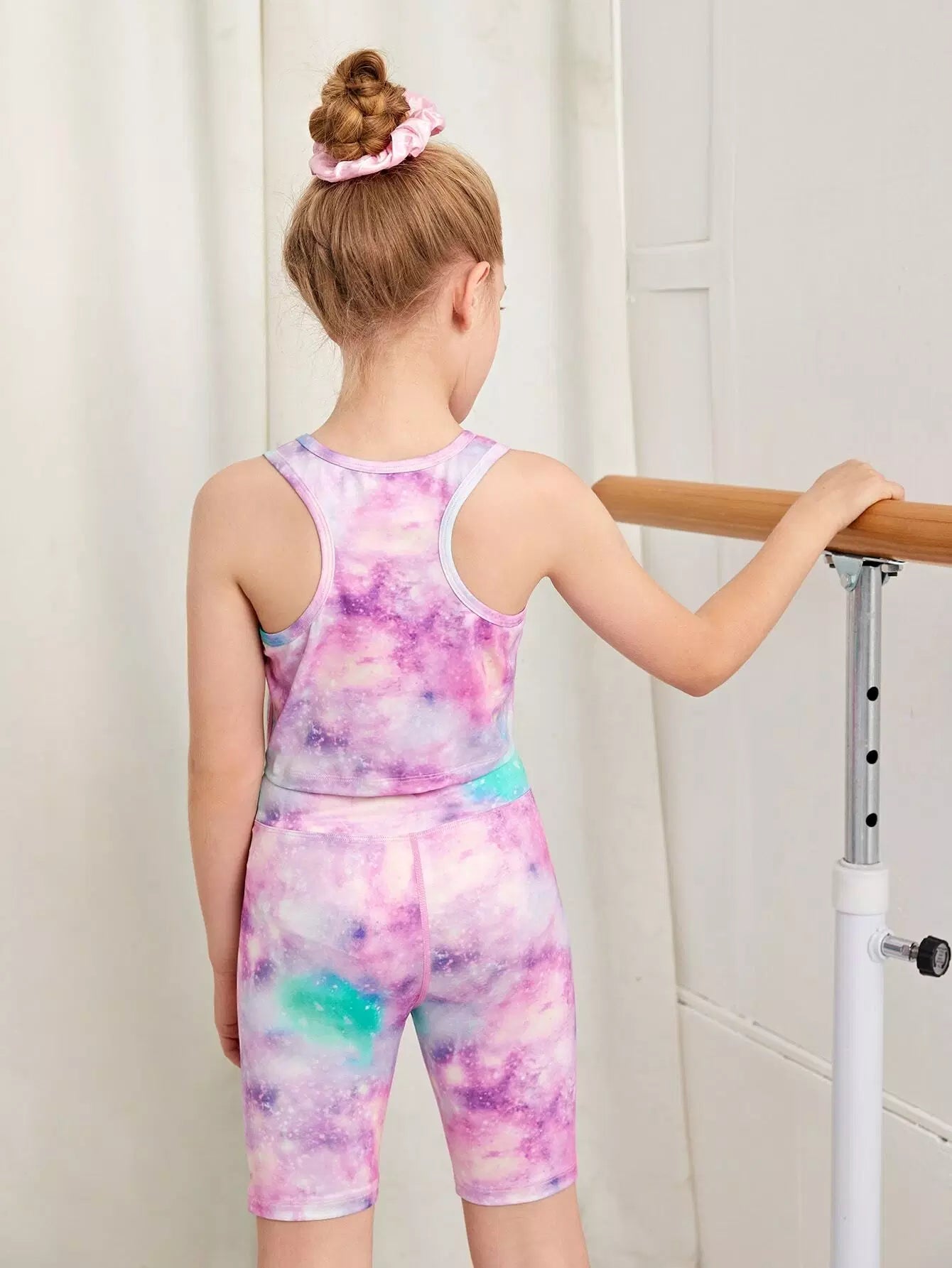 Girls Tie Dye Print Sports Tank Top With Biker Shorts