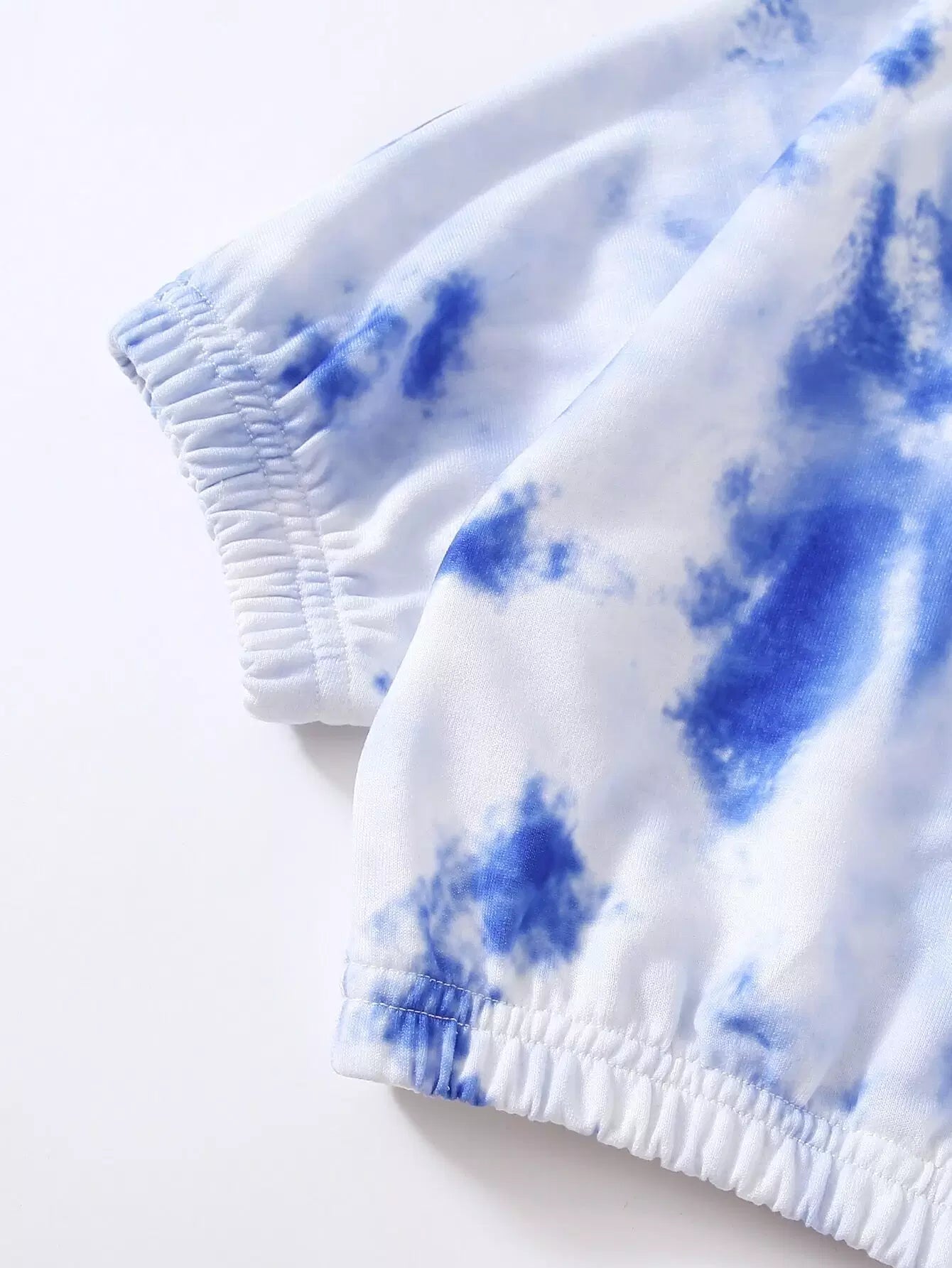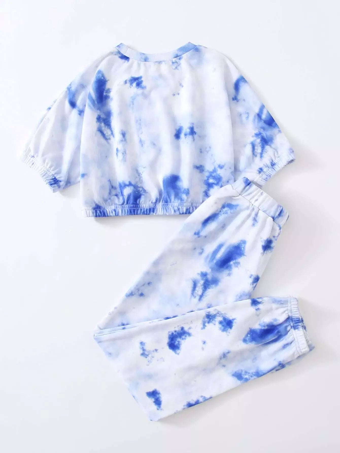 Girls Tie Dye Pullover & Knot Front Joggers Set