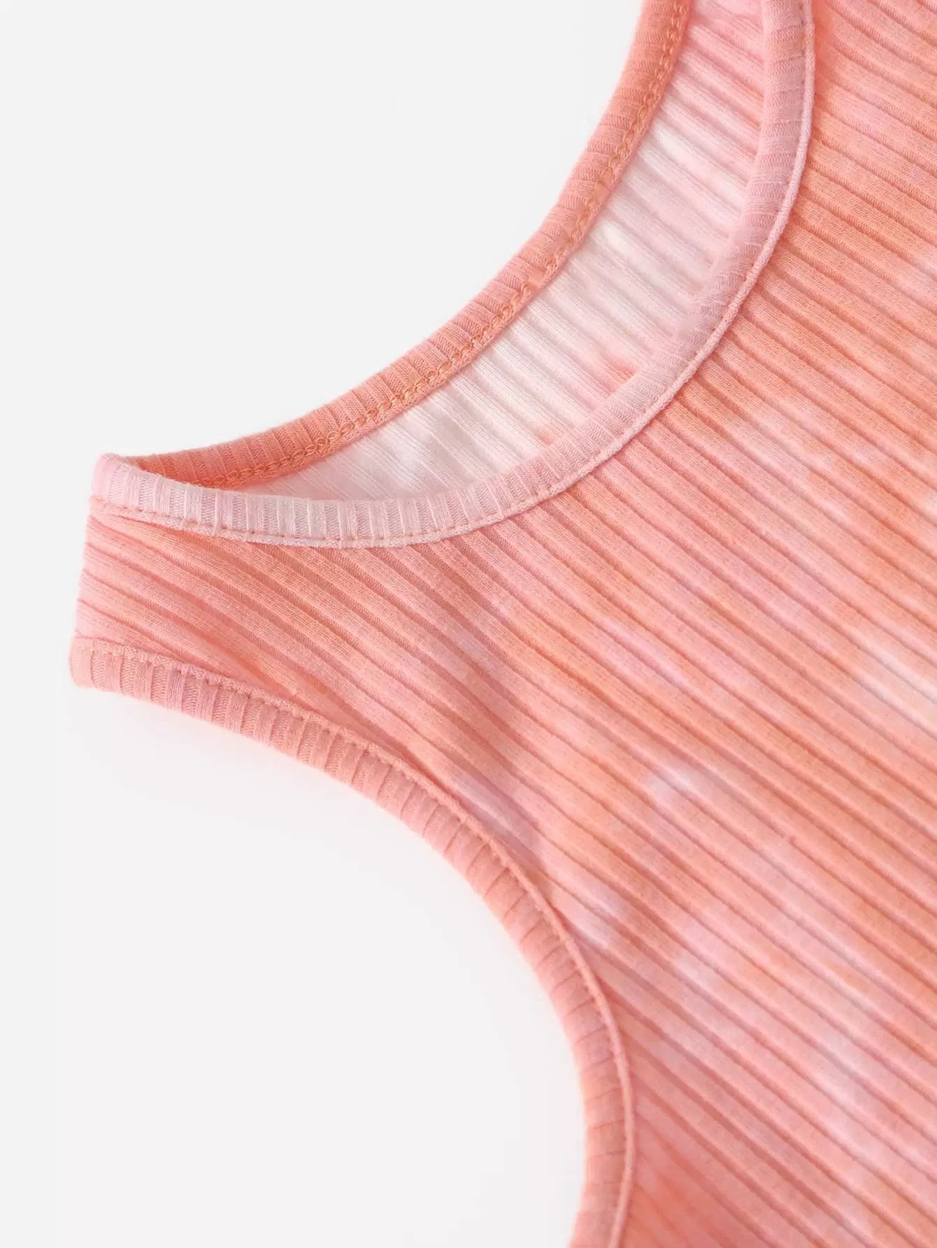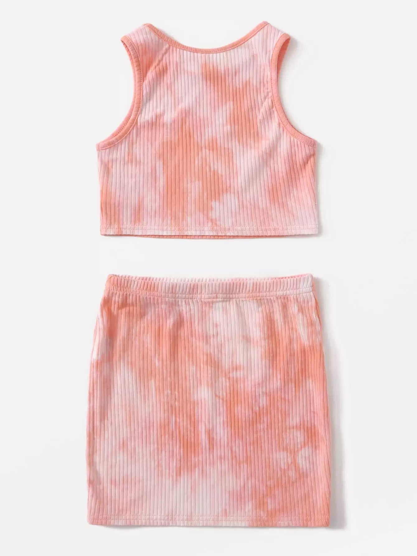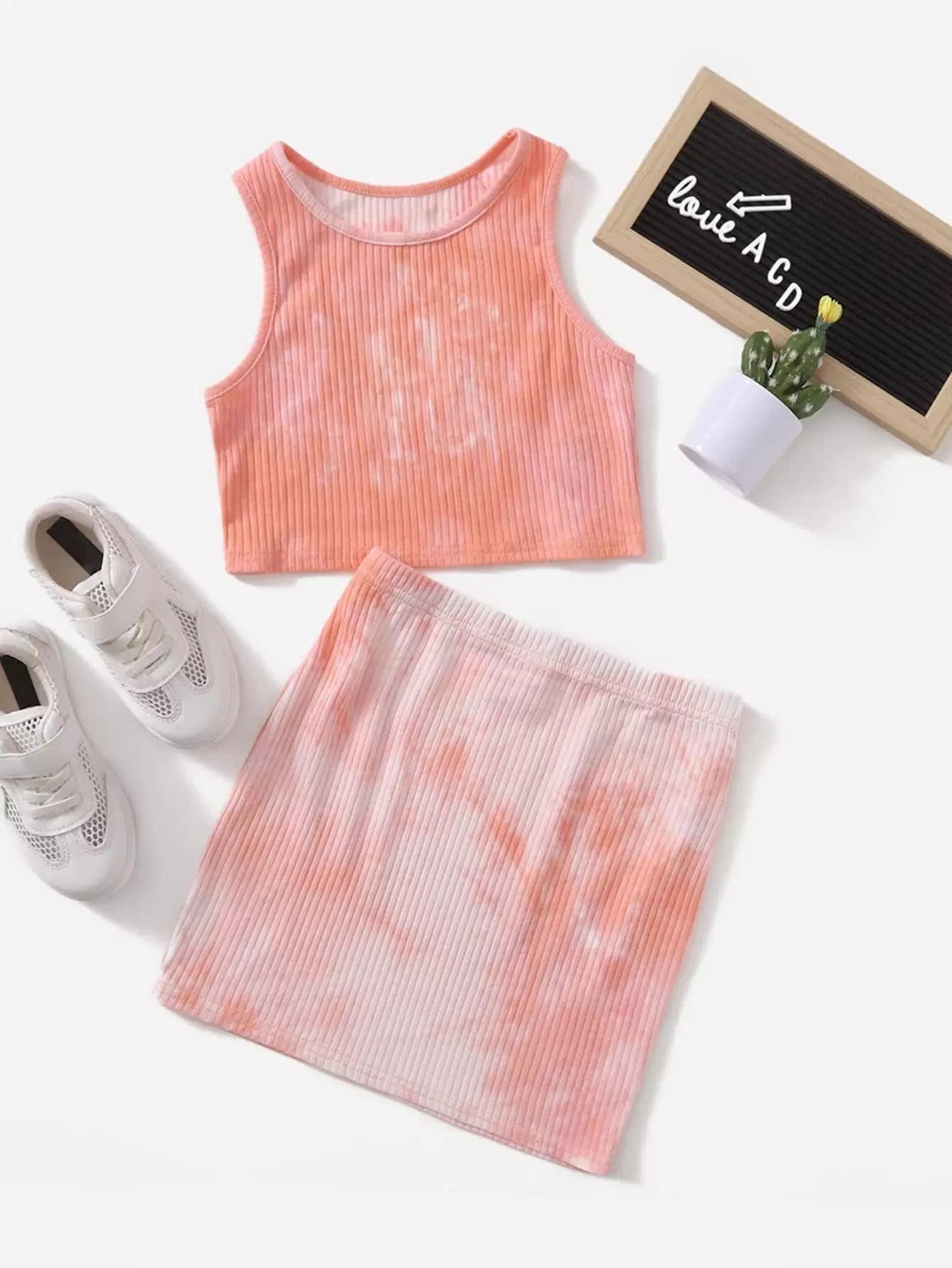 Girls Tie Dye Rib-knit Tank Top and Skirt Set