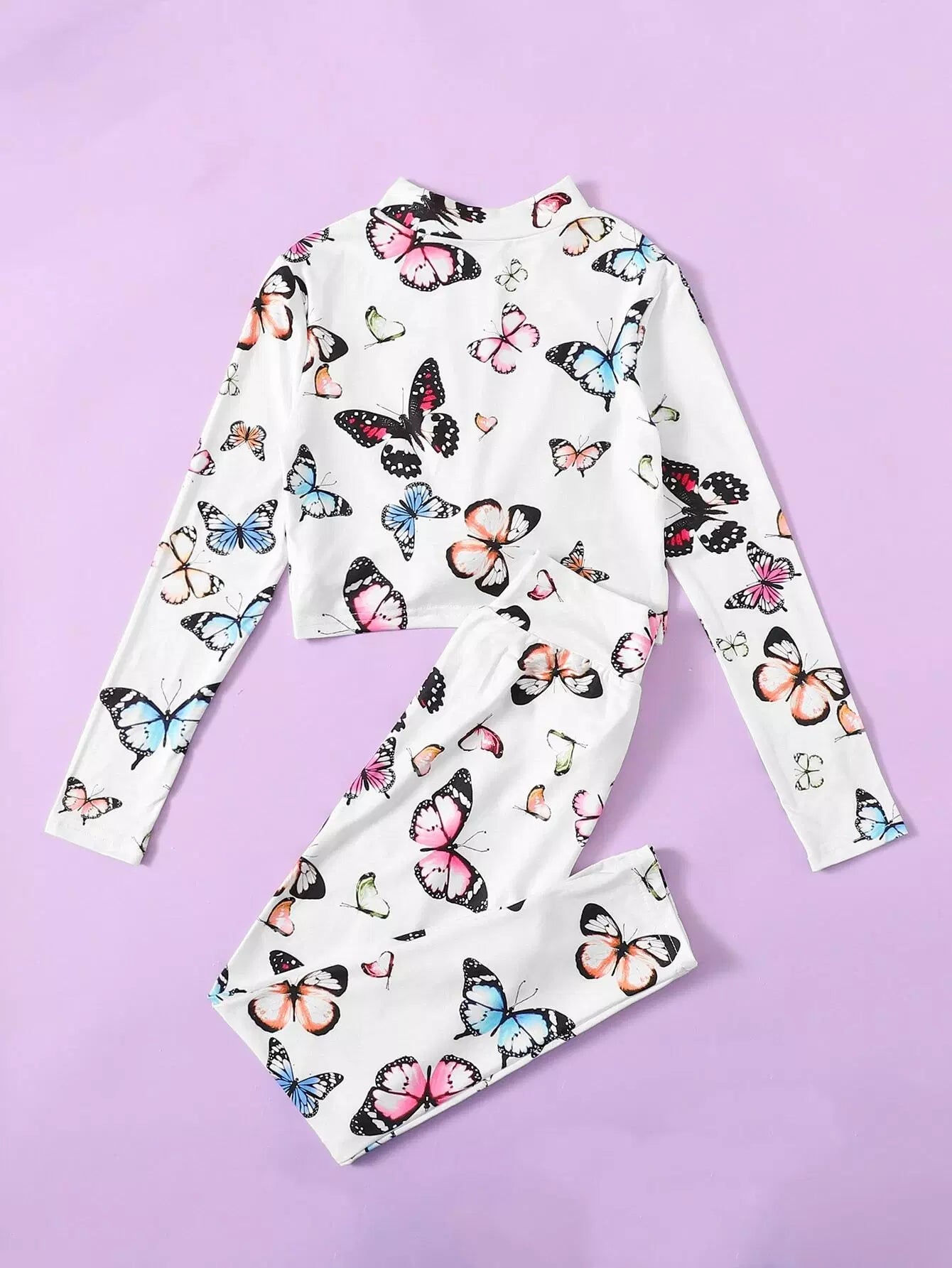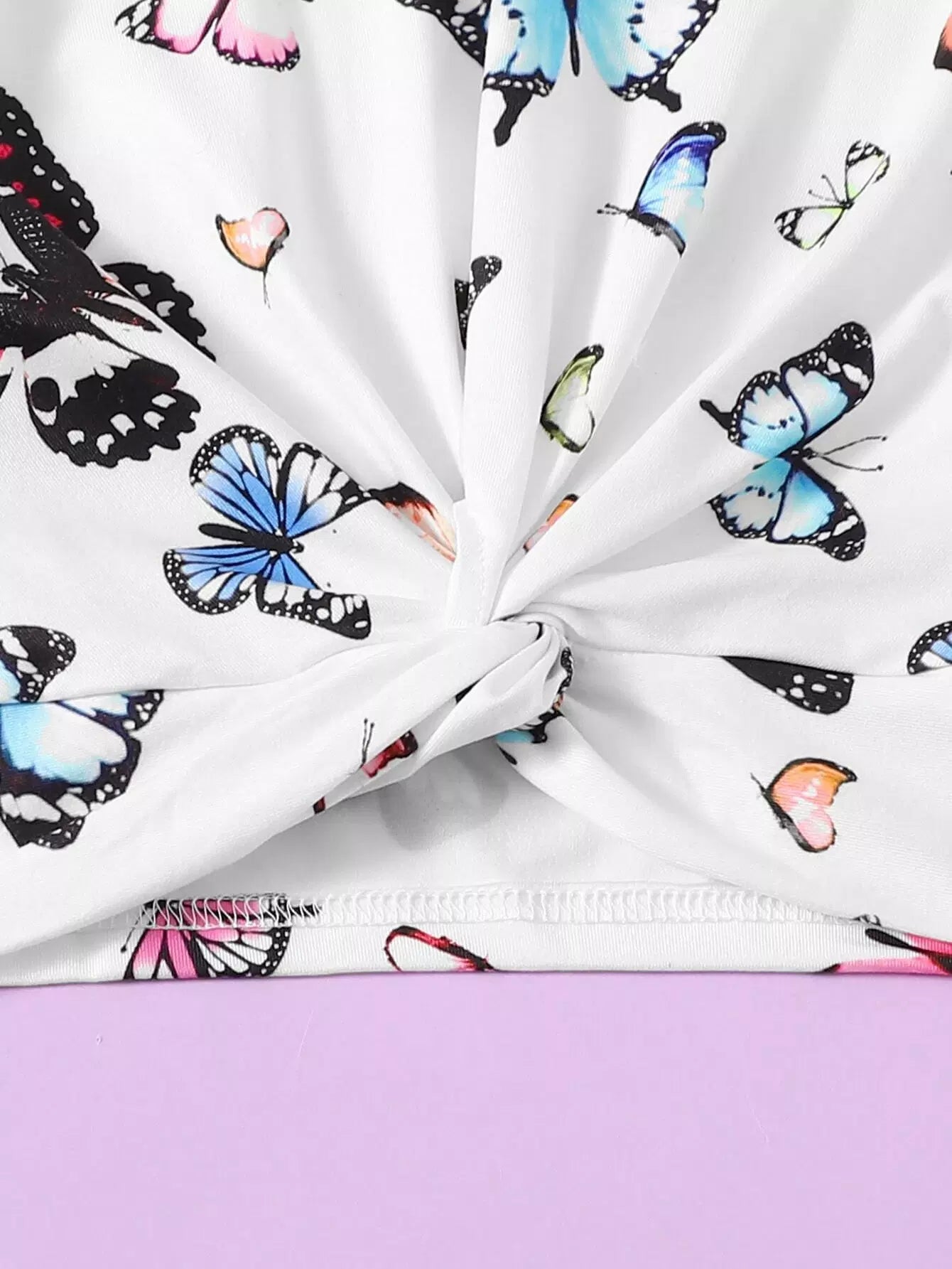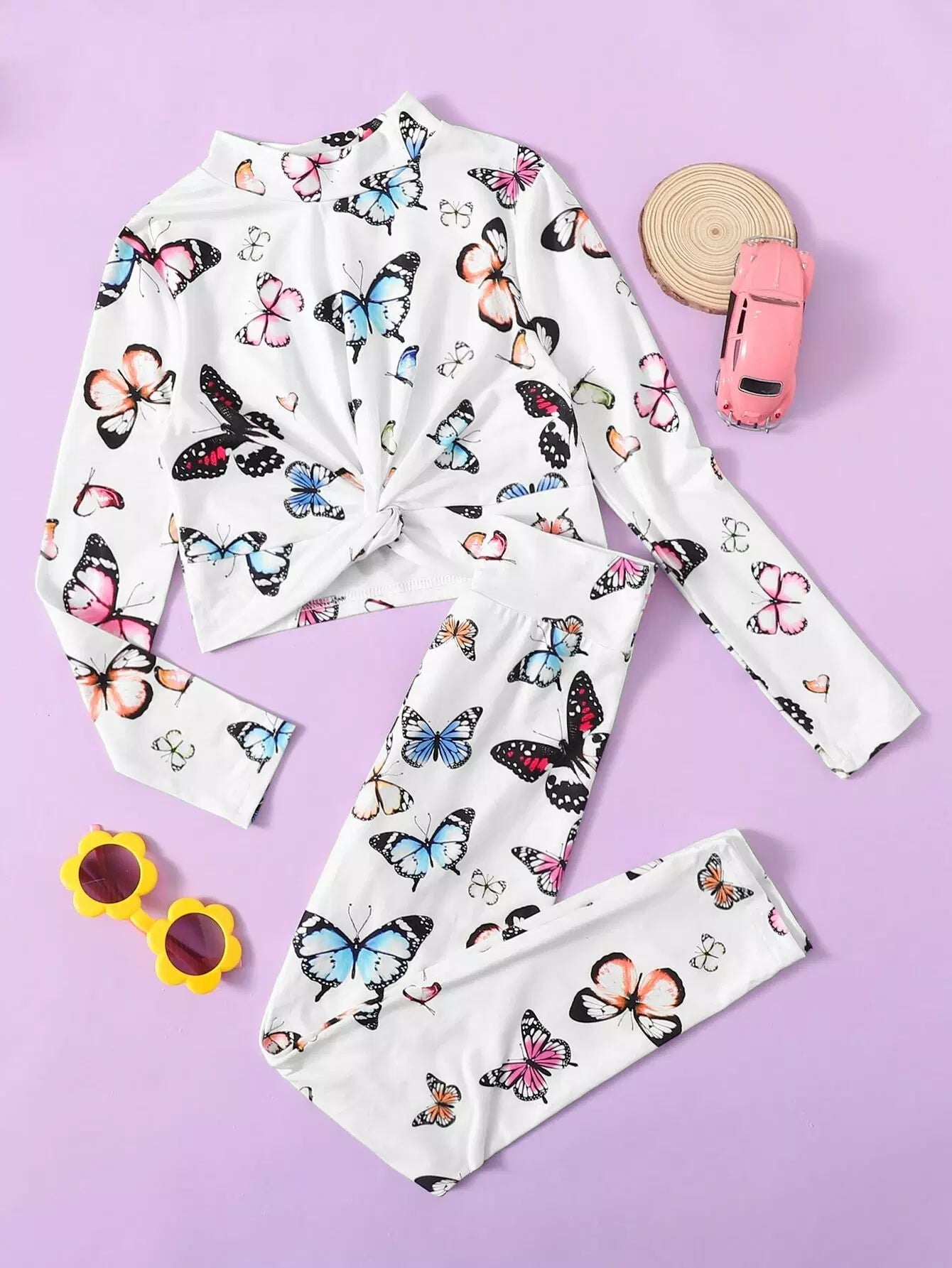 Kids - Girls Twist Front Butterfly Print Top & Leggings Set