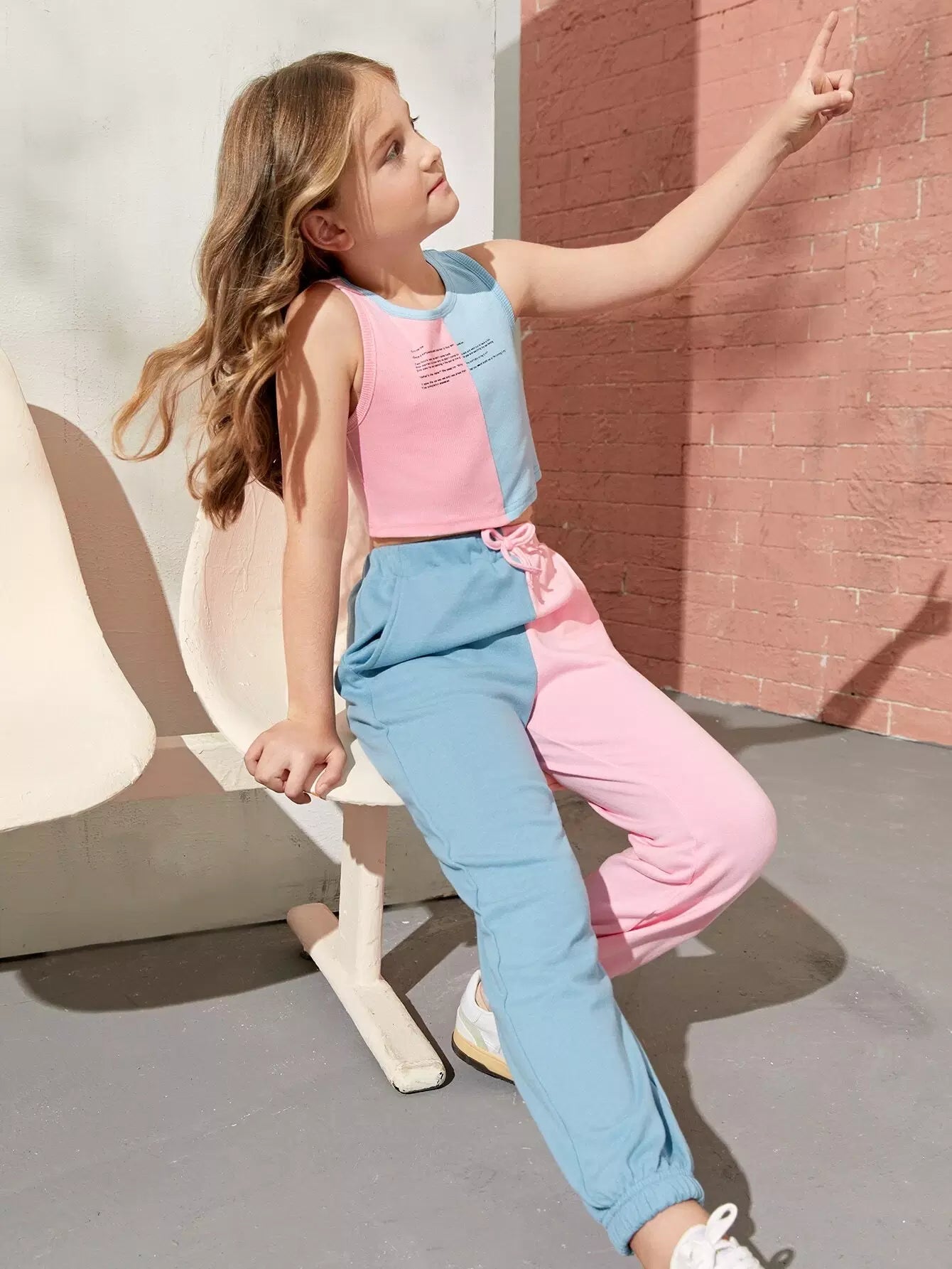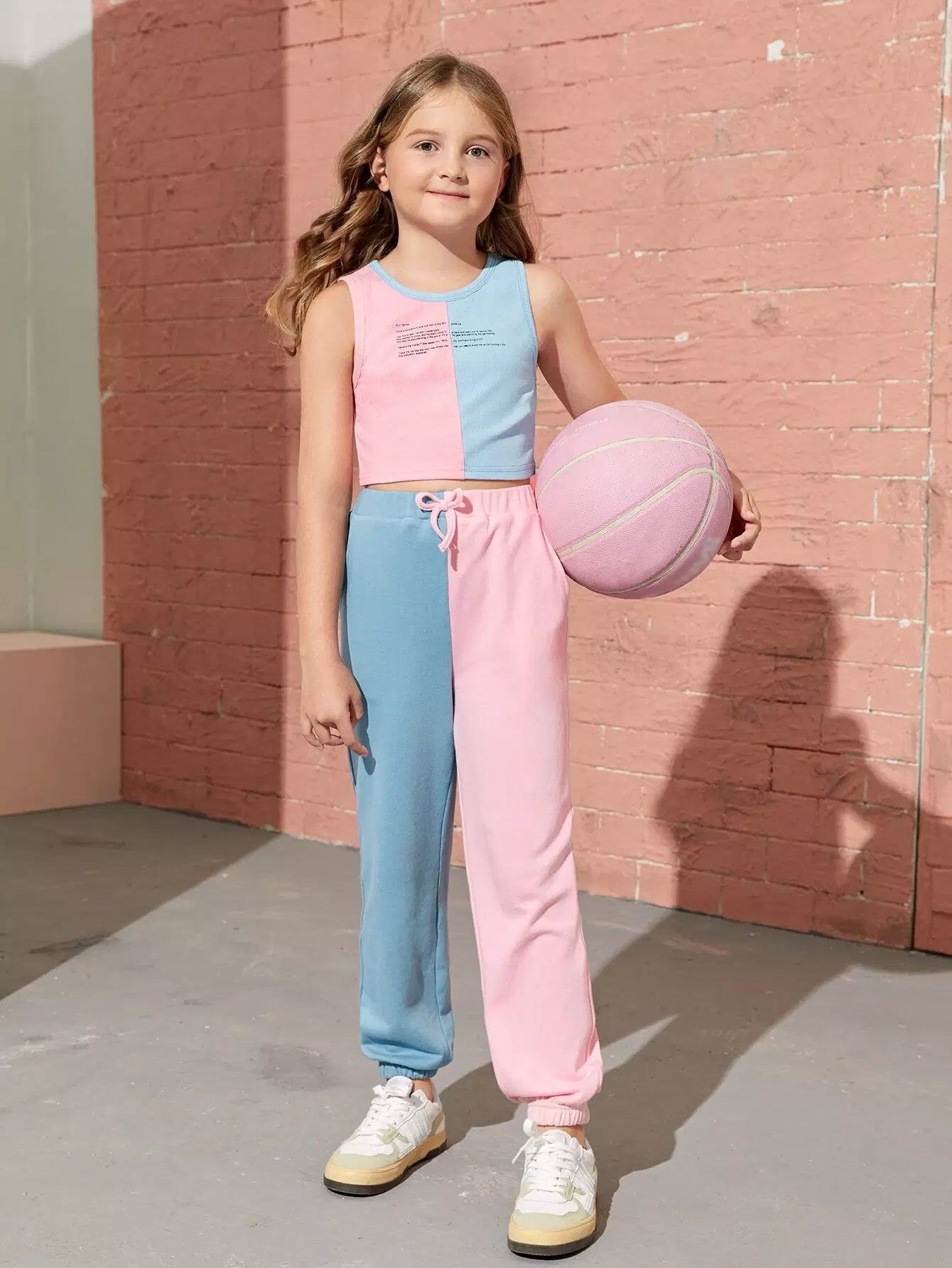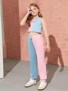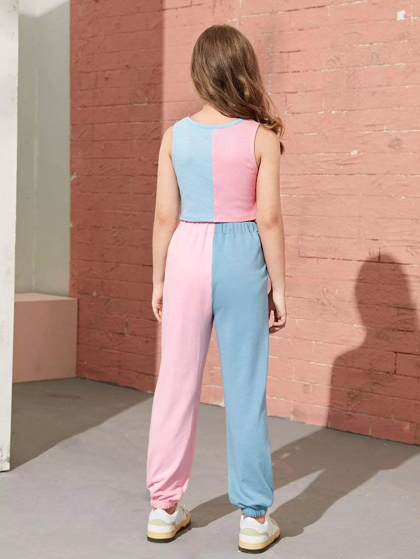 Girls Two Tone Tank Top & Knot Front Sweatpants