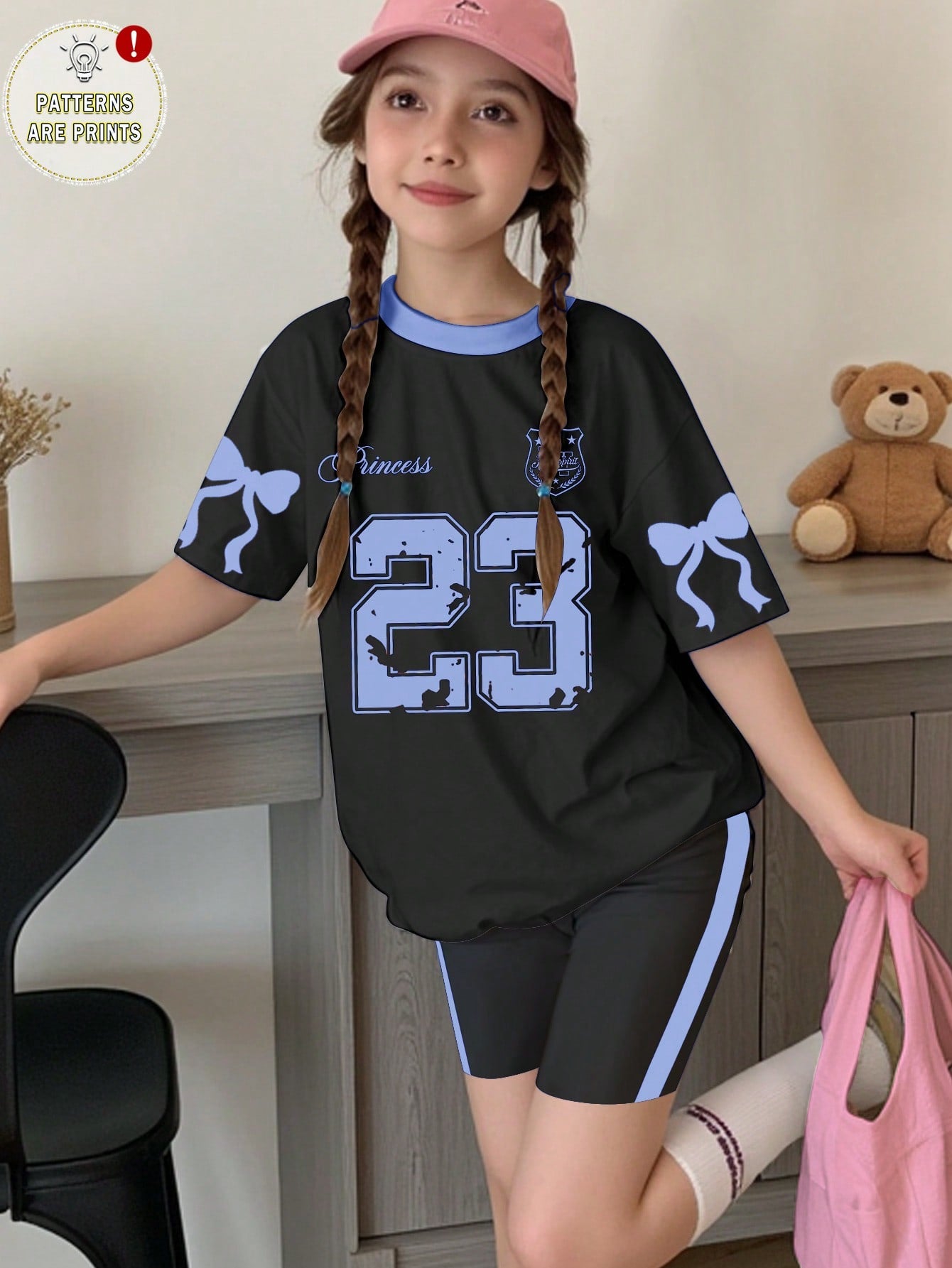 SHEIN Tween Girls' Casual Simple Short Sleeve T-Shirt And Shorts 2 Pieces Set