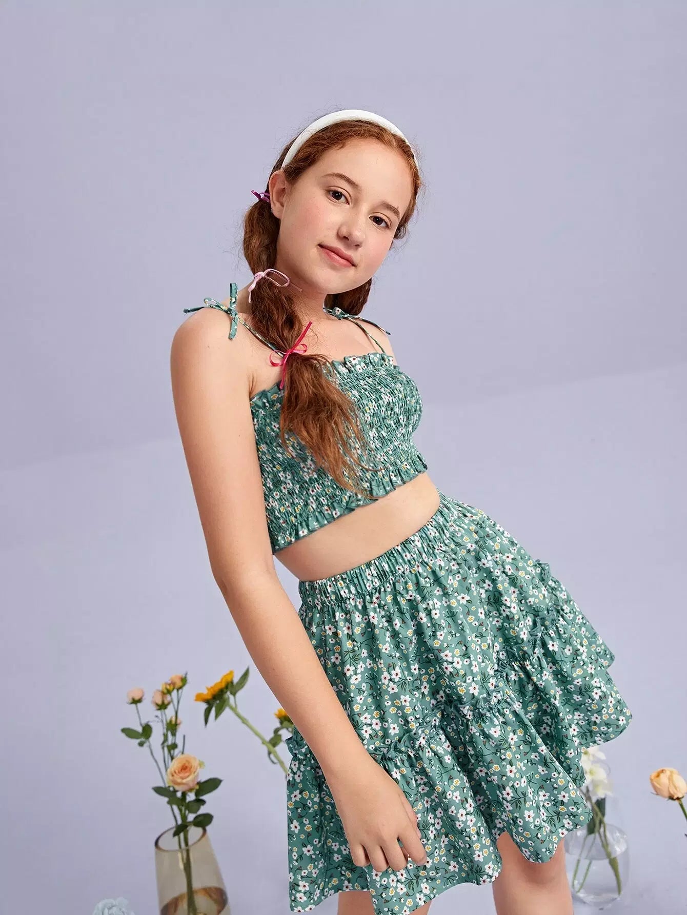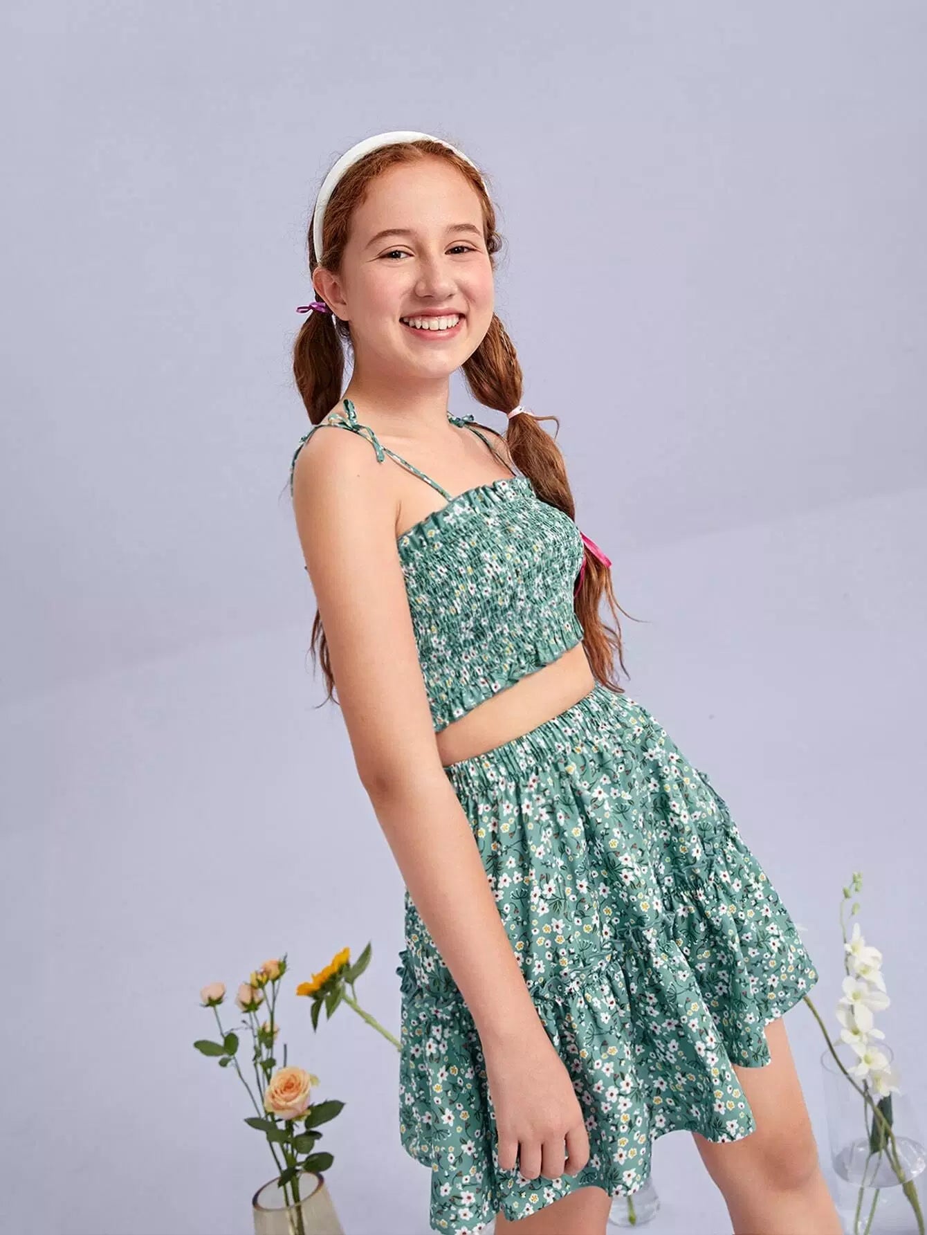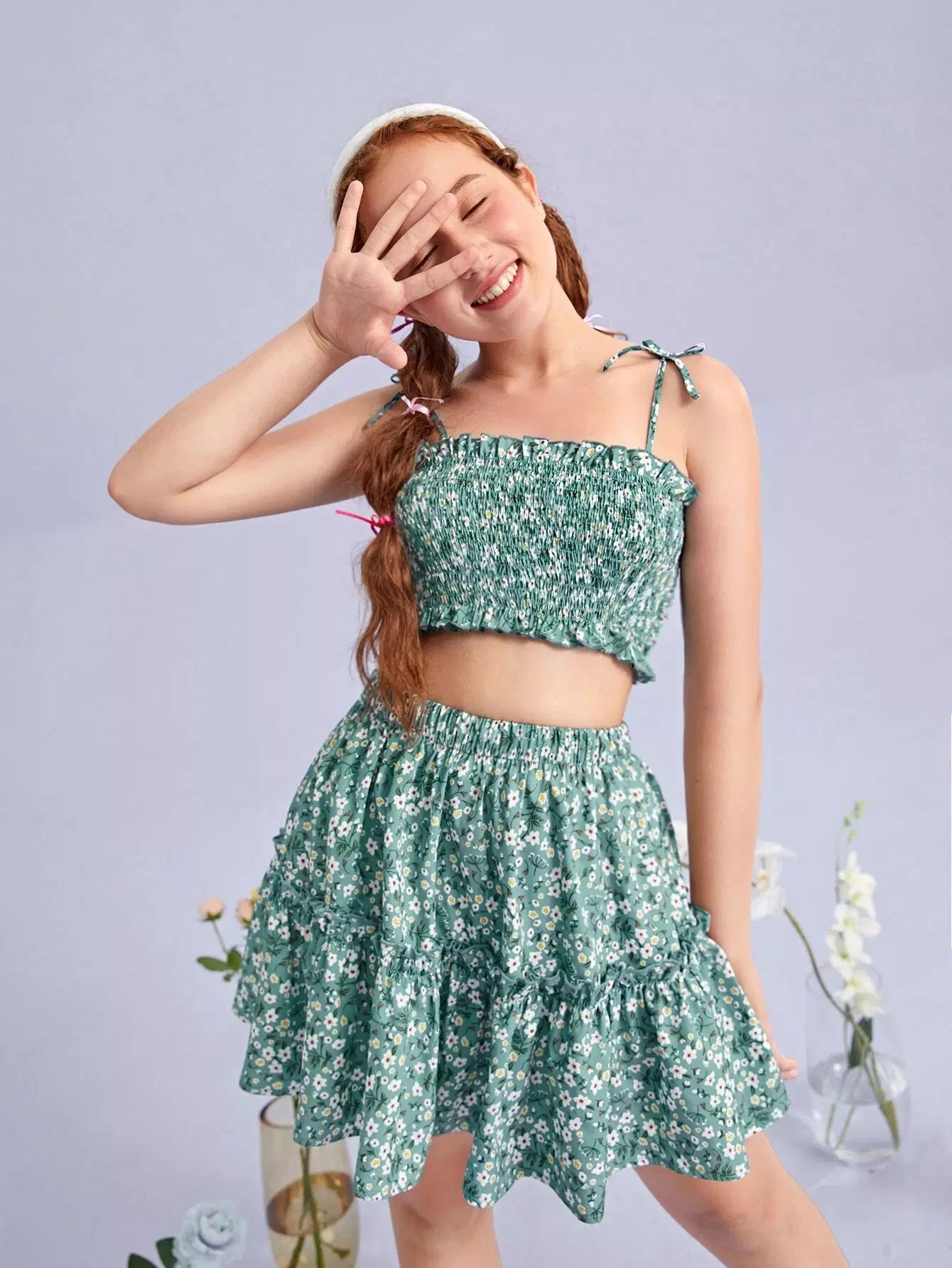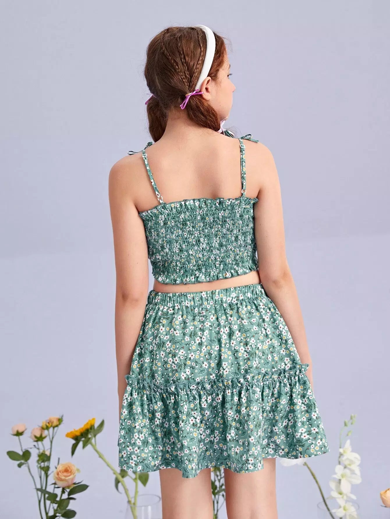 Teen Girls Shirred Ditsy Floral Cami Top & Skirt Set
