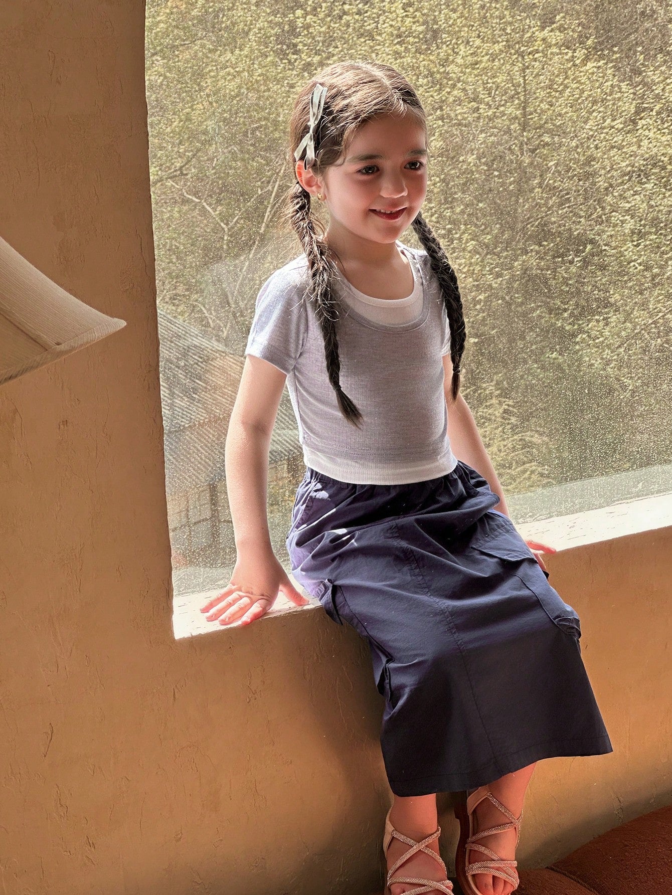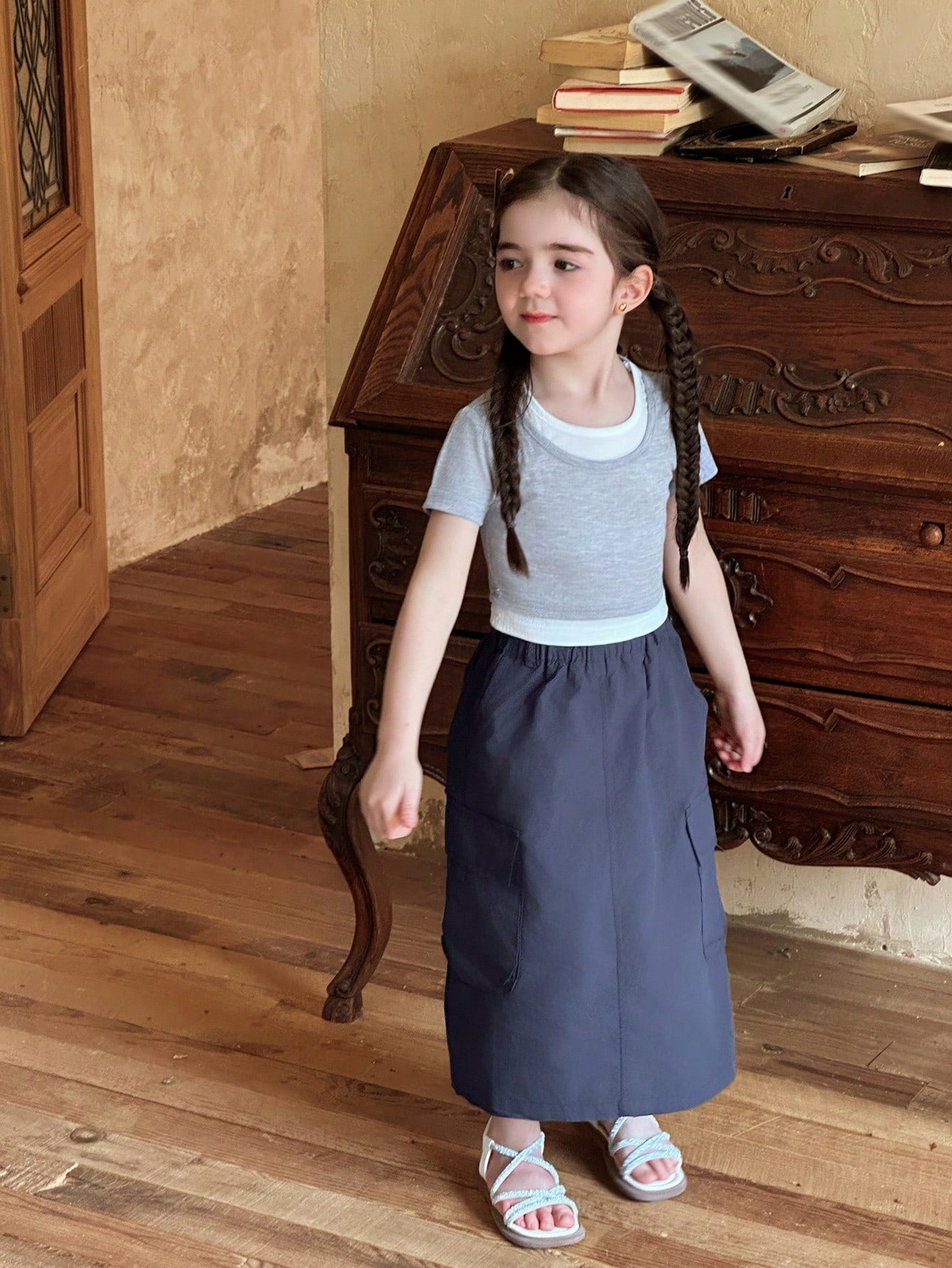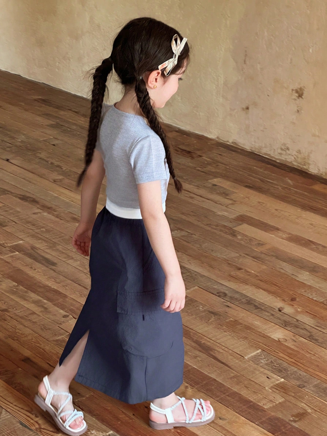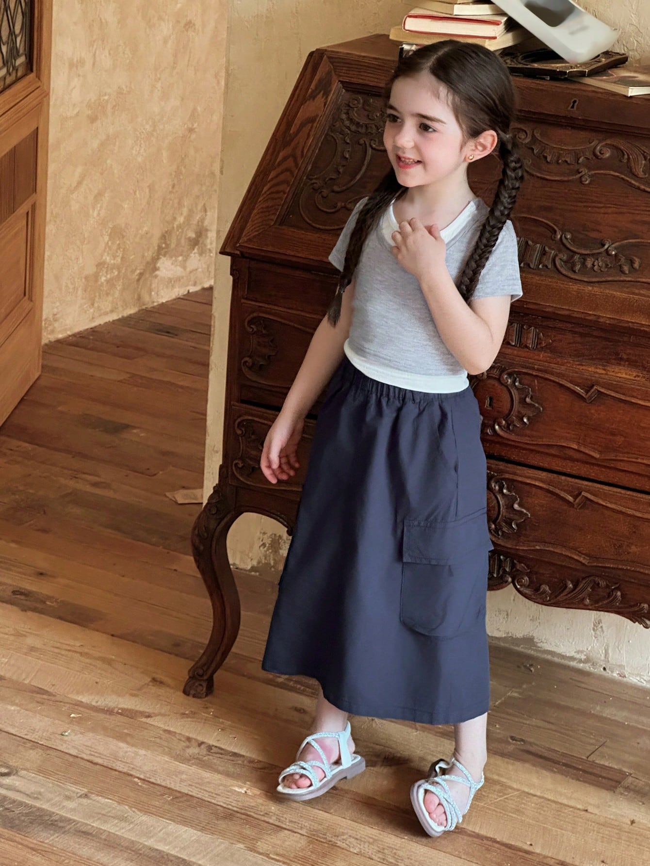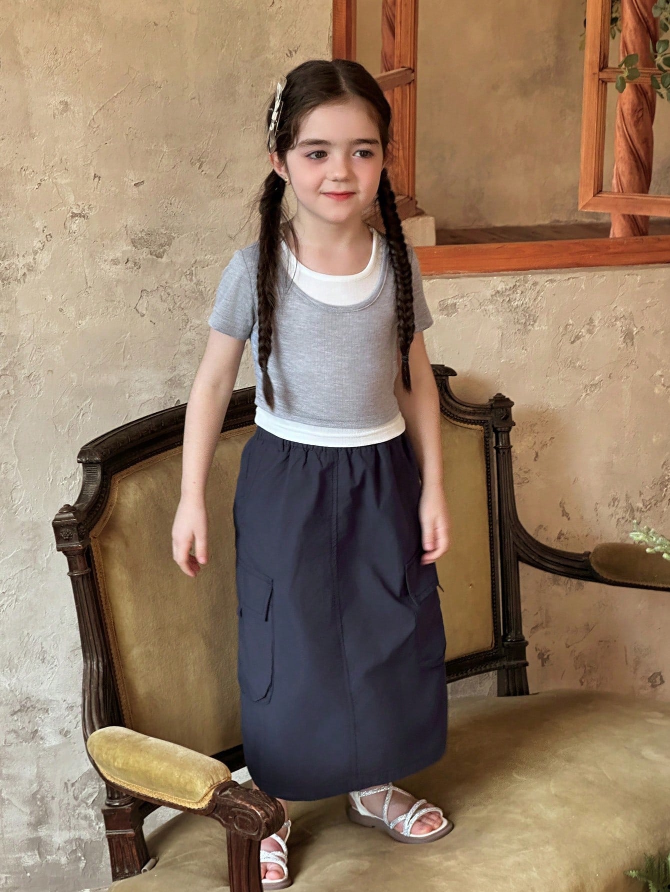 DAZY 2pcs Casual Set For Young Girls: Short Sleeve T-Shirt & Cargo Skirt