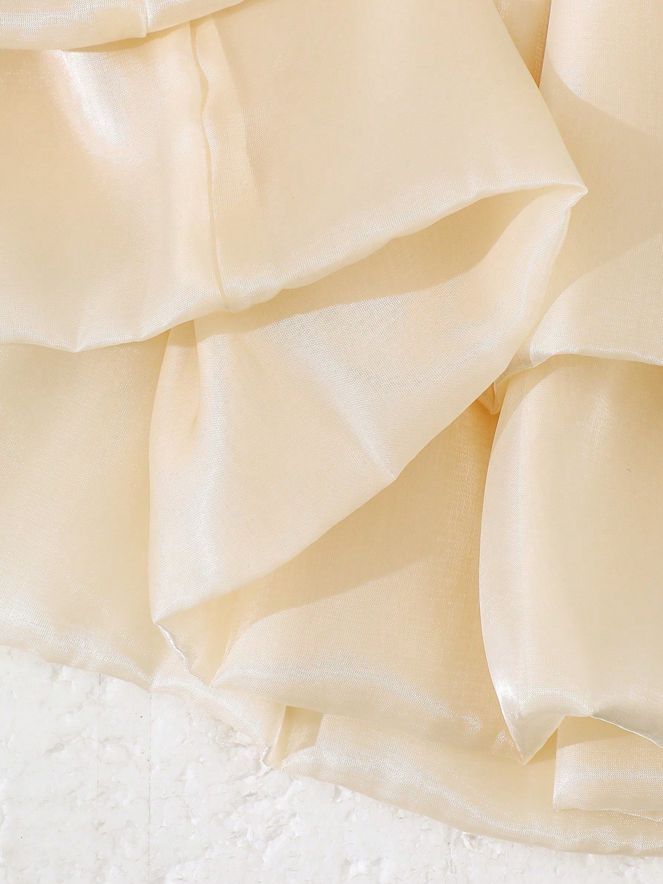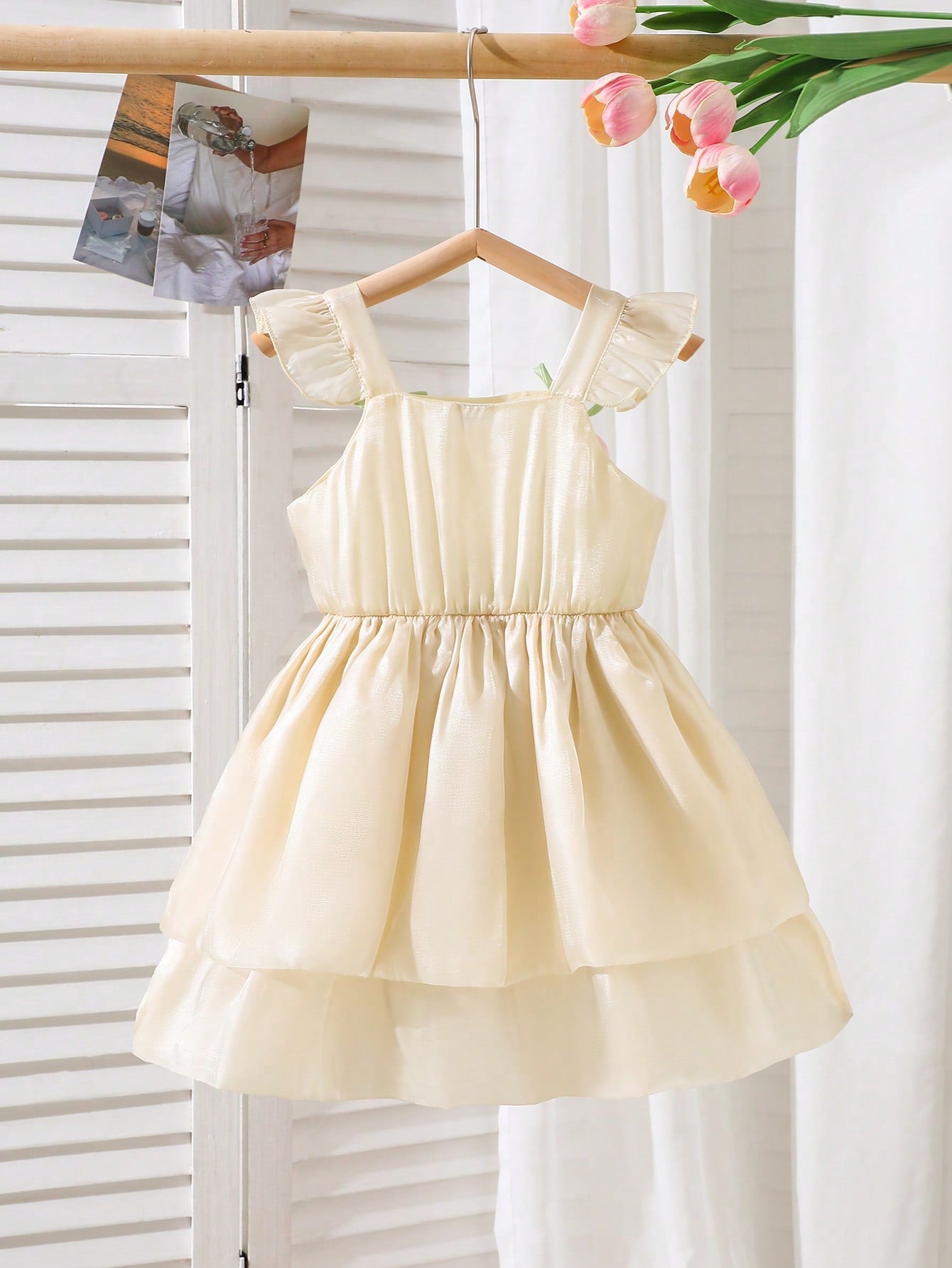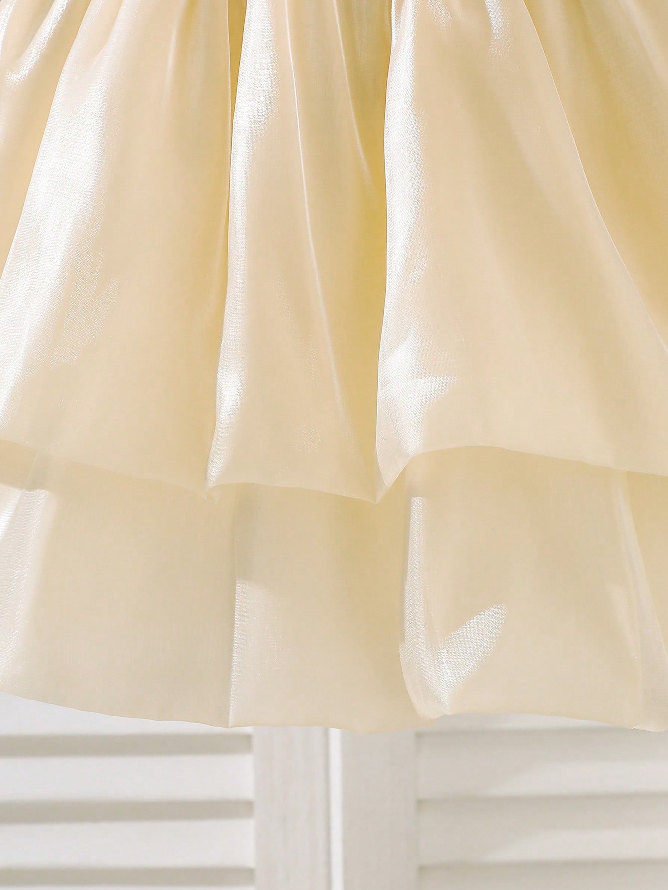 kids SHEIN Young Girl Pink Tulip 3D Floral Decor Ruffle Hem Dress