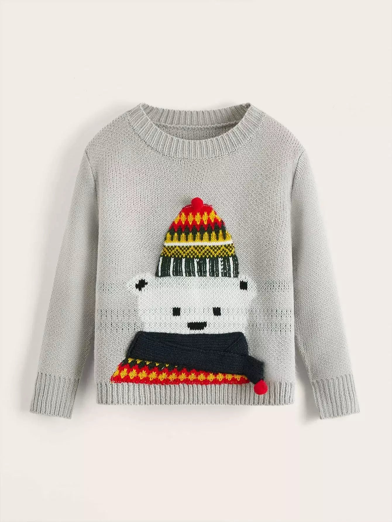 Toddler Boys Bear Pattern 3D Patched Sweater