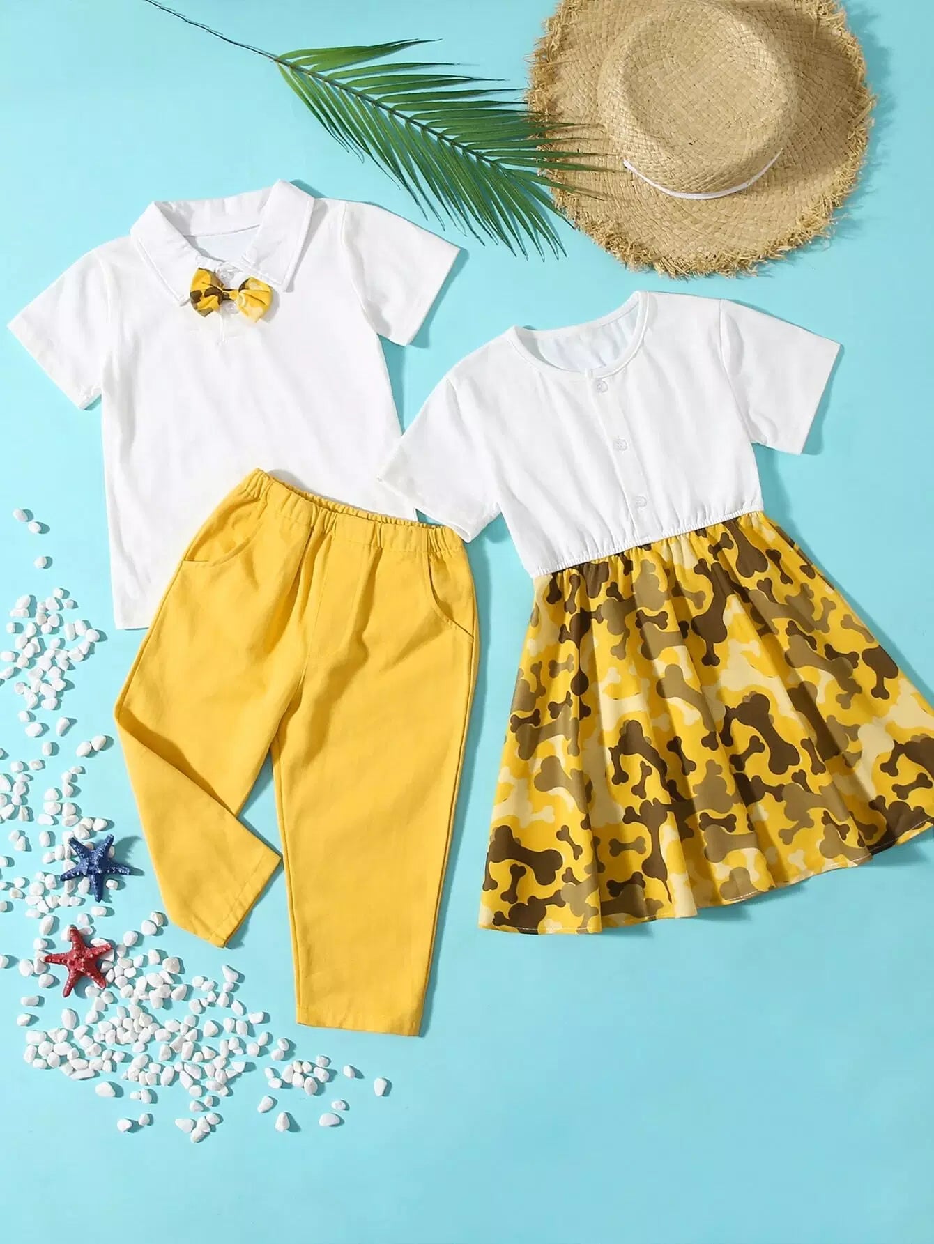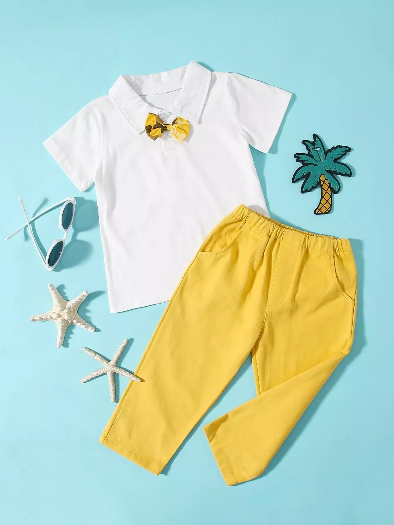 Toddler Boys Bow Front Polo 1 Shirt & 1 Pants