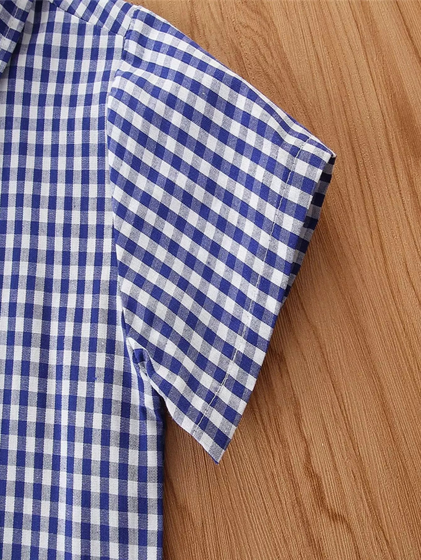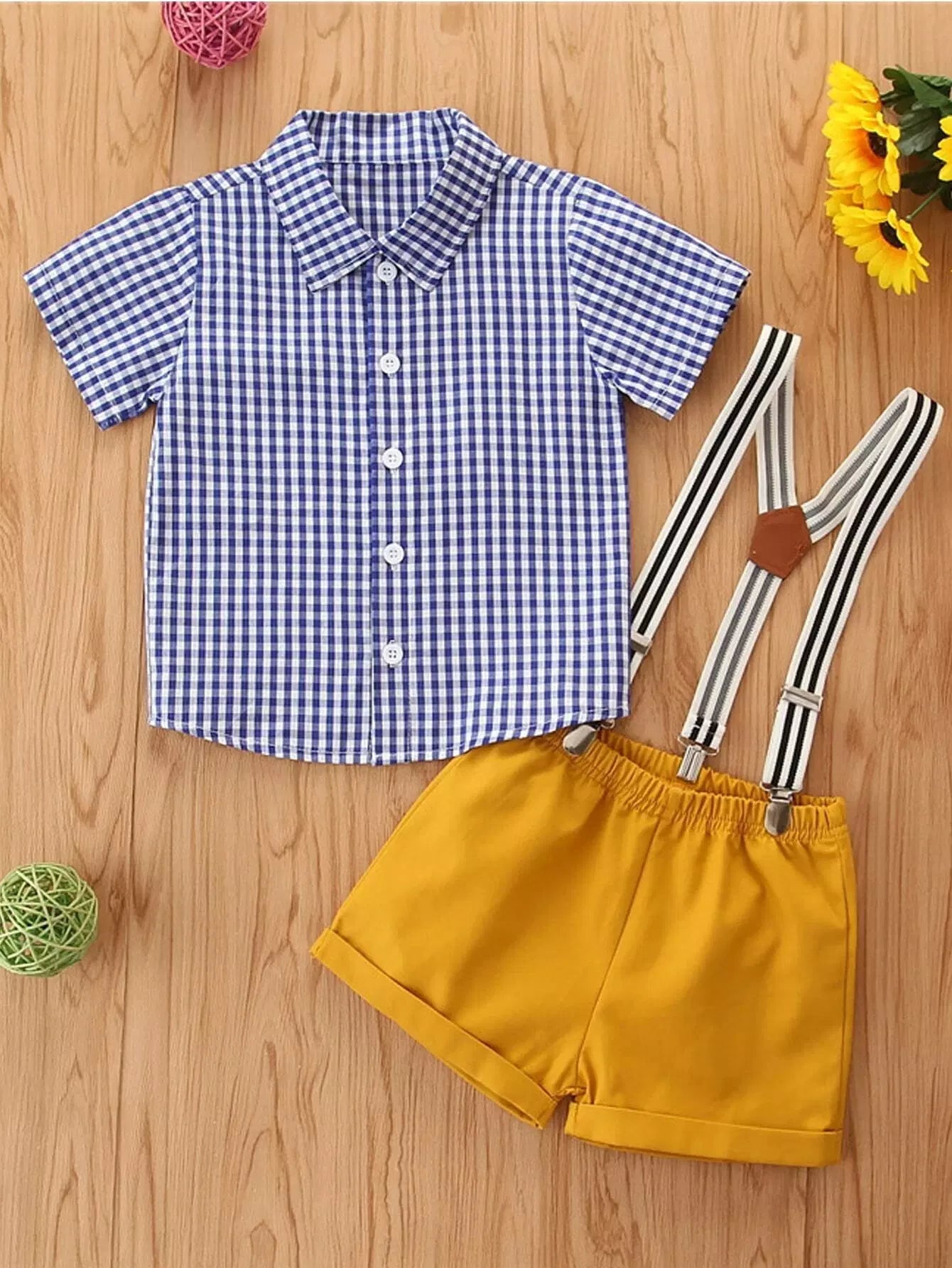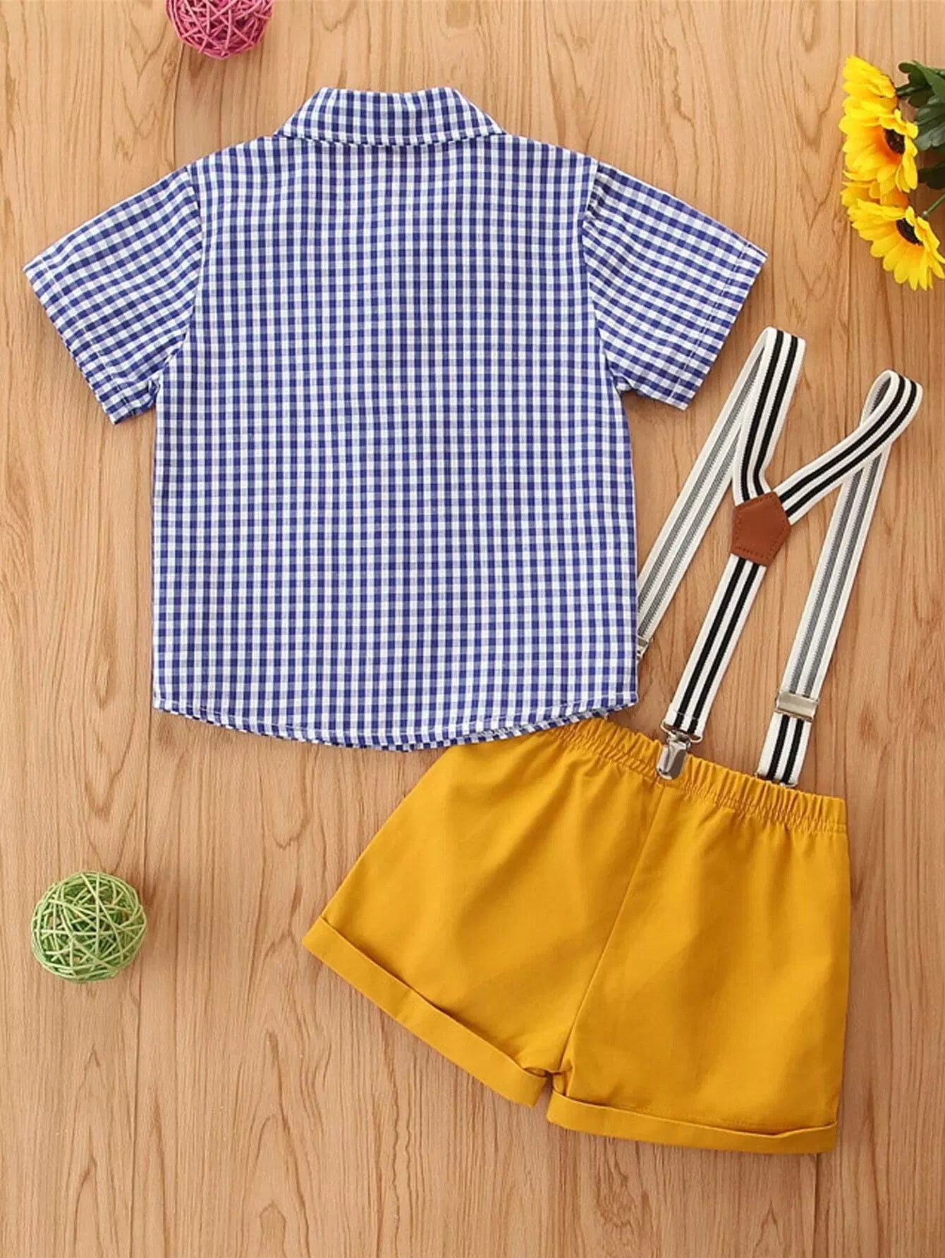 Toddler Boys Gingham Print Shirt With Suspender Shorts