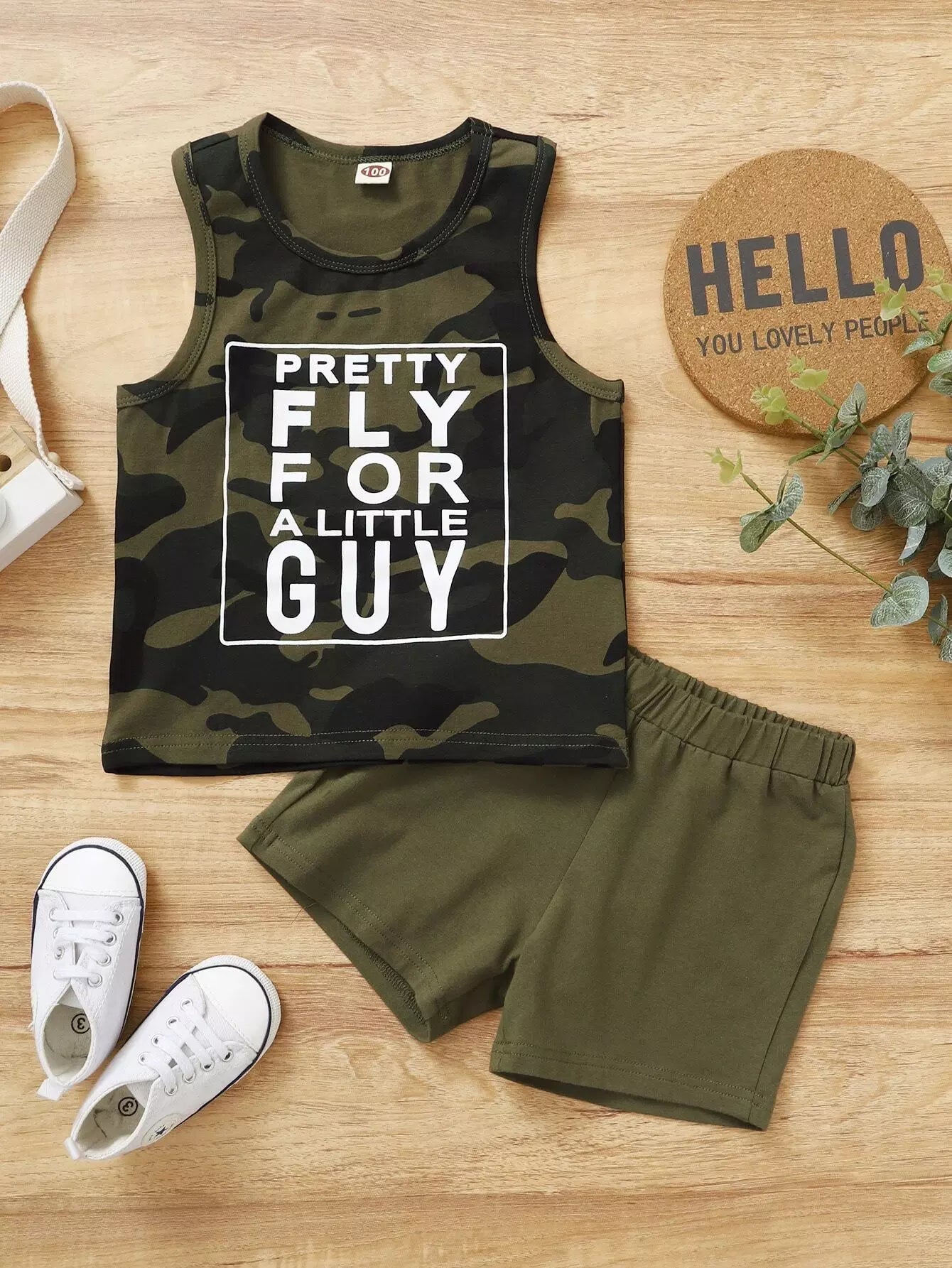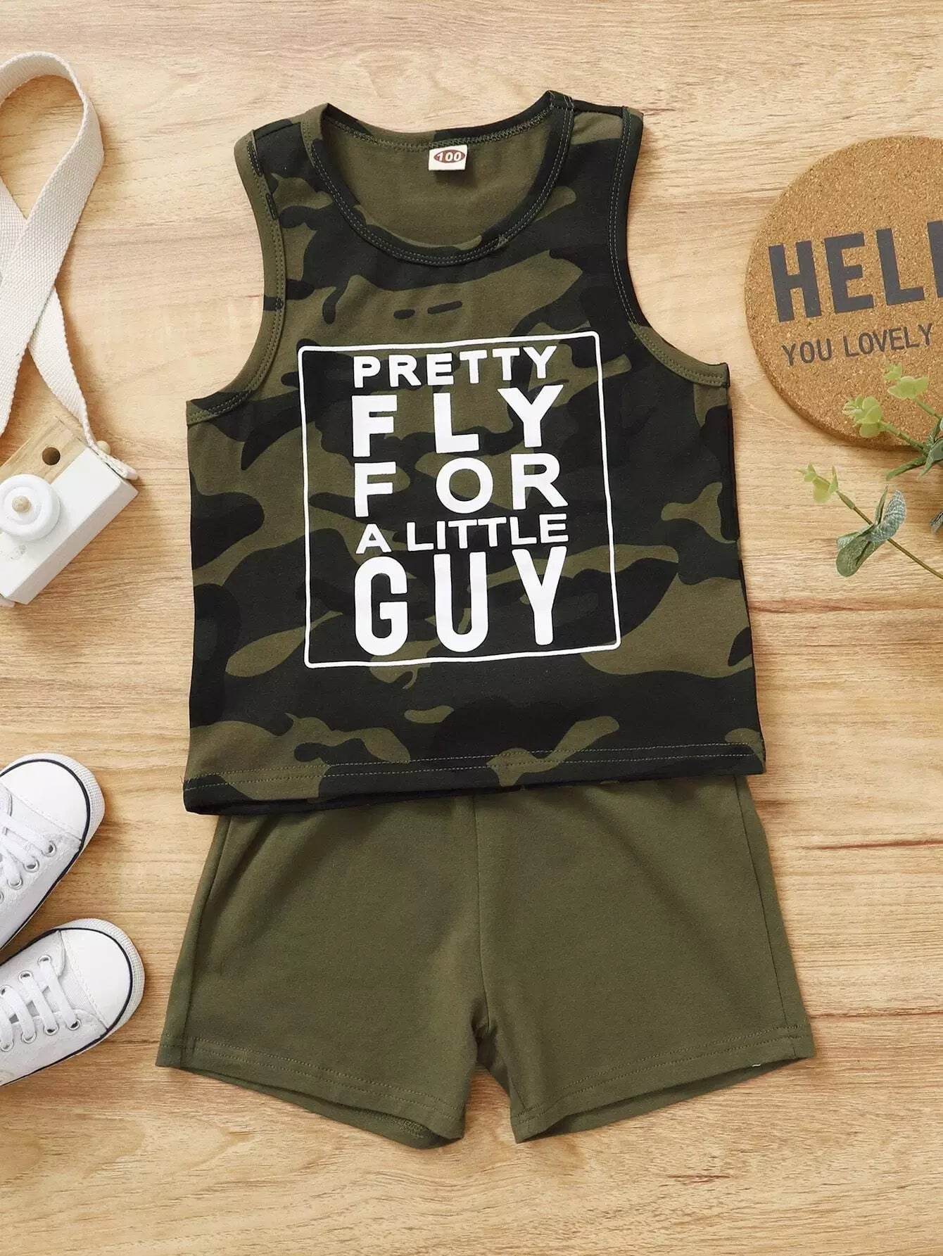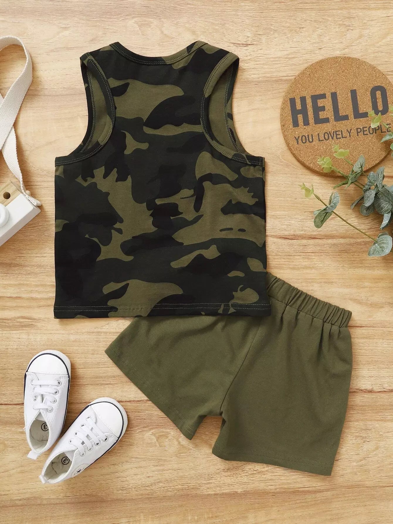Toddler Boys Slogan And Camo Print Tank Top & Shorts