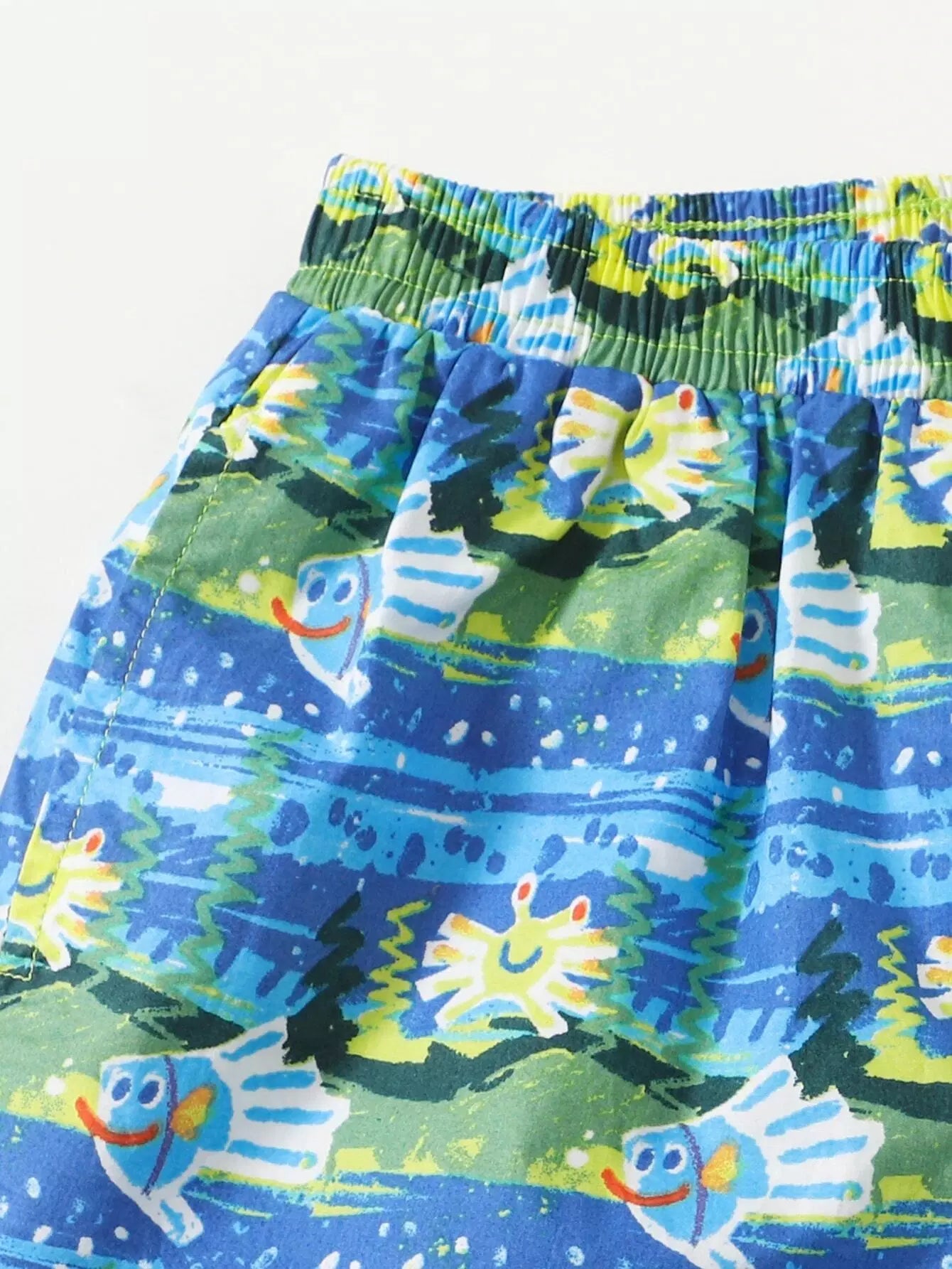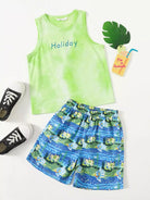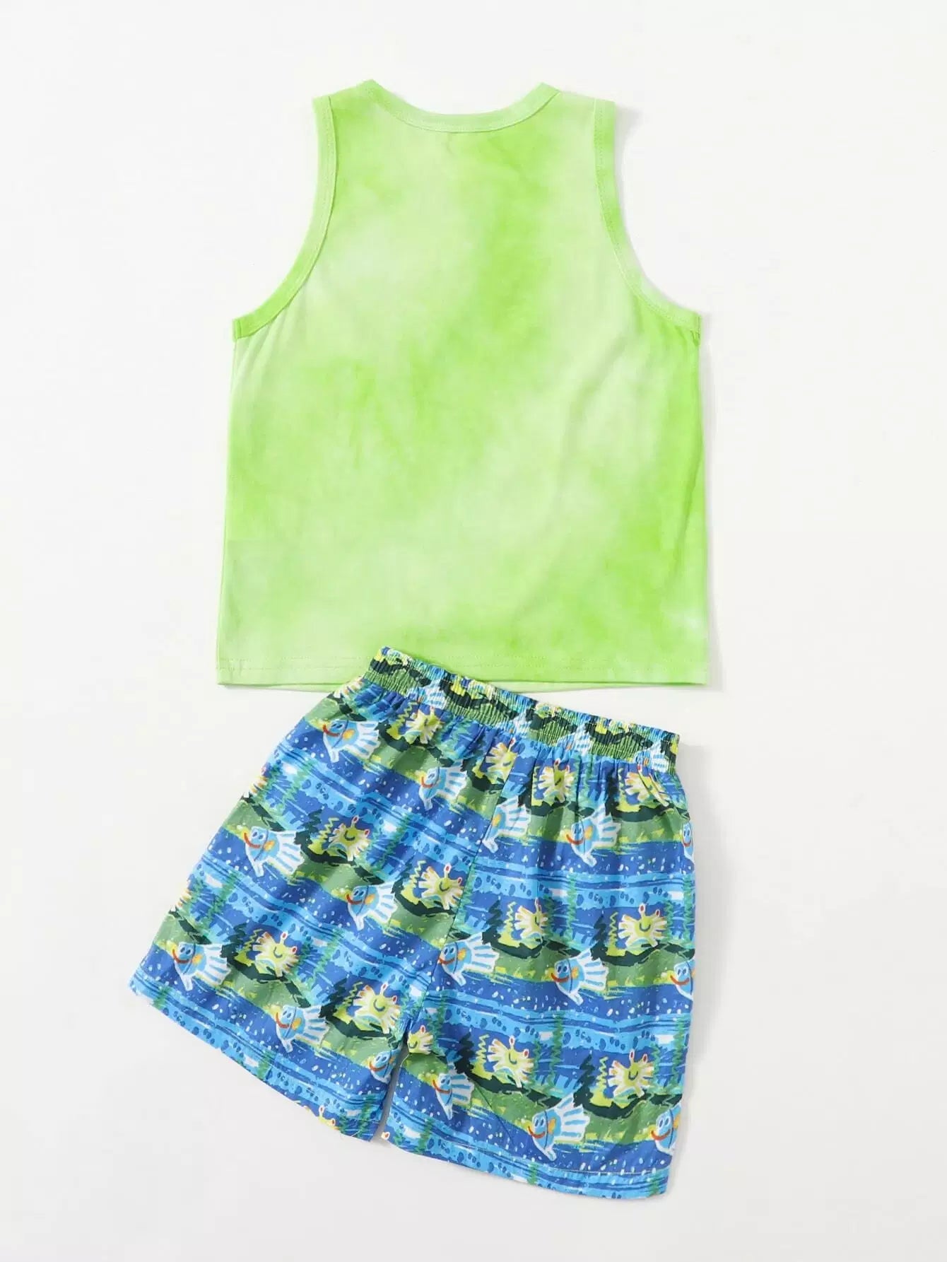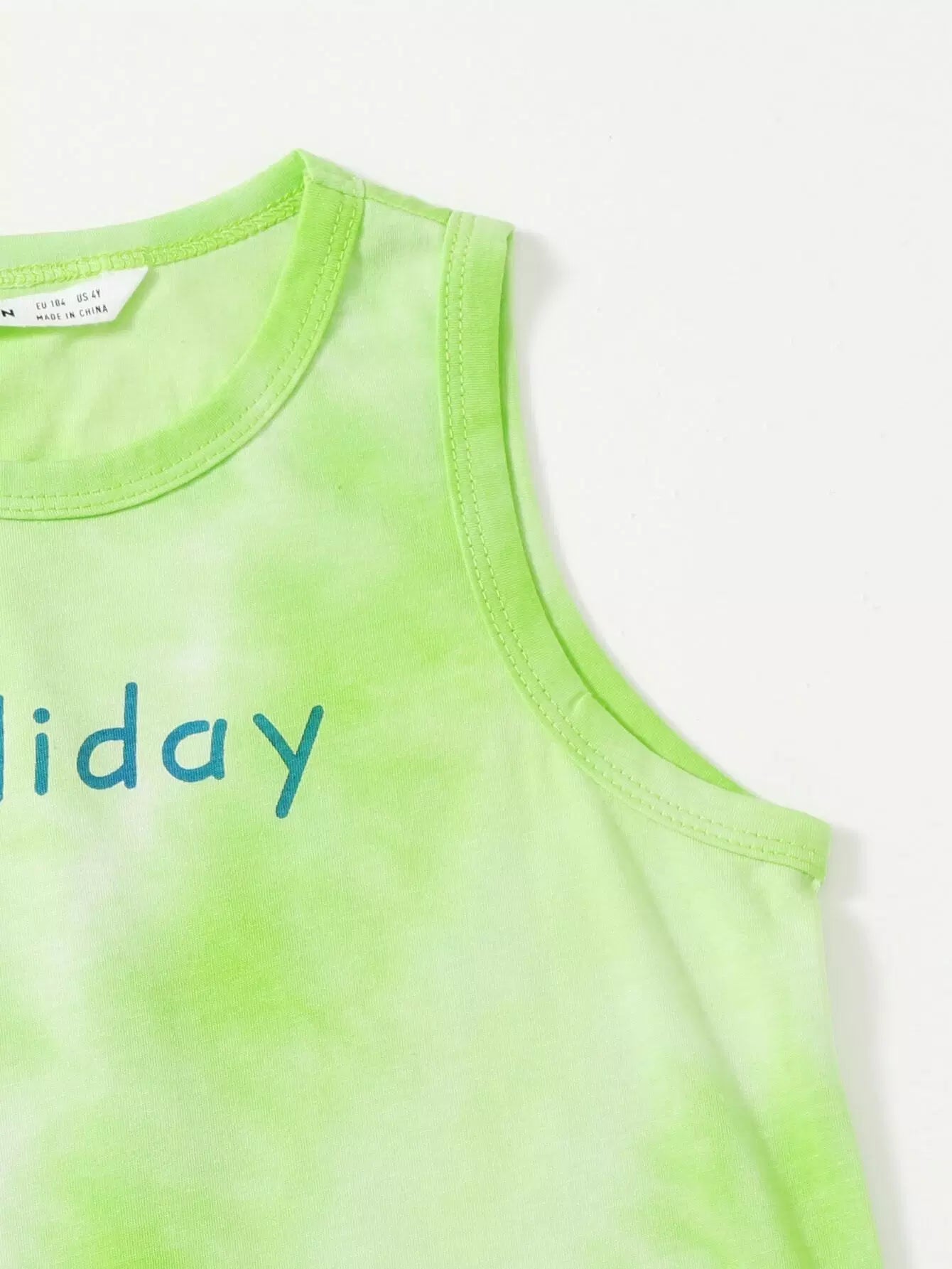 Toddler Boys Tie Dye Tank Top & Fish Print Shorts Set