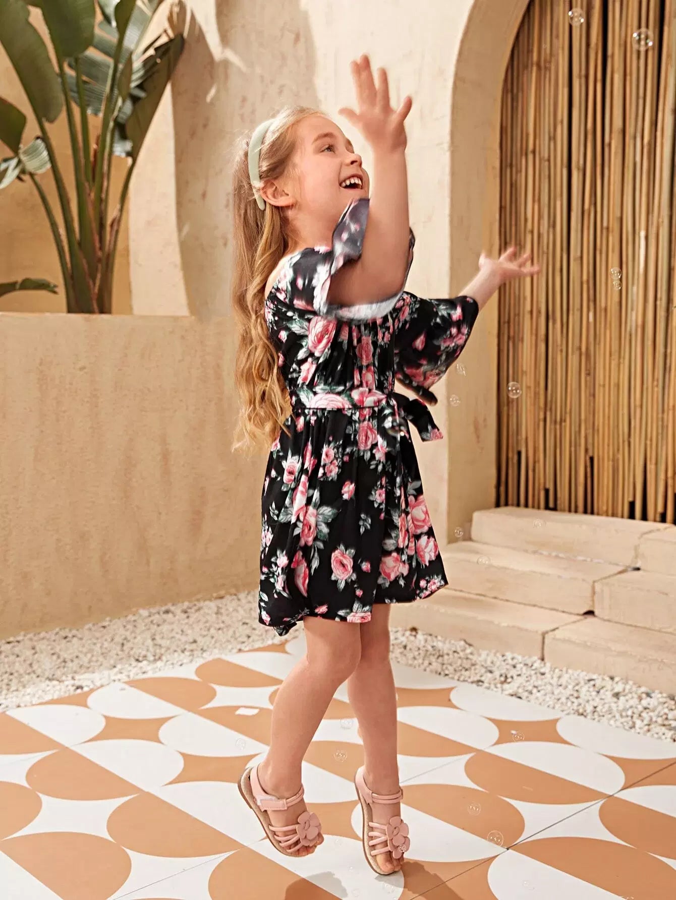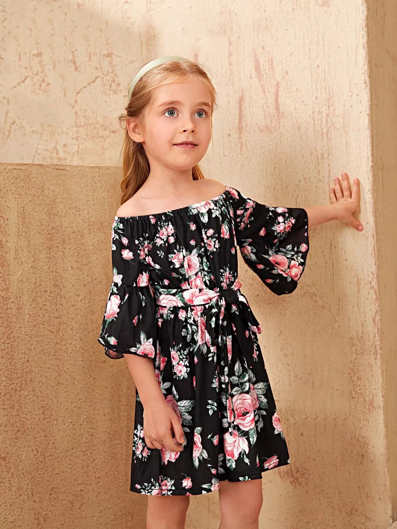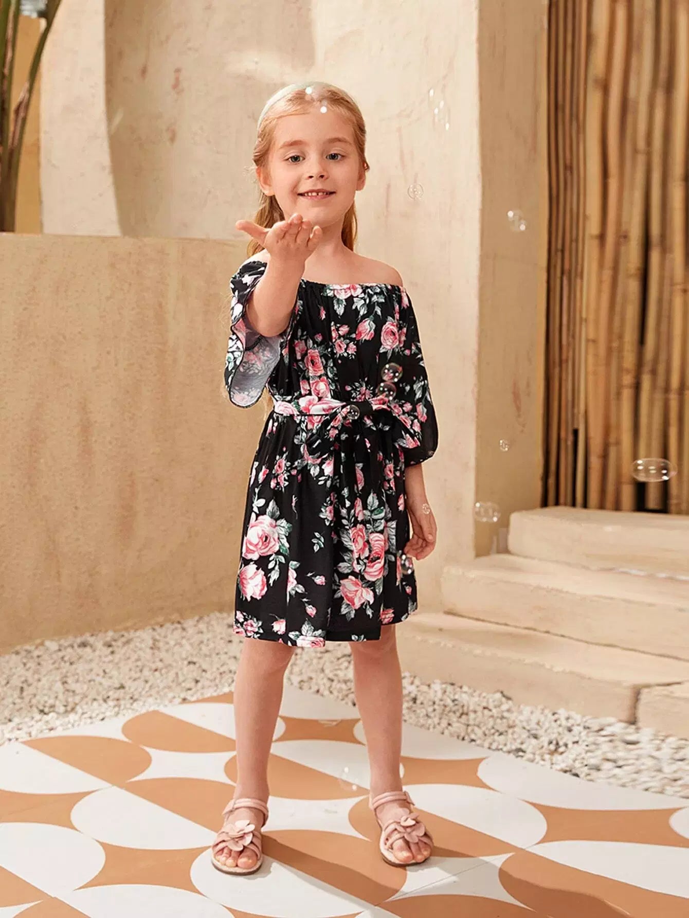 Toddler Girls 1pc Floral Print Bardot Dress Without Belt