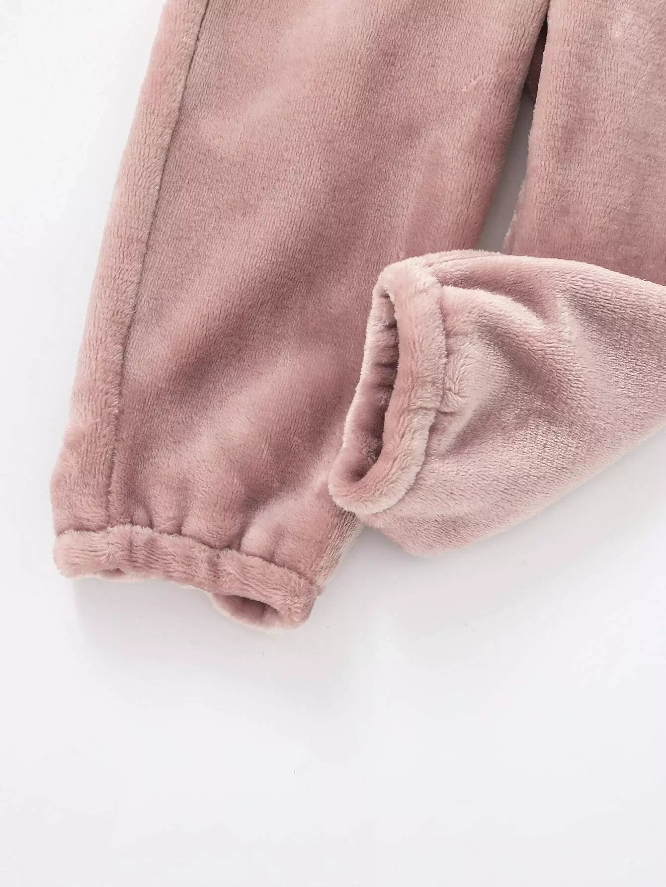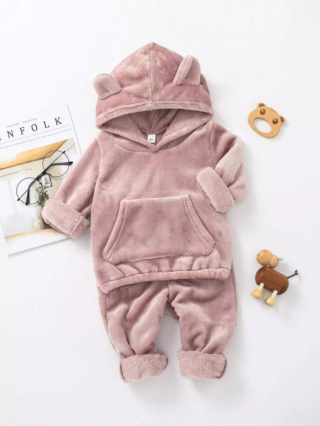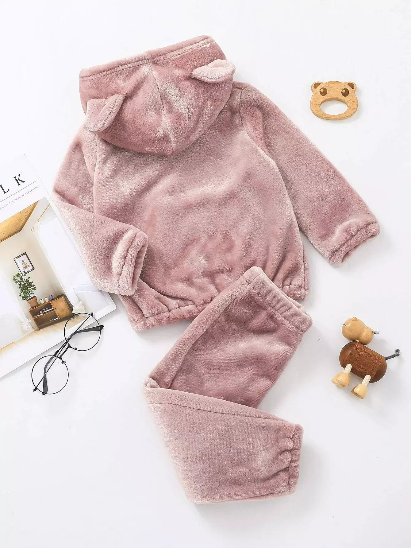 Toddler Girls 3D Ears Design Flannel Hoodie & Pants
