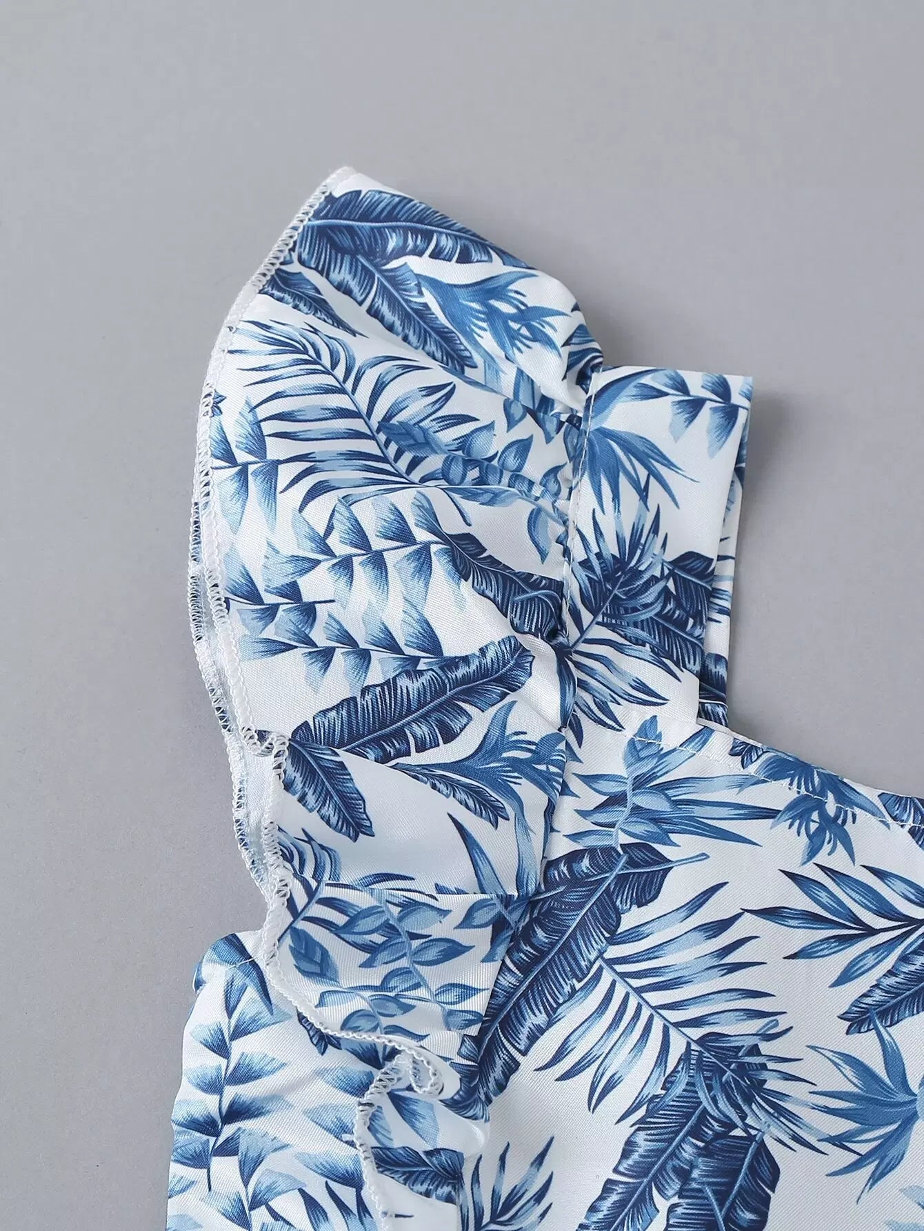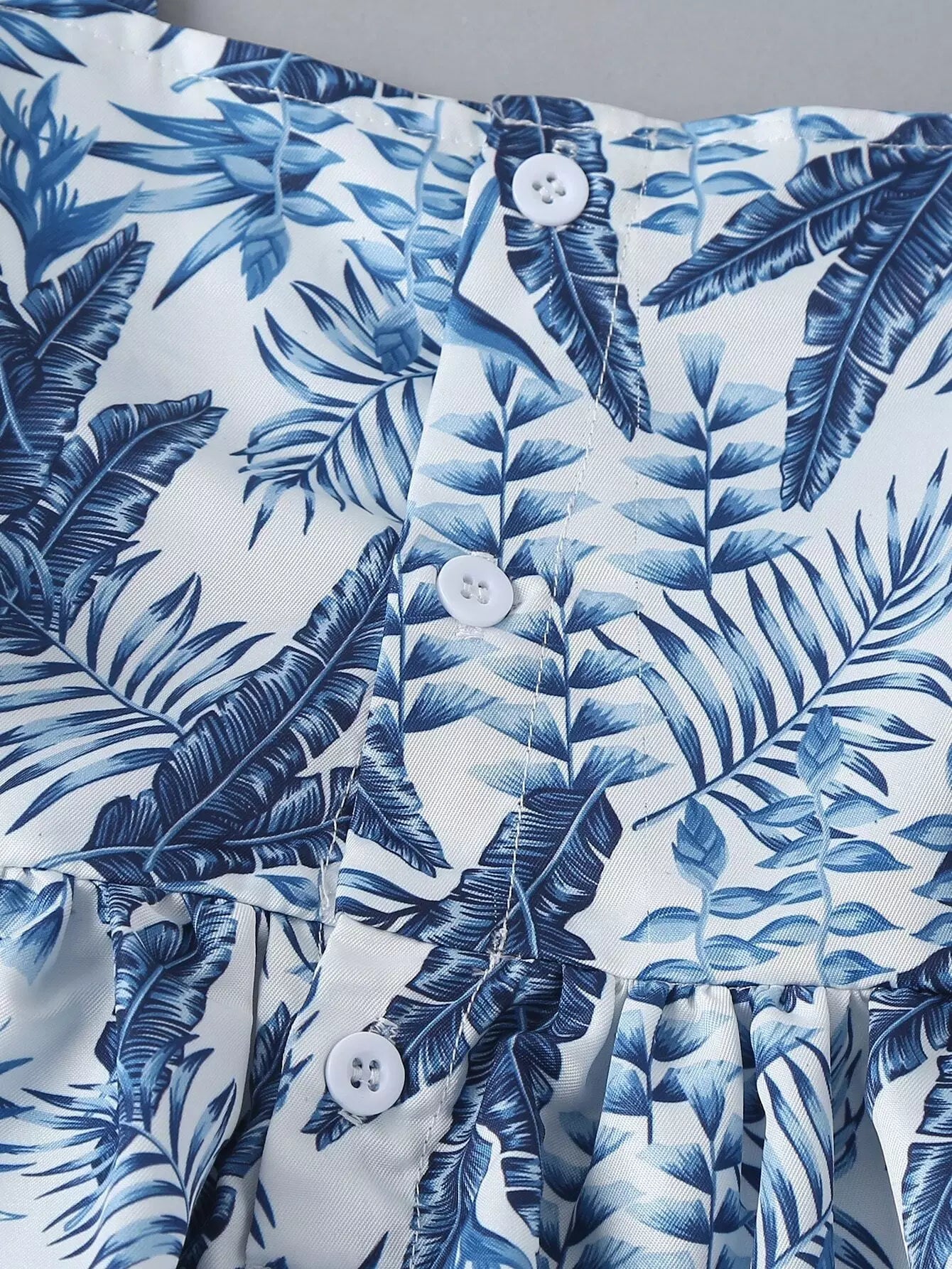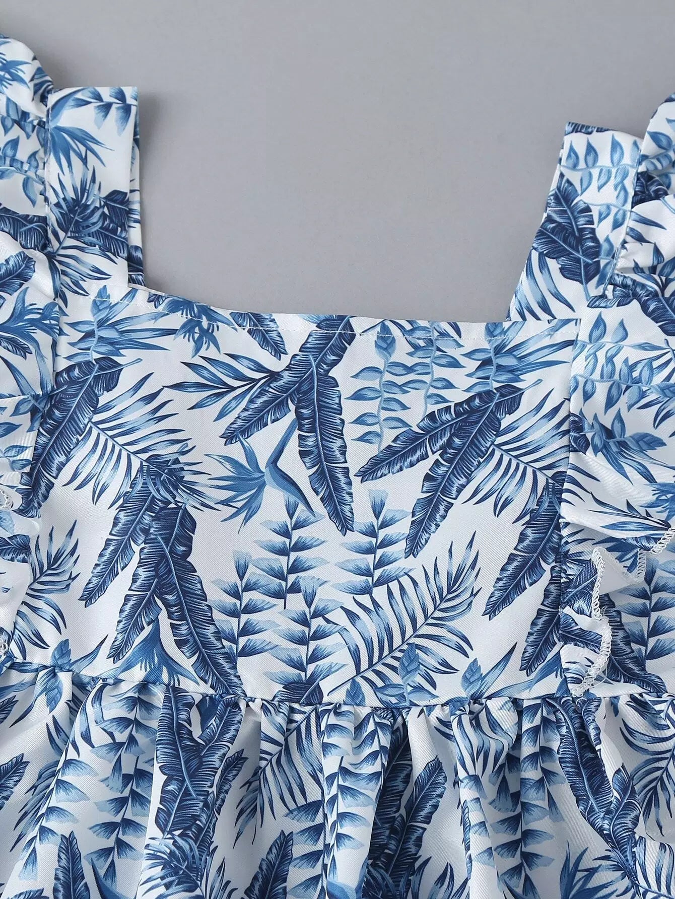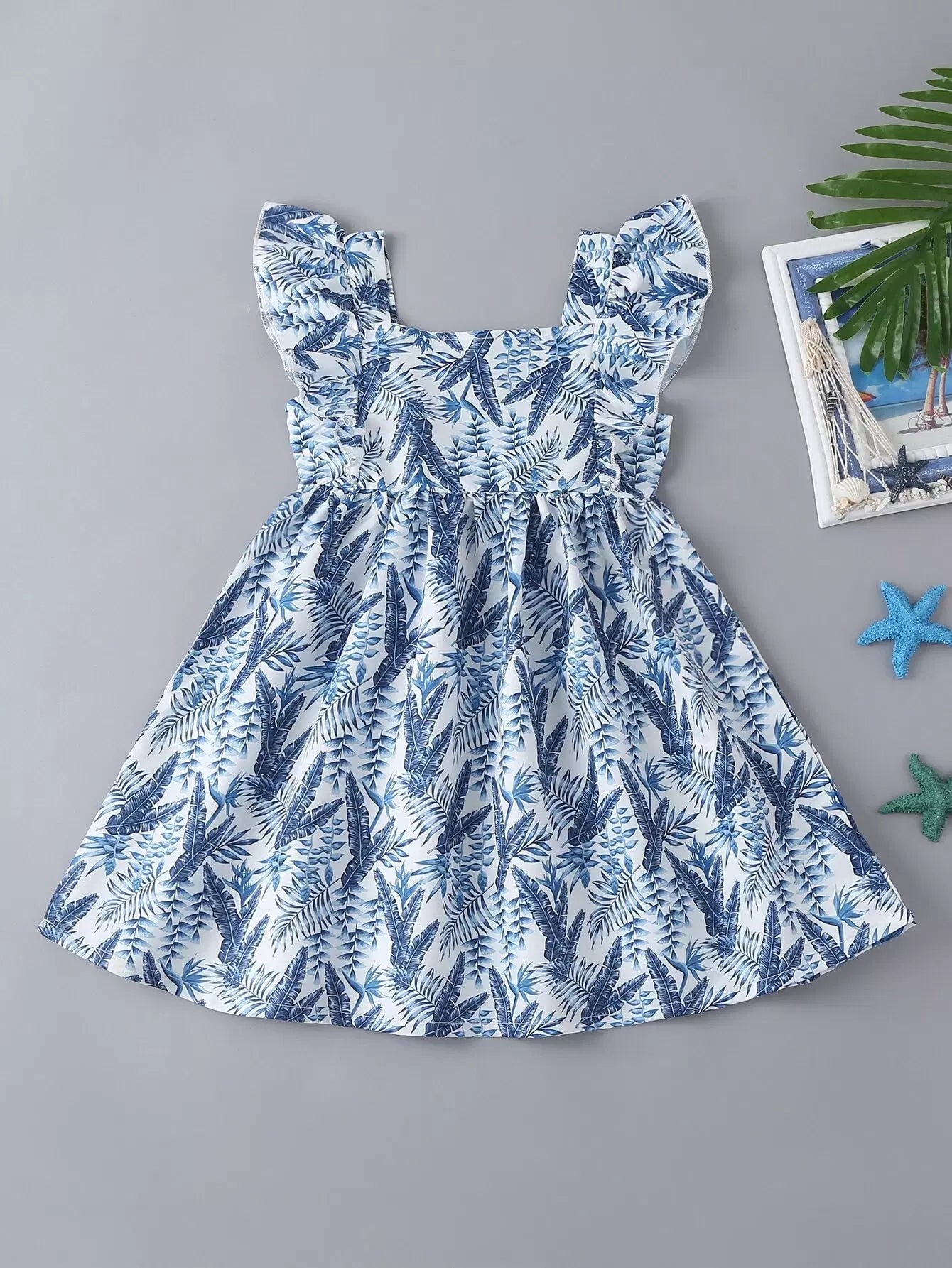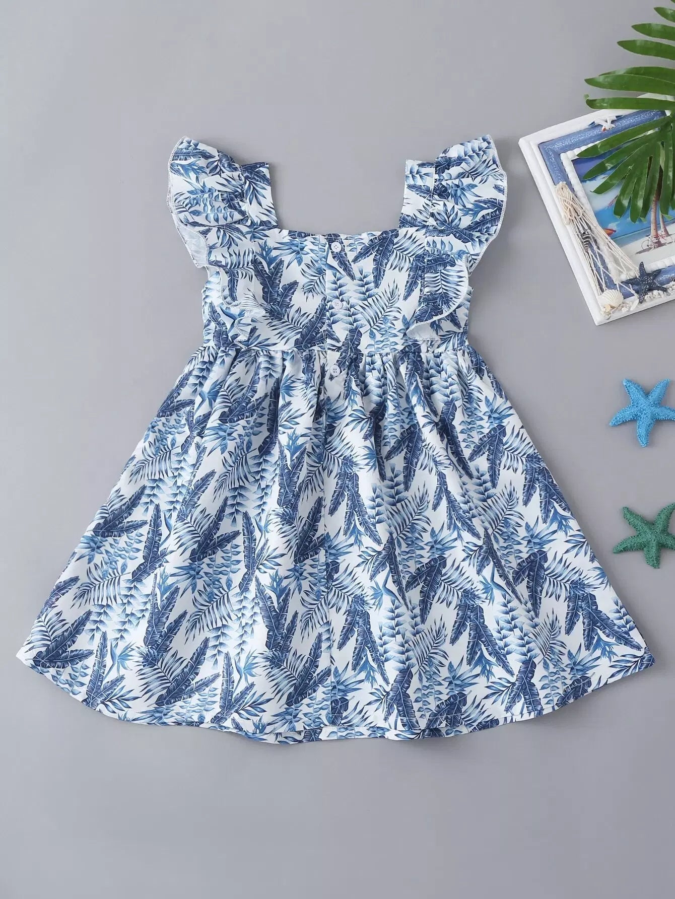 Toddler Girls Allover Leaf Print Ruffle Trim Smock Dress