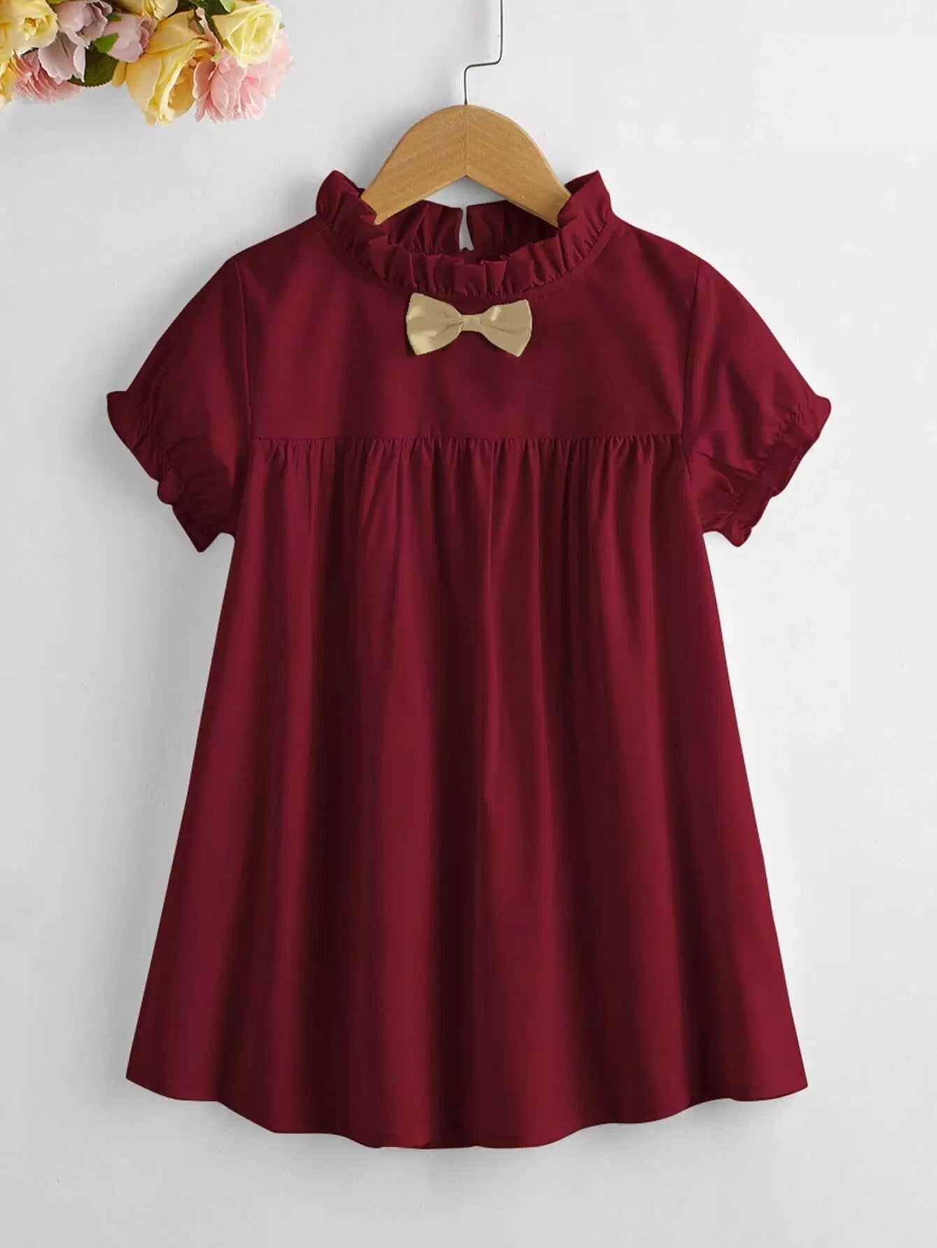 Toddler Girls Bow Front Frill Trim Dress