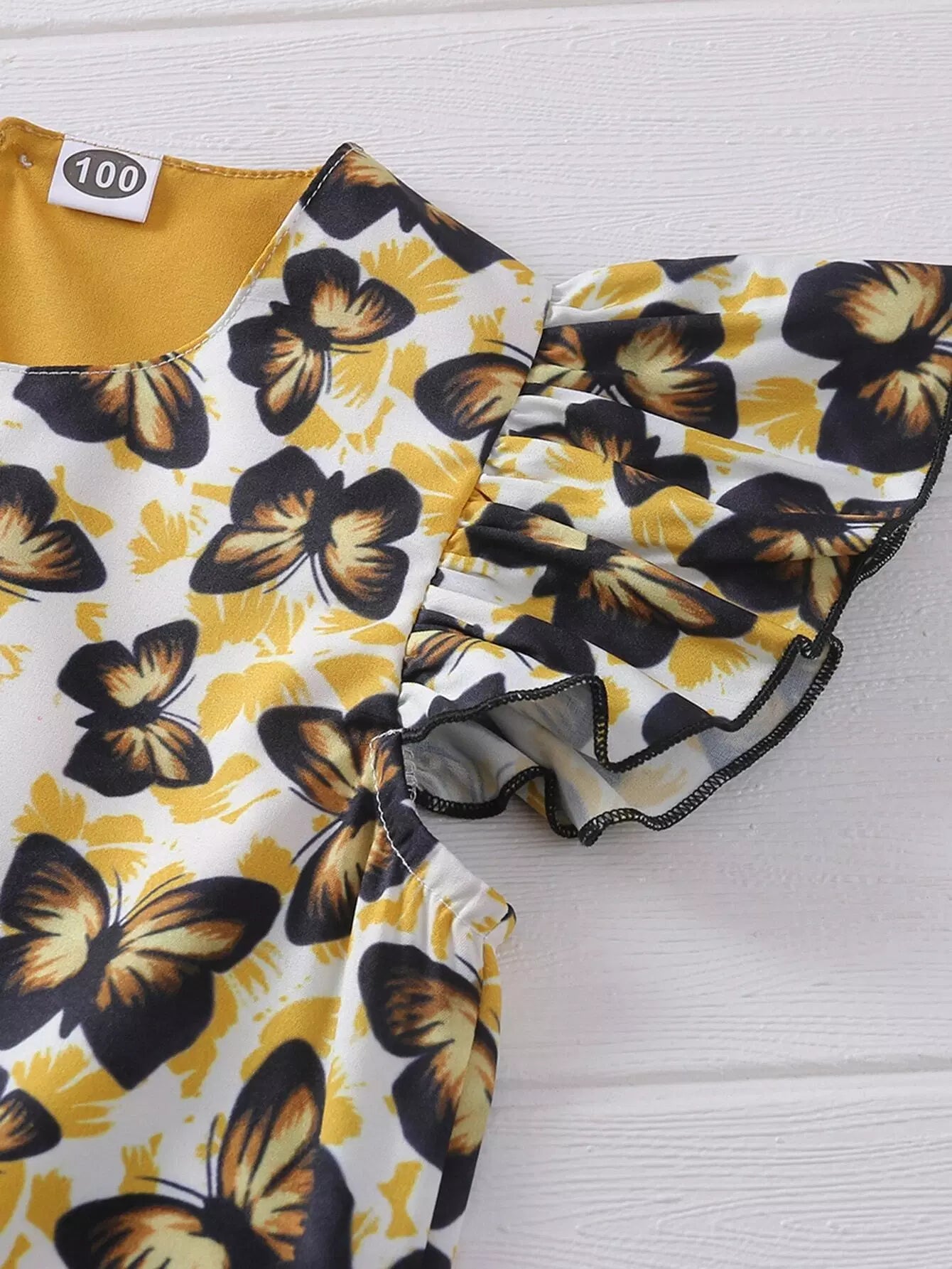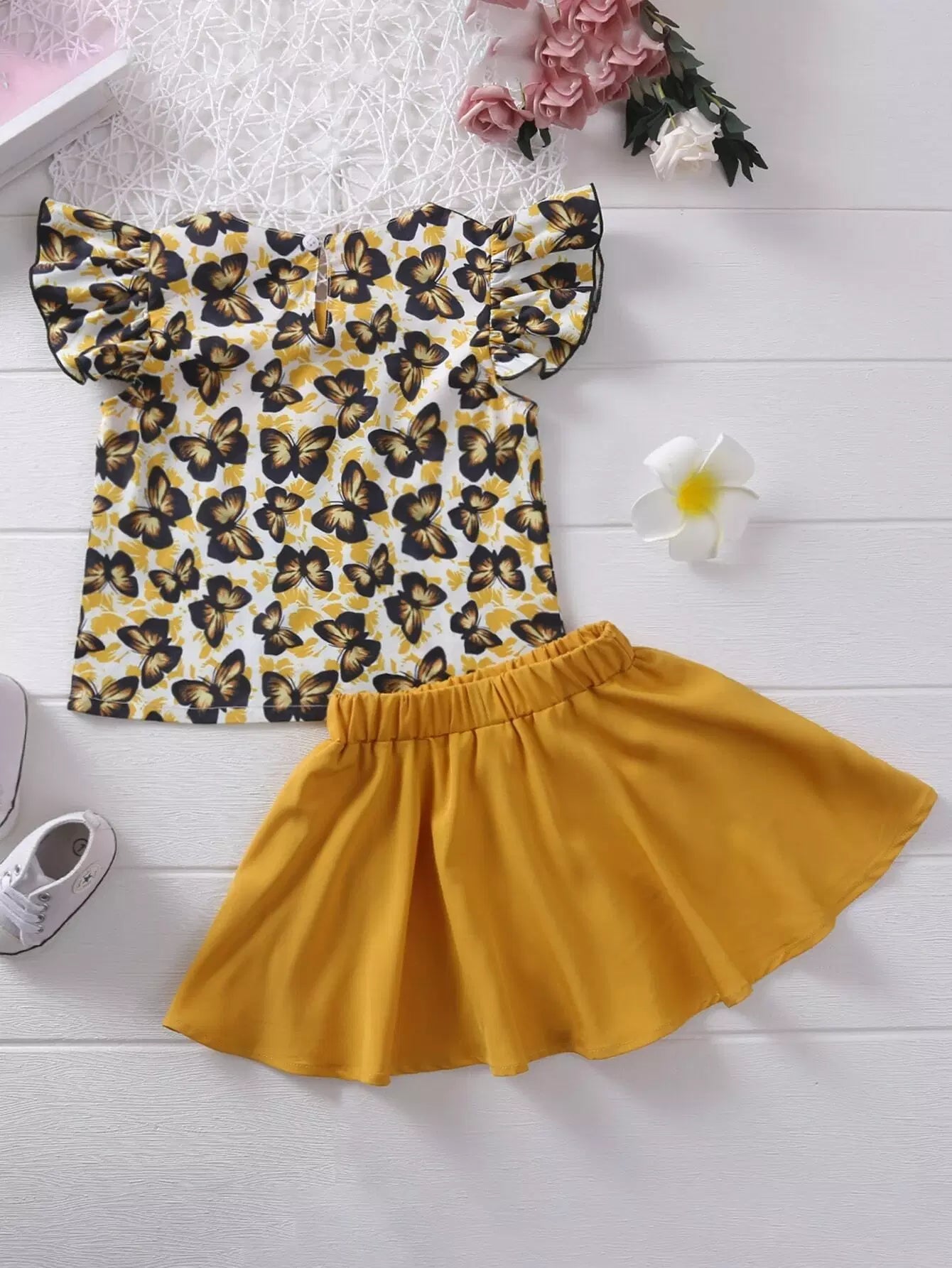 Toddler Girls Butterfly Print Top & Heart Patched Skirt