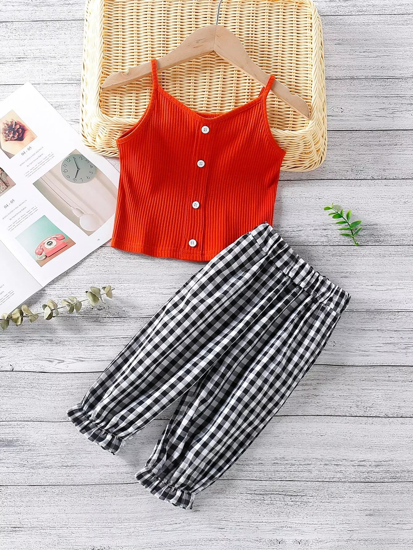 Kids - Toddler Girls Button Front Cami Top & Gingham Pants