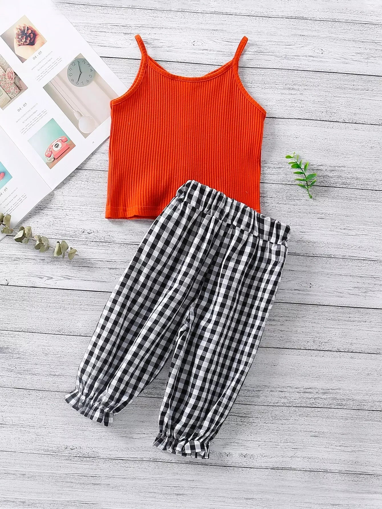 Toddler Girls Button Front Cami Top & Gingham Pants