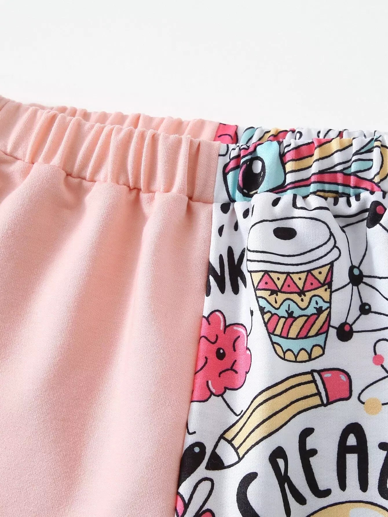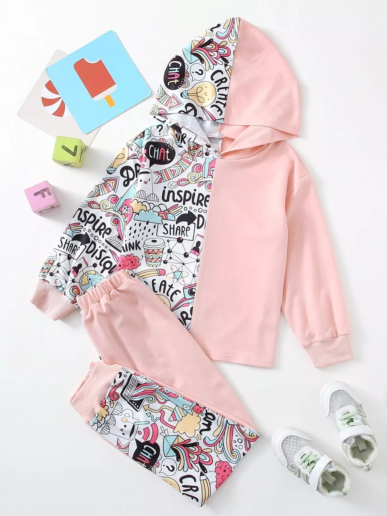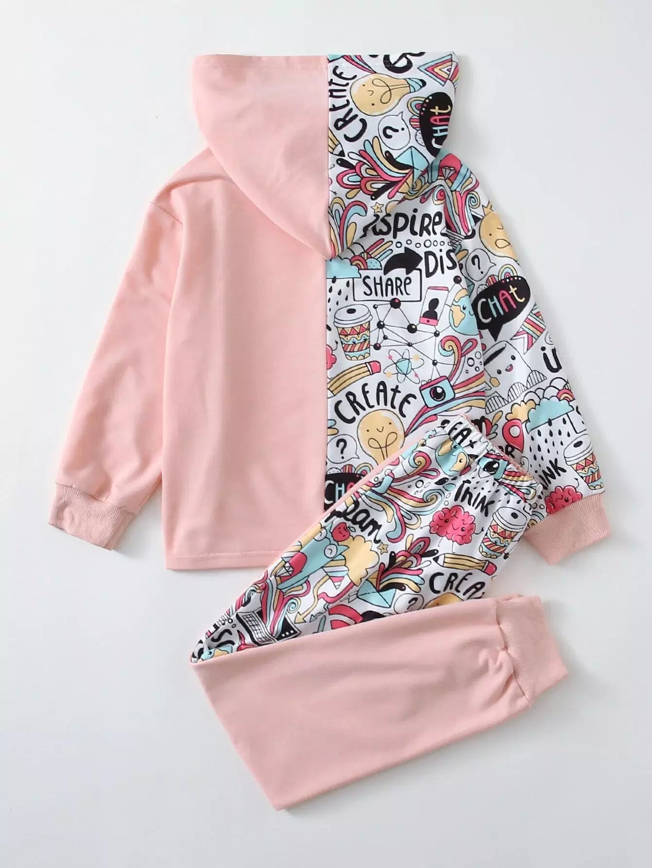 Toddler Girls Cartoon Graphic Spliced Hoodie With Joggers