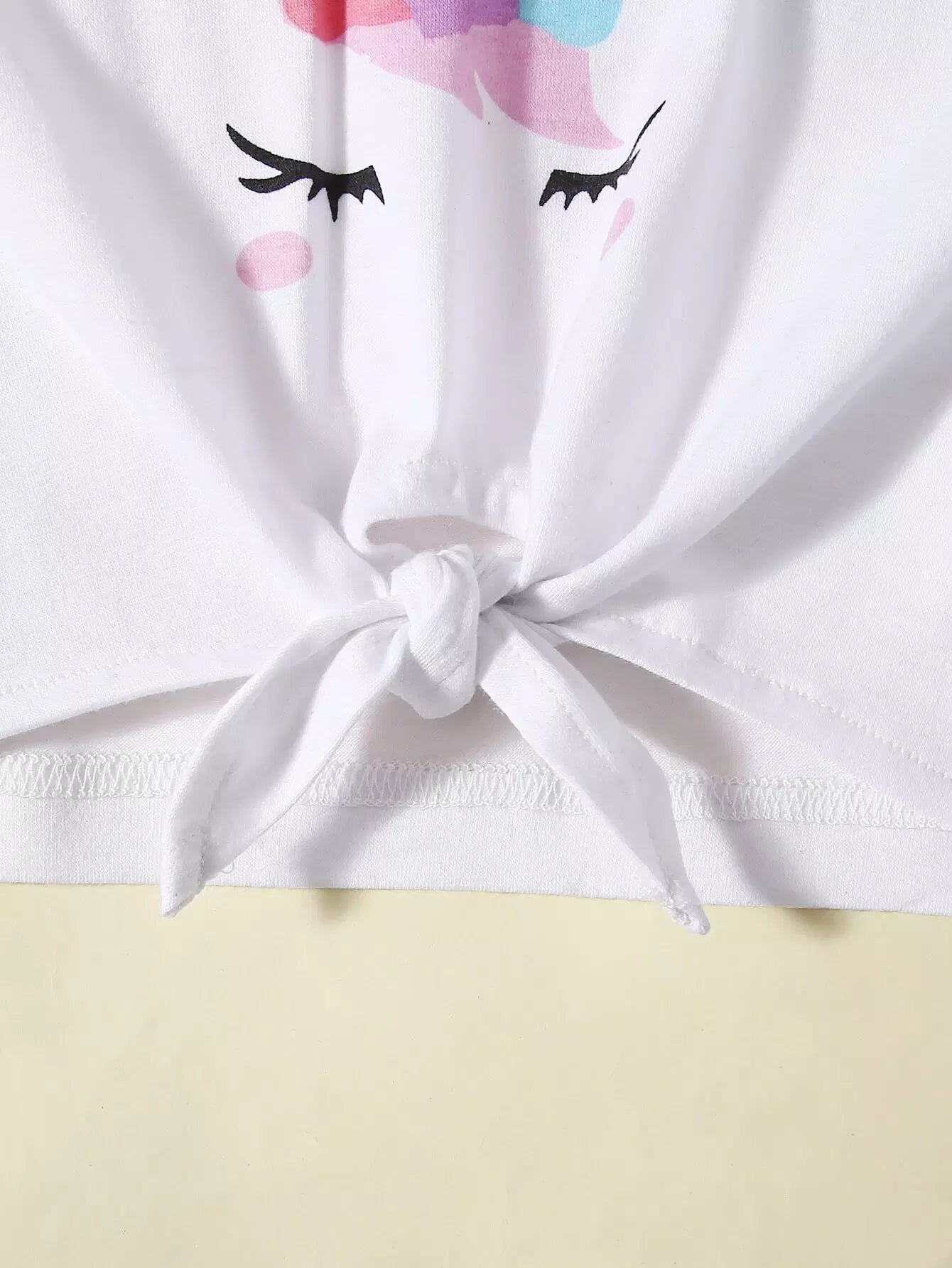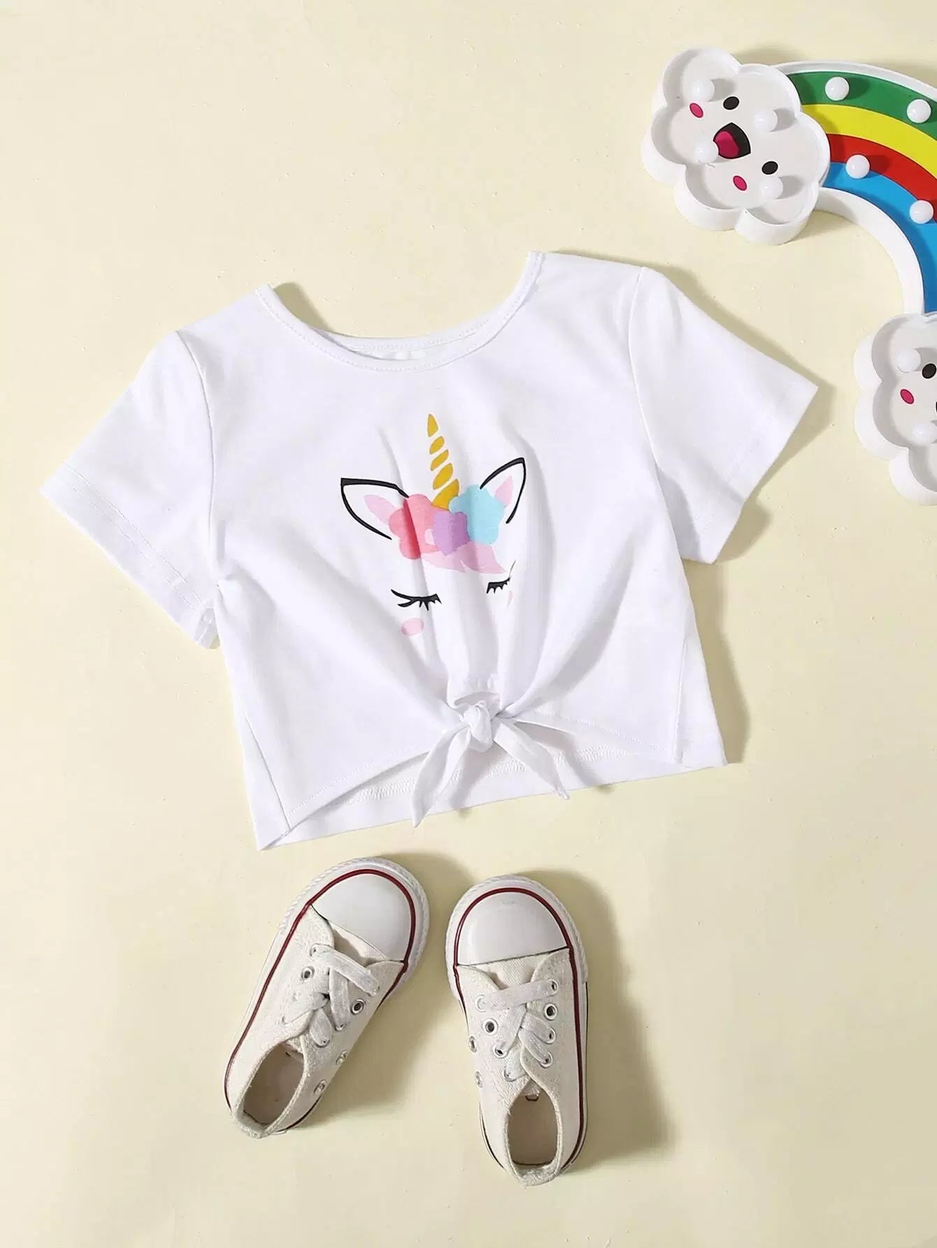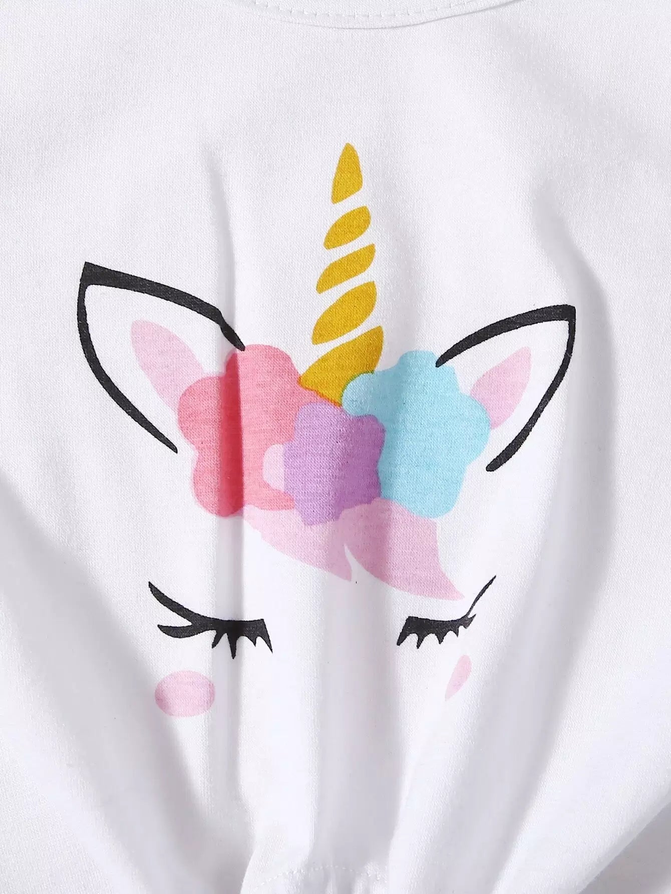 Toddler Girls Cartoon Unicorn Knot Hem Tee