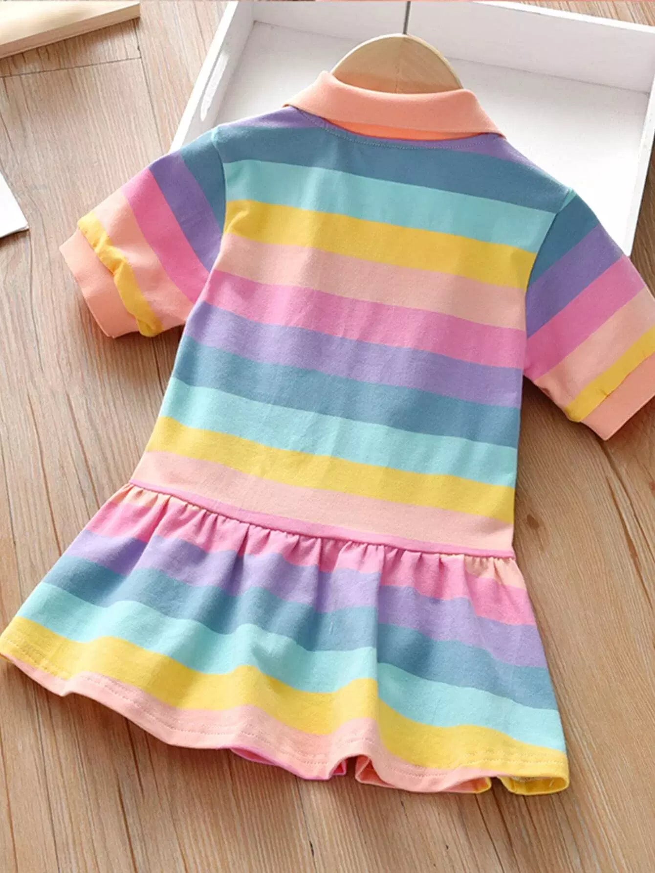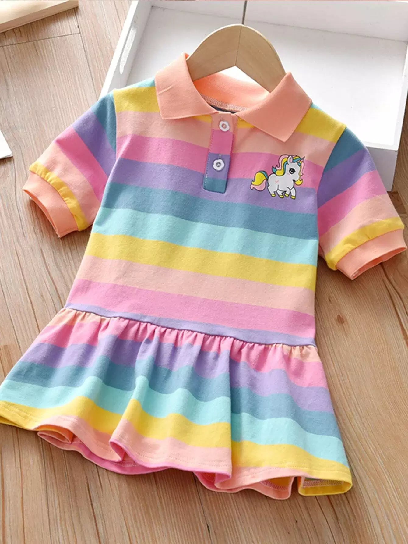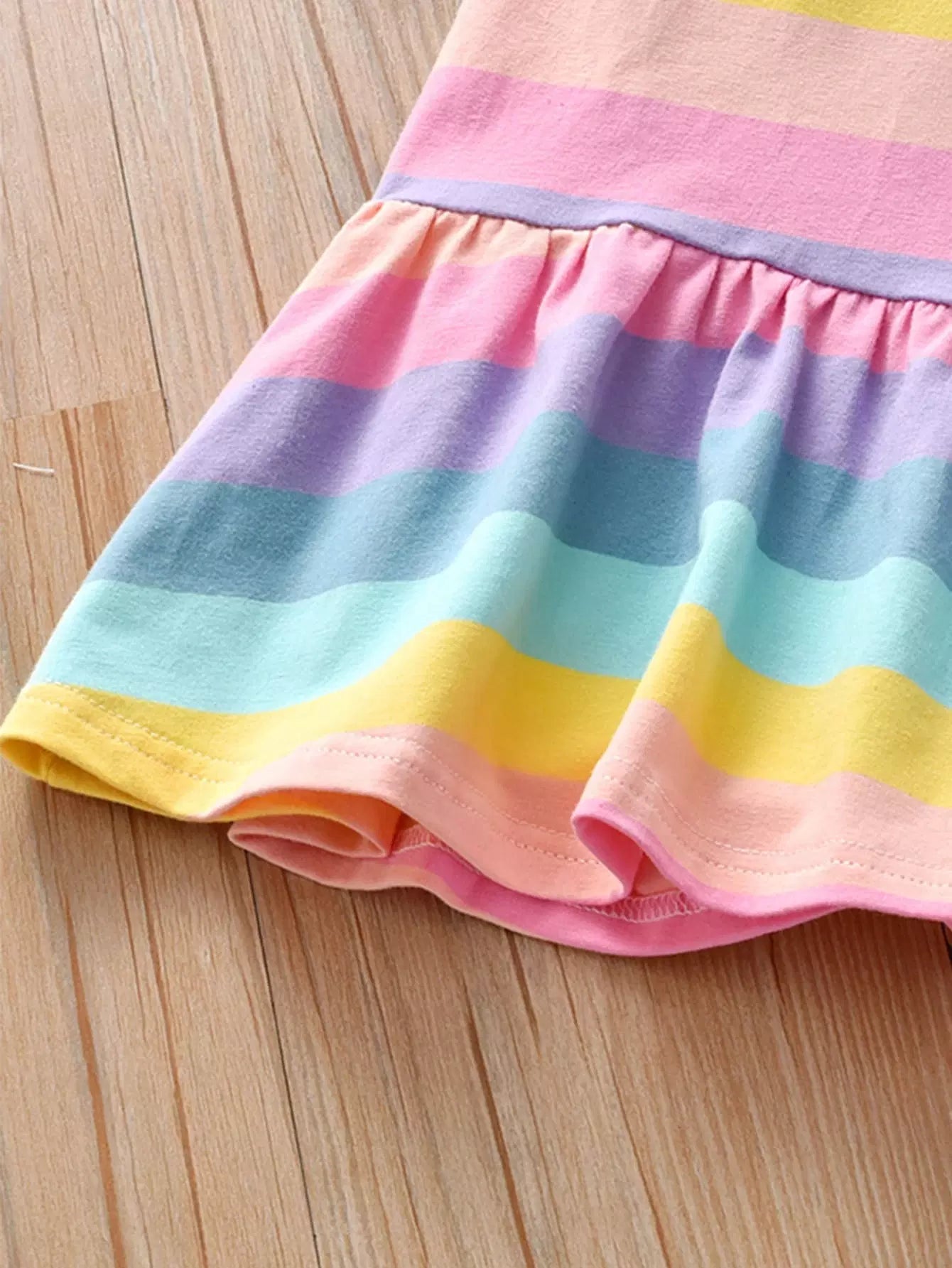 Toddler Girls Cartoon Unicorn Print Rainbow Striped Smock Dress