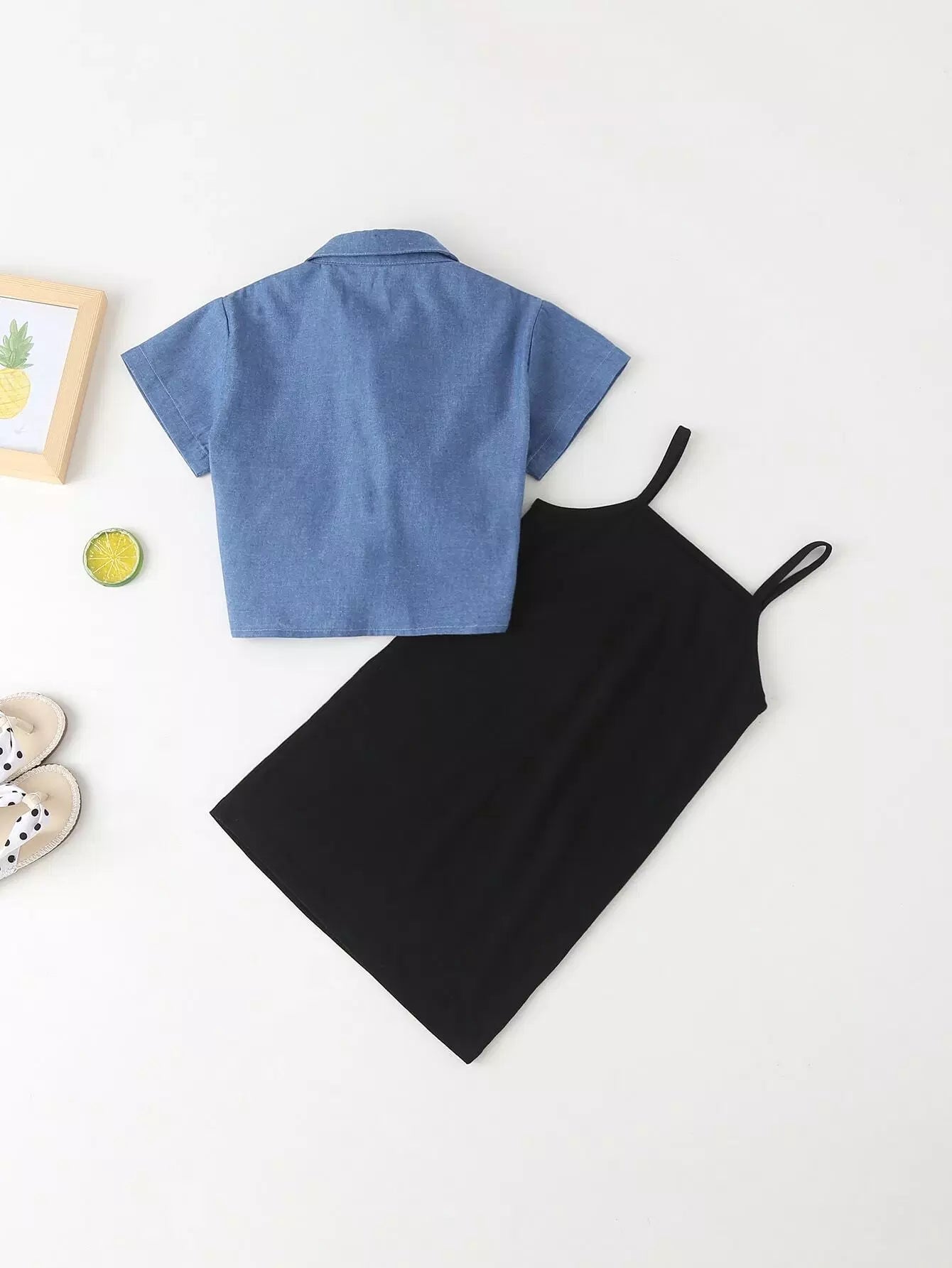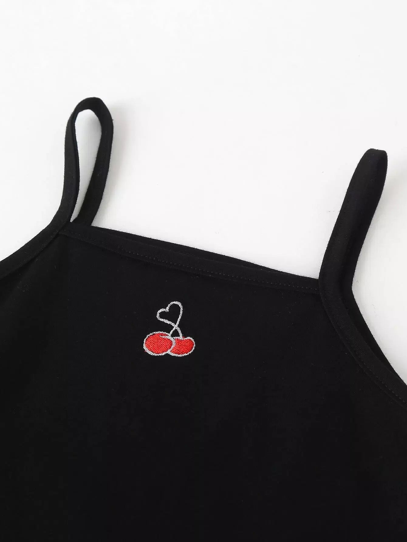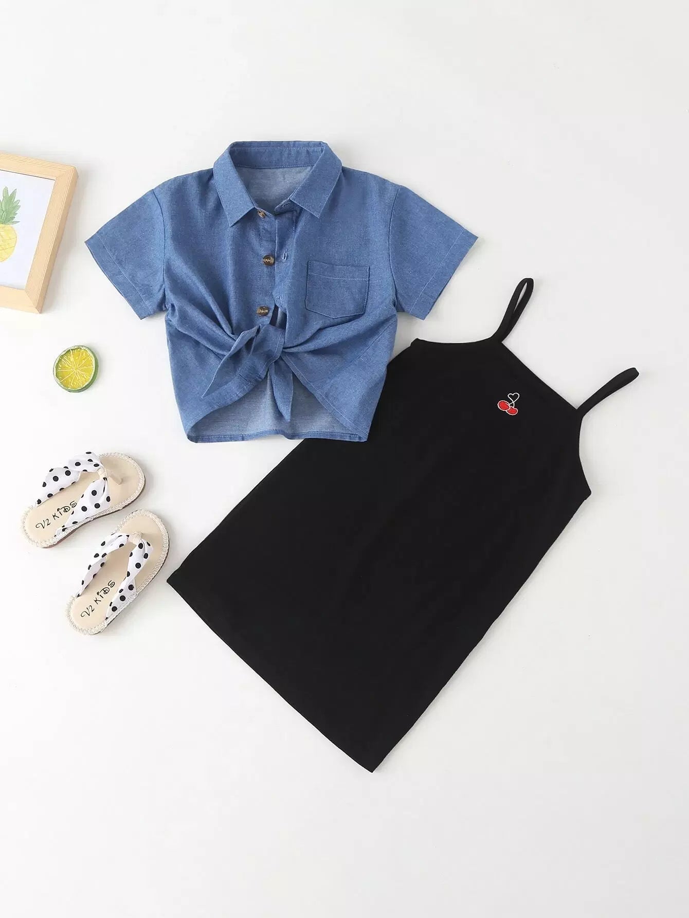 Toddler Girls Cherry Embroidery Cami Dress With Denim Blouse