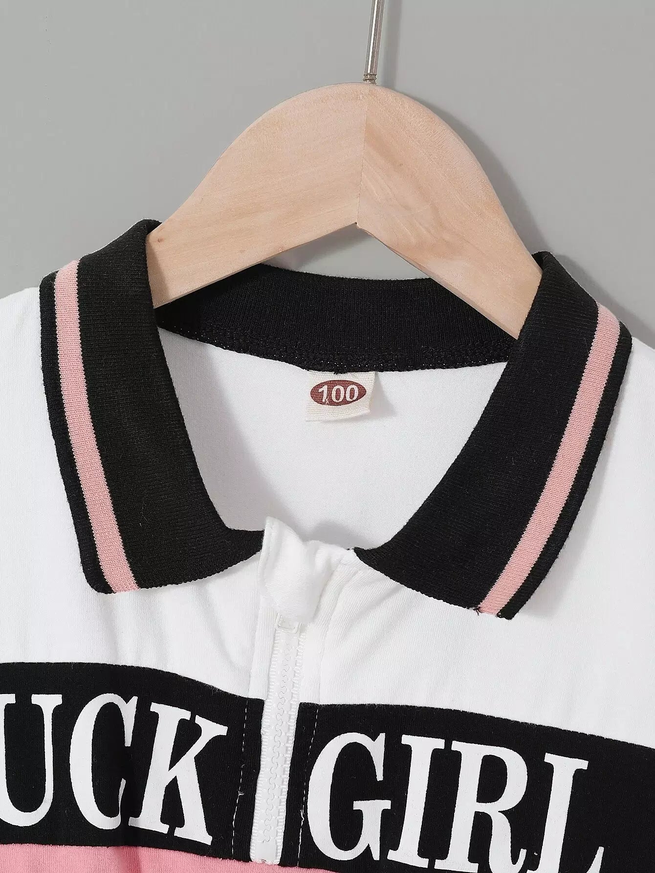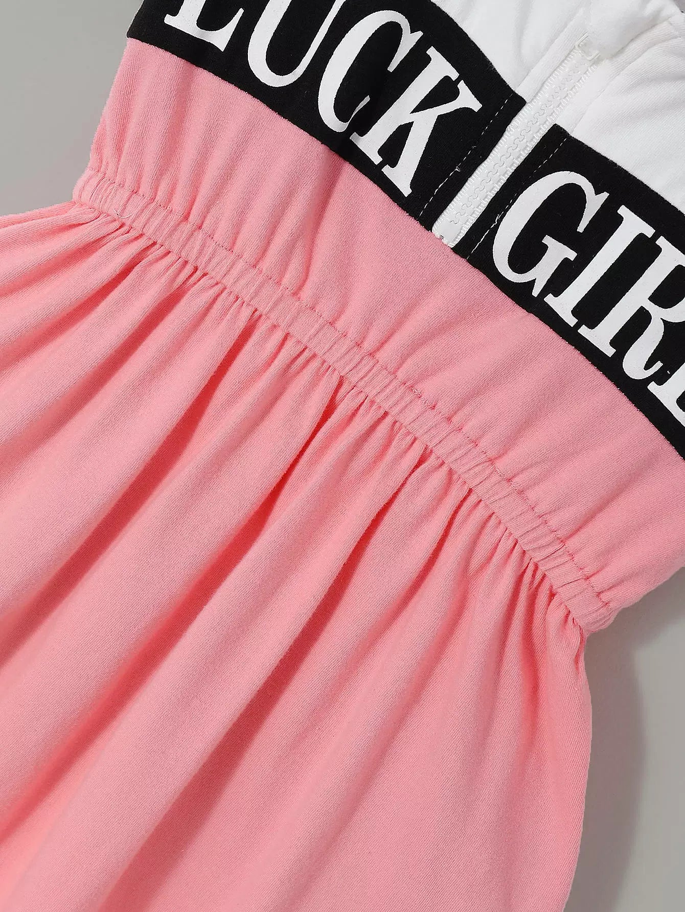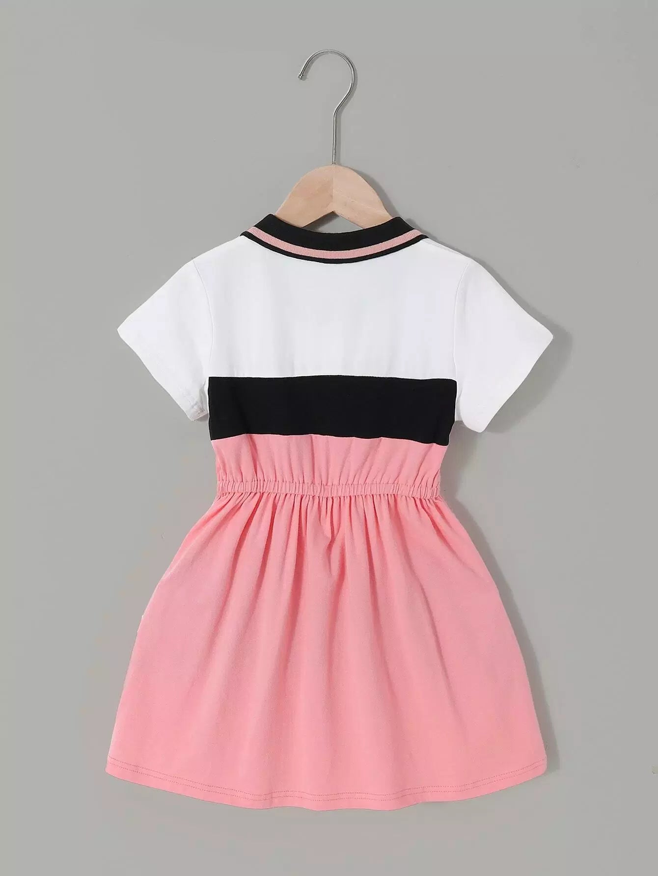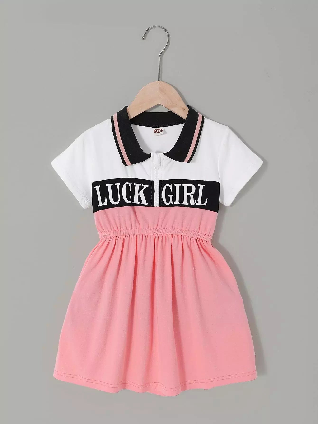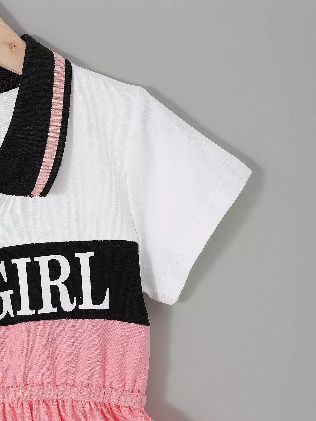Kids - Toddler Girls Contrast Collar Letter Graphic Spliced Dress