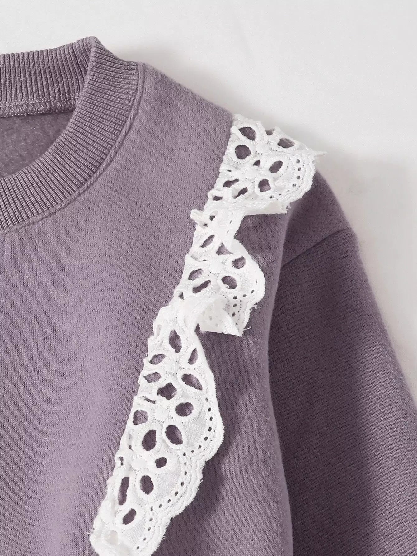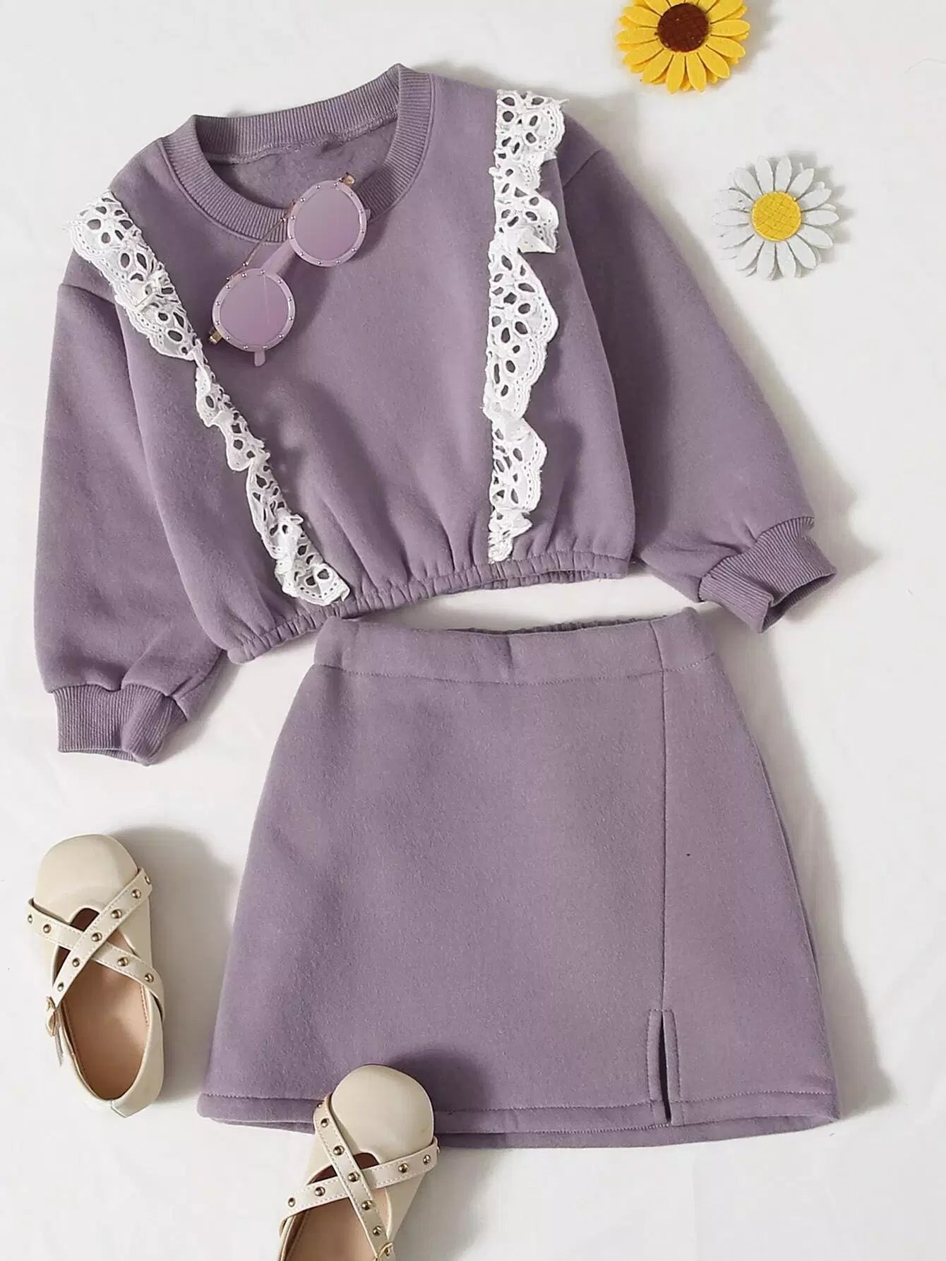 Toddler Girls Contrast Eyelet Embroidered Sweatshirt & Split Skirt