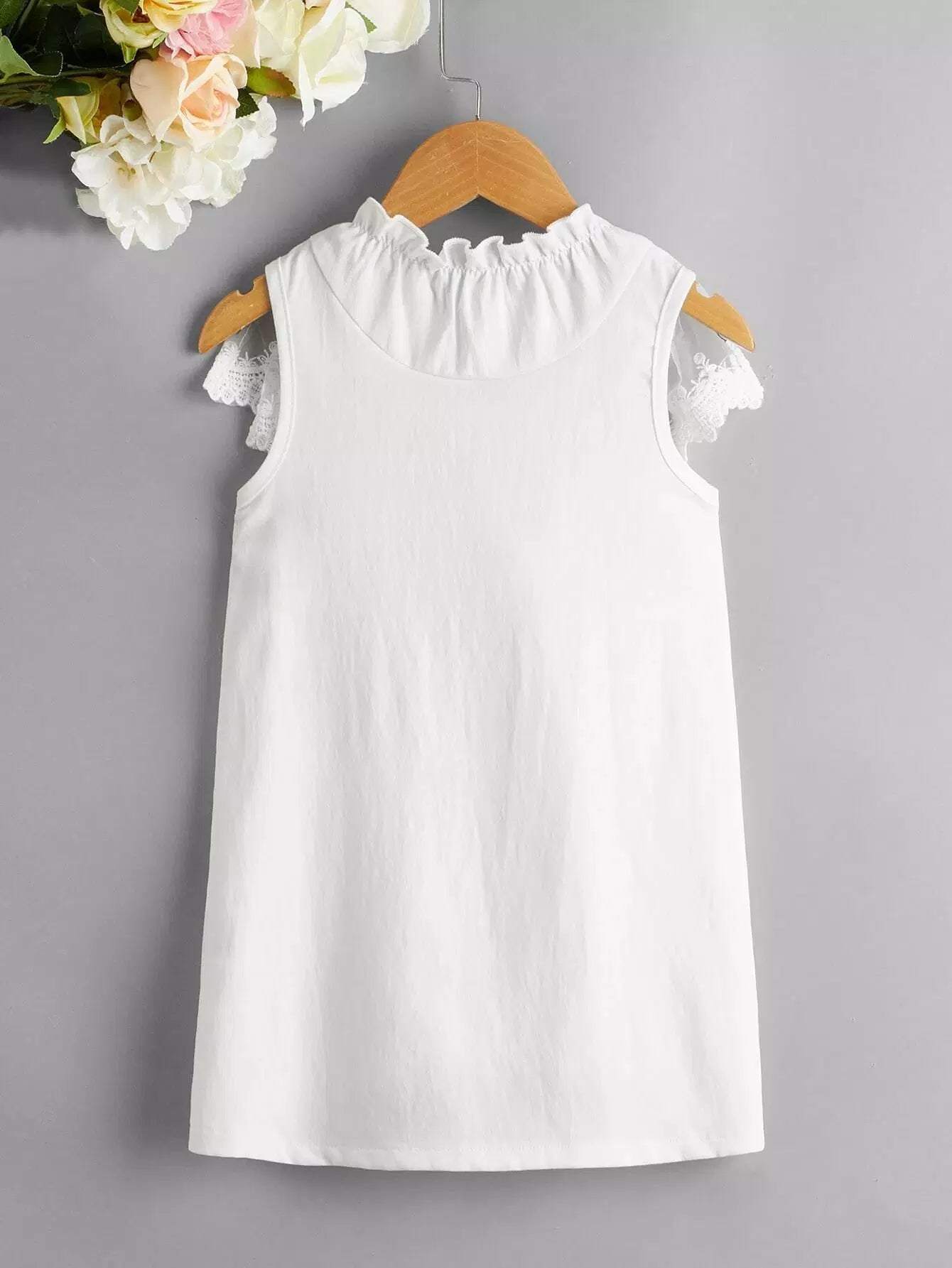 Toddler Girls Contrast Lace Frill Neck Dress